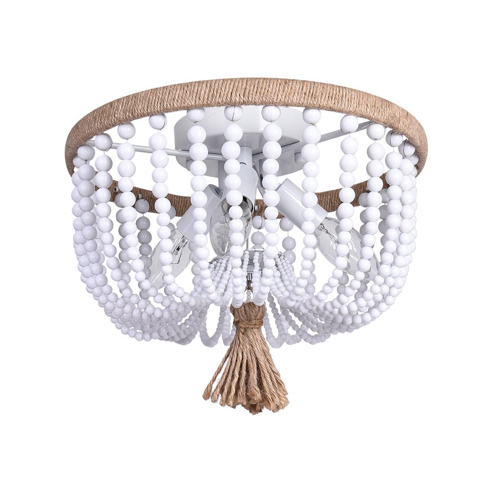 Kolme valoa • Helmimuotoilu • Valkoinen/kermanvärinen/ruskea/sininen/vaaleanpunainen helmet • Hamppuköysi • E12/E14-pohjaiset pistorasiat • Kiinteät • UL-listattu/CE-listattu
