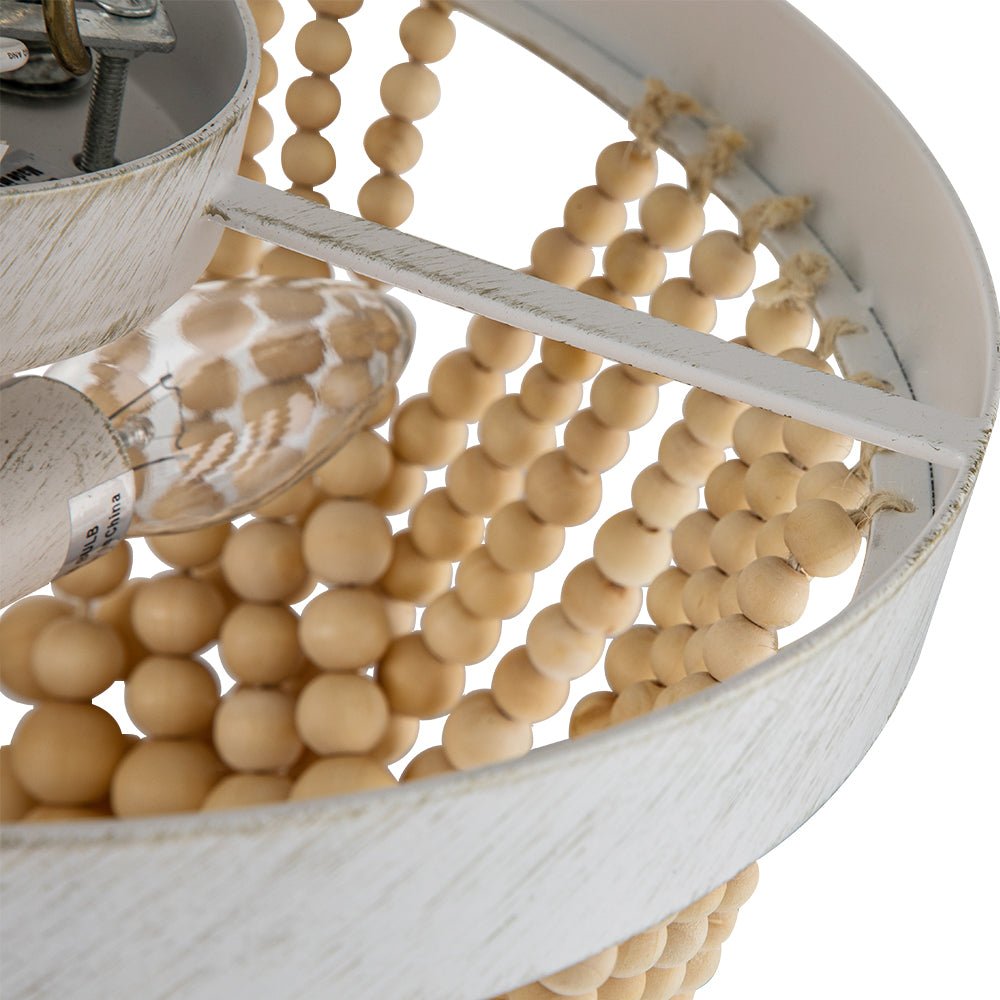 Kolme valoa • Coastal Boho -tyyli • Valkoinen viimeistely • Luonnonpuuhelmet • E12 kynttelikköpolttimot (ei sisälly) • Kiinteä • UL-listattu