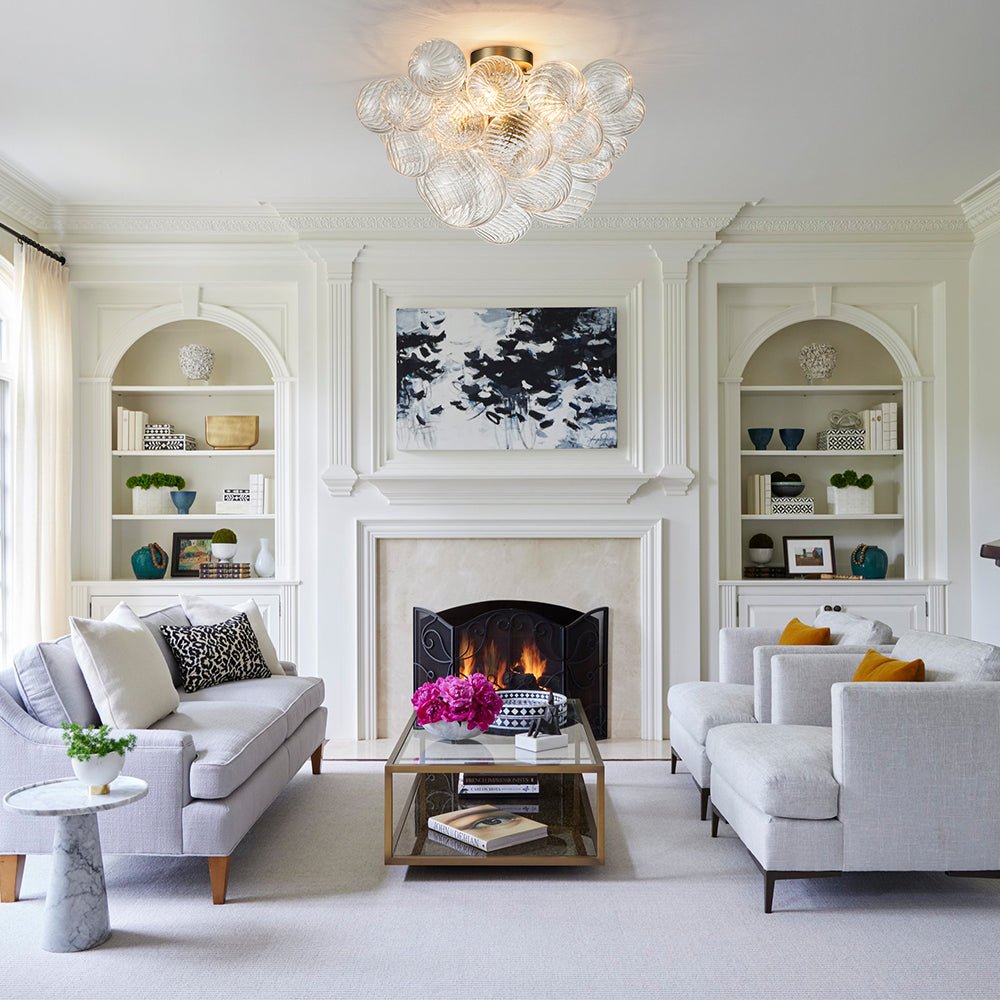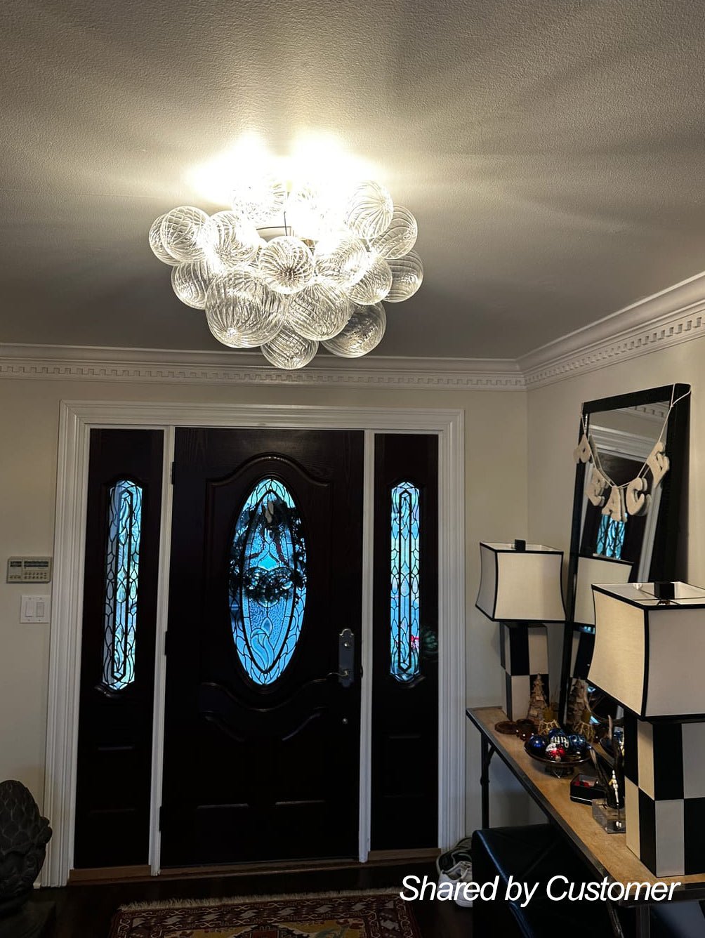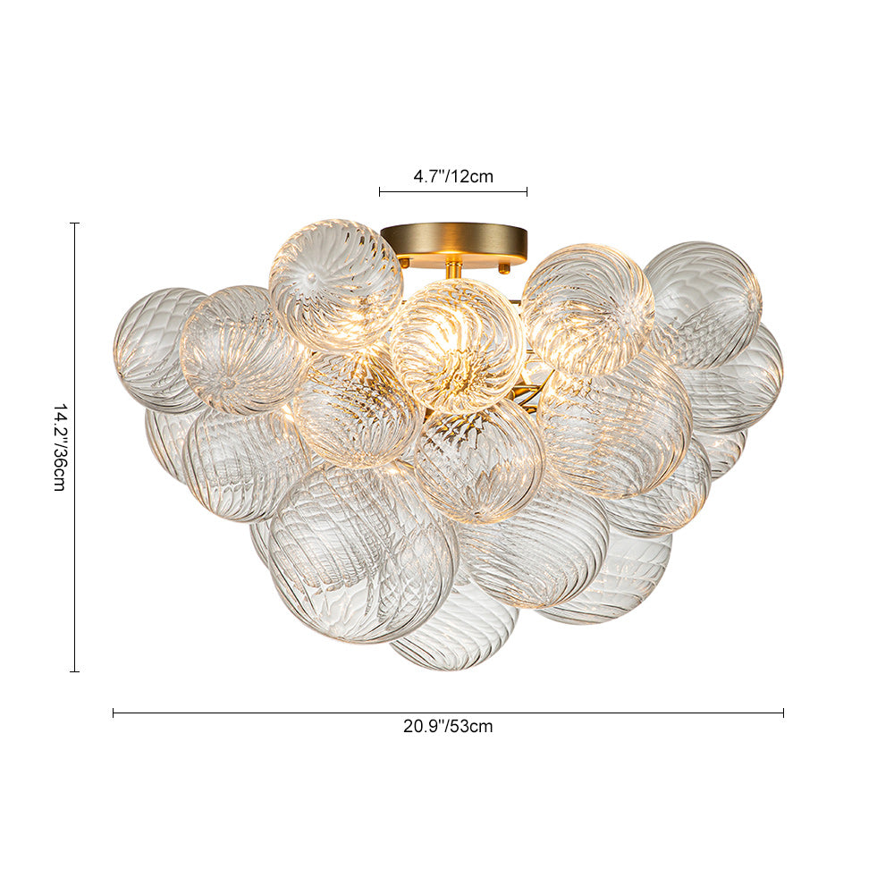 Fantastinen ja hieno, ihastuttavat uurretut lasipallot kerääntyvät rakentamaan tätä kuplakruunua. Kun kytket tämän klusteripallon kuplakruunun päälle, kolme E12 kynttelikköpolttimoa (ei sisälly toimitukseen) tarjoavat kodikkaan hehkun, kuten samppanja, virtaamalla uurretulla lasilla ja jakavat upean tunnelman huoneeseesi. Tämä uurrettu lasikuplakruunu muodostaa hienostuneen tulpan olohuoneeseen, ruokailuhuoneeseen, eteiseen, makuuhuoneeseen, eteiseen tai eteiseen.