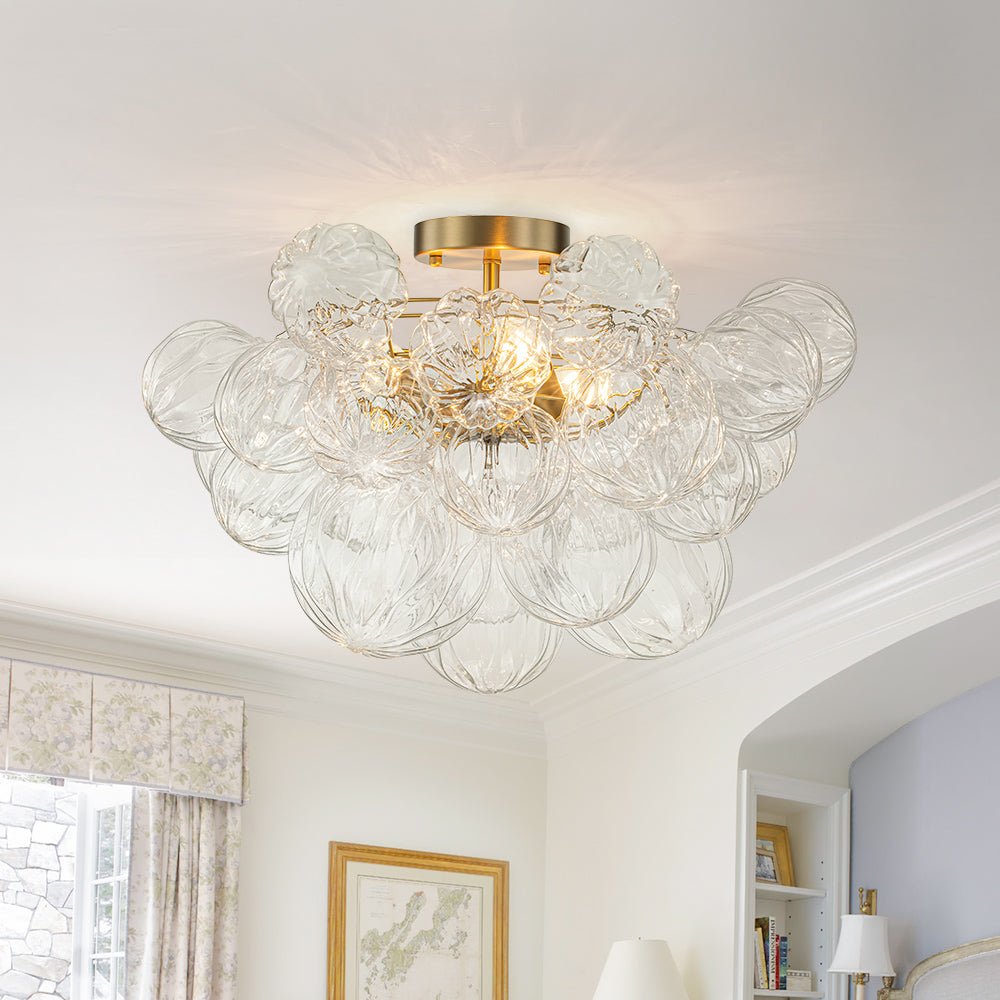 Kolme valoa • Kirkas rakennelasi • Bubble Style • Messinkiviimeistely • E12 kynttelikköpolttimot (ei sisälly) • Kiinteä • UL-listattu
