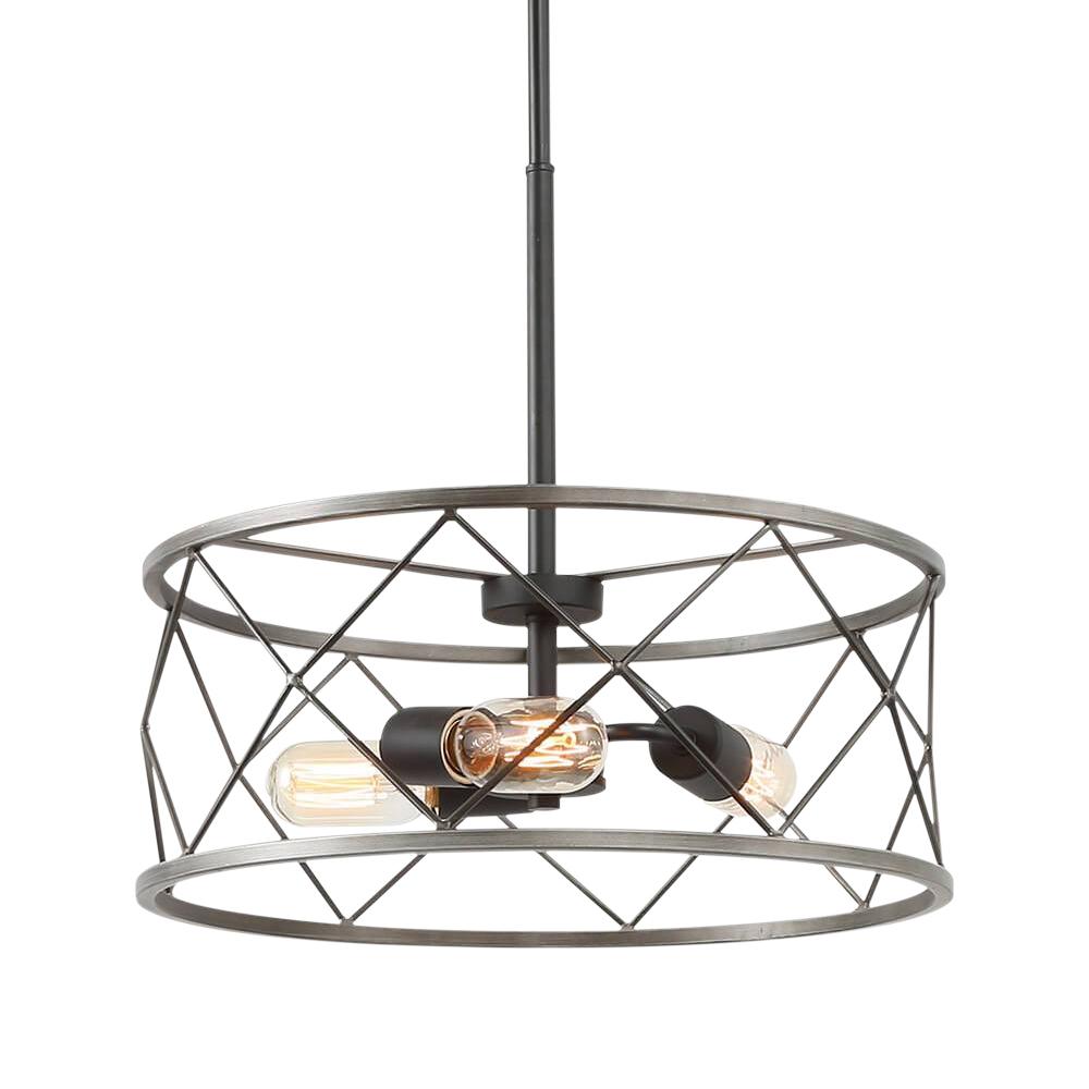 Erottuva sekoitus muotoa ja toimivuutta, maalaistalo-rumpukruunumme tarjoaa leikkisän ja maalaismaisen viehätyksen. Tässä maalaistalossa riippuvassa kattokruunussa on pyöreä katos ja kapea alasauva, ja siinä on neliömäinen rumpukehys. Antiikkihopea ja kiillotettu musta viimeistely viimeistelevät esityksen vintage-aksentilla. Säädettävä pylväs takaa, että tämä maalaistaloon riippuva kattokruunu voi toimia hyvin sekä korkeassa että matalassa katossa. Tämä koteloitu kattokruunu, joka ympäröi kolme 60 W:n vakiolamppua (ei sisälly), kukin jopa 40 W, valaisee tilan vaivattomasti tässä avoimessa kehyksessä. Lisäksi tämä maalaistalo rumpu kattokruunu on saatavana himmentimen säätämiseen (ei sisälly), jotta voit nauttia oikeasta valaistuksesta tarpeen mukaan. Tämä 40 cm leveä x 16 cm korkea 3-kevyinen häkkikattokruunu näyttää hyvältä riippumatta siitä, ripustetaanko se pohjaan vai pareittain. Ripusta tämä häkissä oleva kattokruunu keittiösaarekkeen tai ruokapöytäsi yläpuolelle saadaksesi välitöntä nykyaikaista maalaismaista charmia.Detail