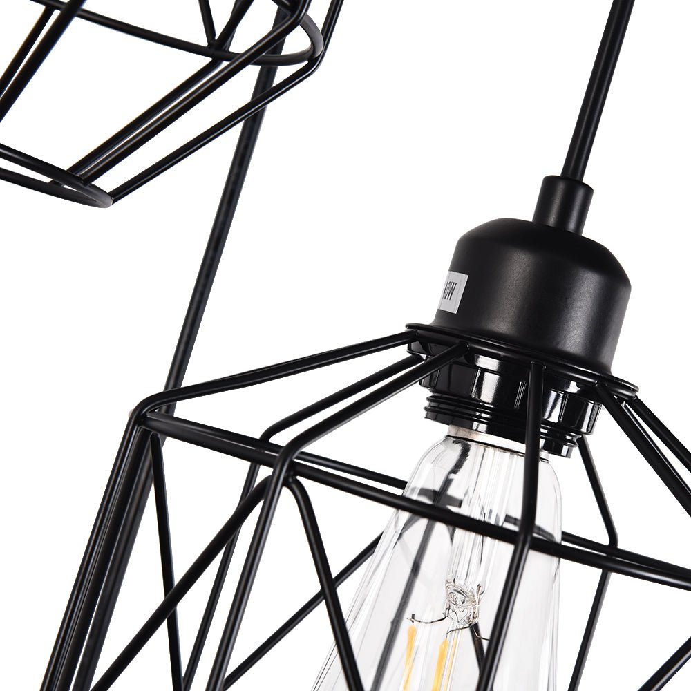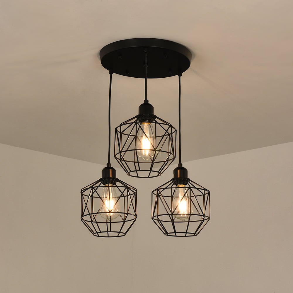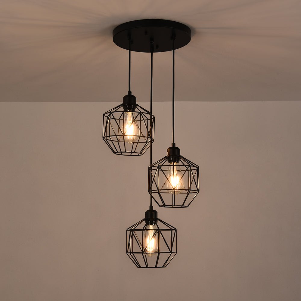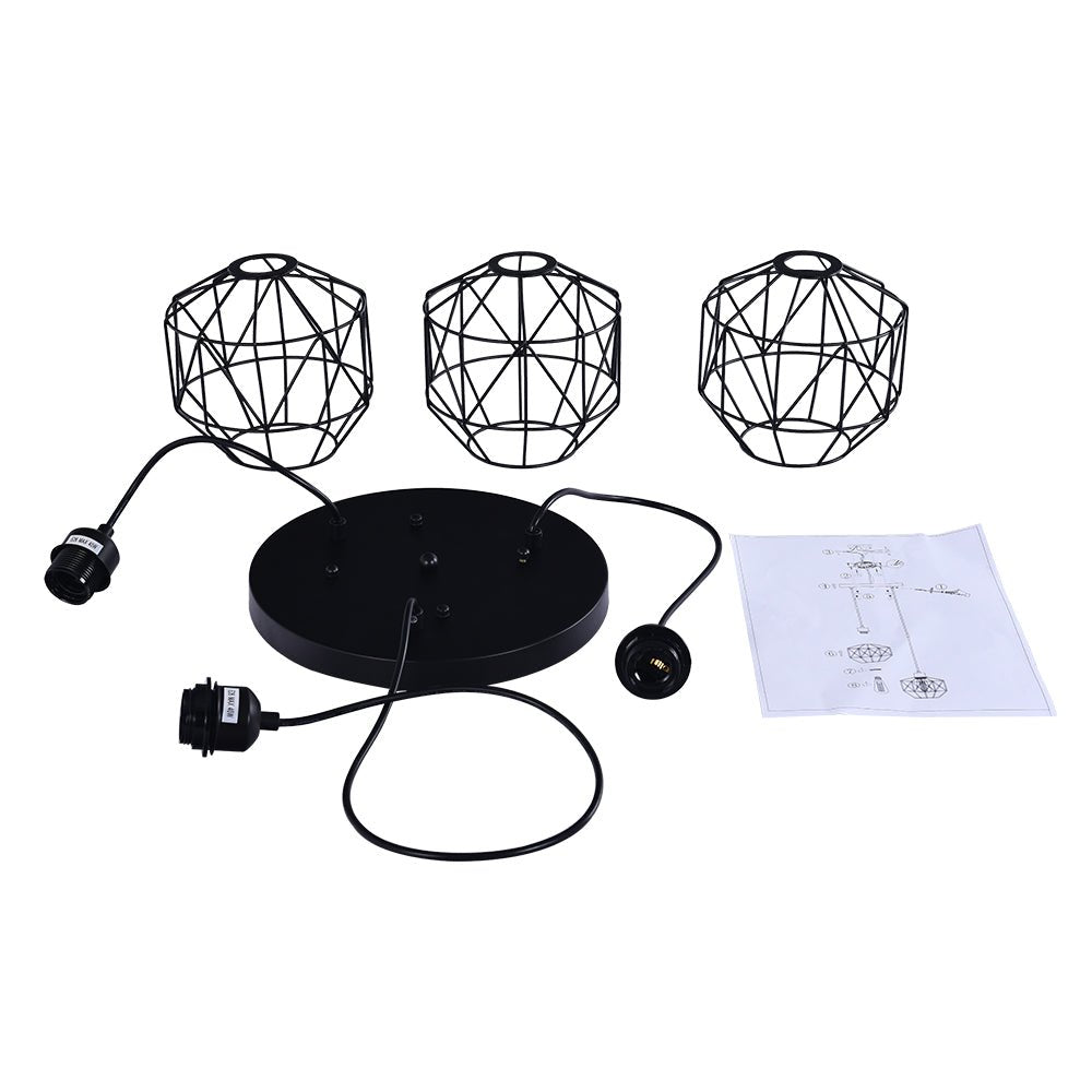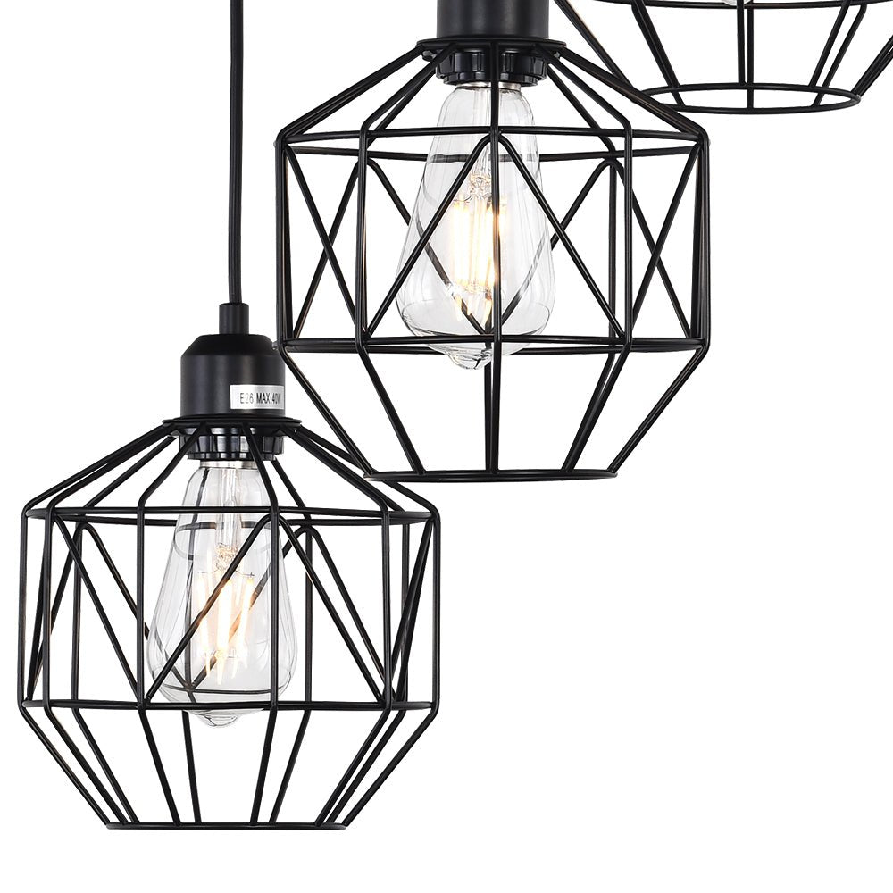Kolme valoa • Geometriset metallihäkit • Klusteririipukset • Mattamusta viimeistely • E26 Keskikantaiset polttimot (ei sisälly) • Kiinteä • UL-listattu