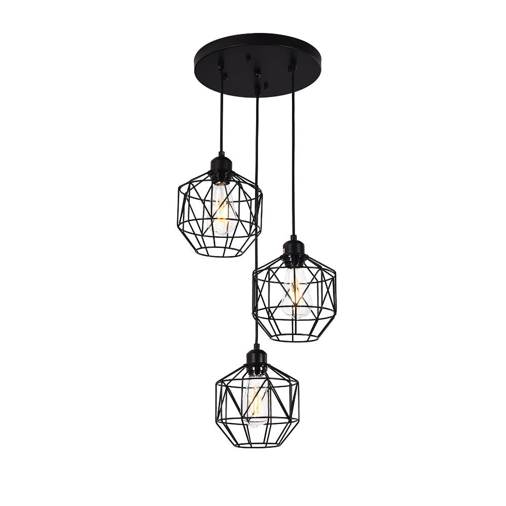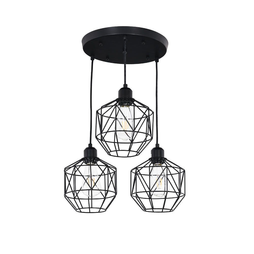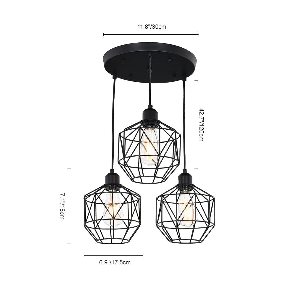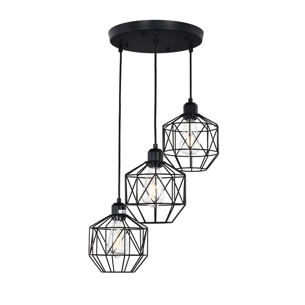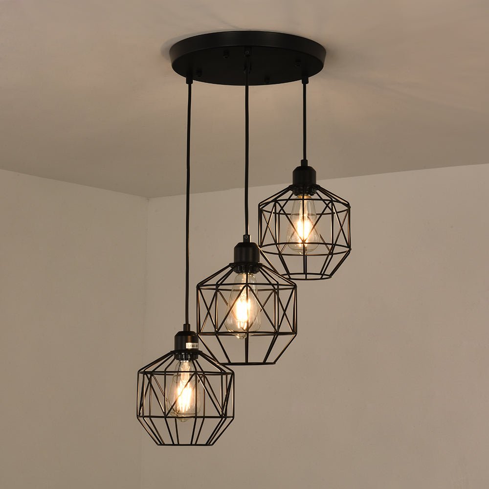 Kolme valoa • Geometriset metallihäkit • Klusteririipukset • Mattamusta viimeistely • E26 Keskikantaiset polttimot (ei sisälly) • Kiinteä • UL-listattu