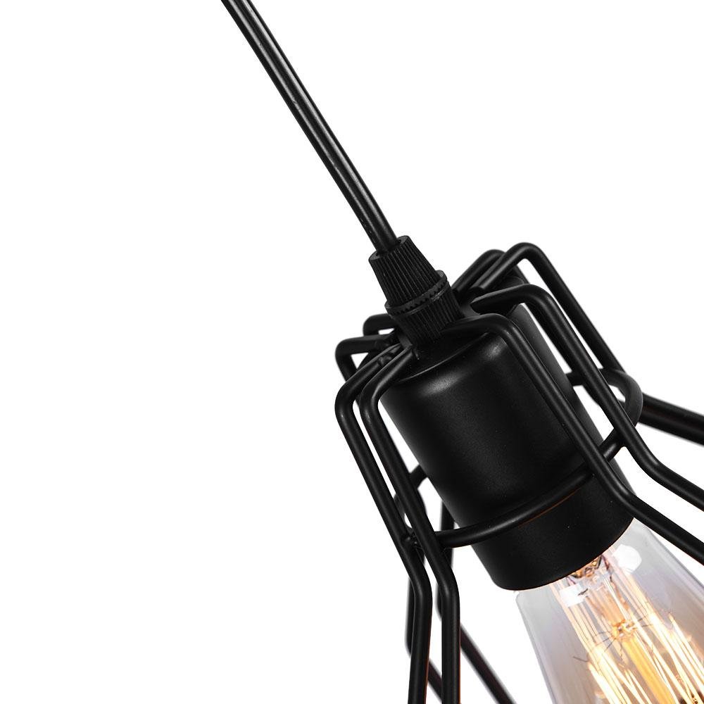 Tässä geometrisessa ja veistoksellisessa 3-valaisimessa on avoin häkki, joka on täynnä sekä toiminnallisia että koristeellisia houkuttelevia ominaisuuksia. Tässä mustasta metallista valmistetussa klusterivalaisimessa on huoneessa kelluva geometrinen sävykolmio, jotka lepäävät ohuiden kaapelien päässä. Kolmelle E26/E27-keskikantaiselle polttimolle (ei sisälly toimitukseen) mahtuu tämä geometrinen klusteririippuvalaisin, joka antaa valon, joka kulkee avoimien kehysten läpi. Säädettävien kaapelien ansiosta ripustuskorkeus mukautuu kattovalaisimen ympäristöön. Tämä 3-valaisimen geometrinen riippuvalaisin on ihanteellinen ripustettavaksi keittiösaarekkeen, ruokapöydän, olohuoneen, eteisen ja kodin baarin yläpuolelle.Detail