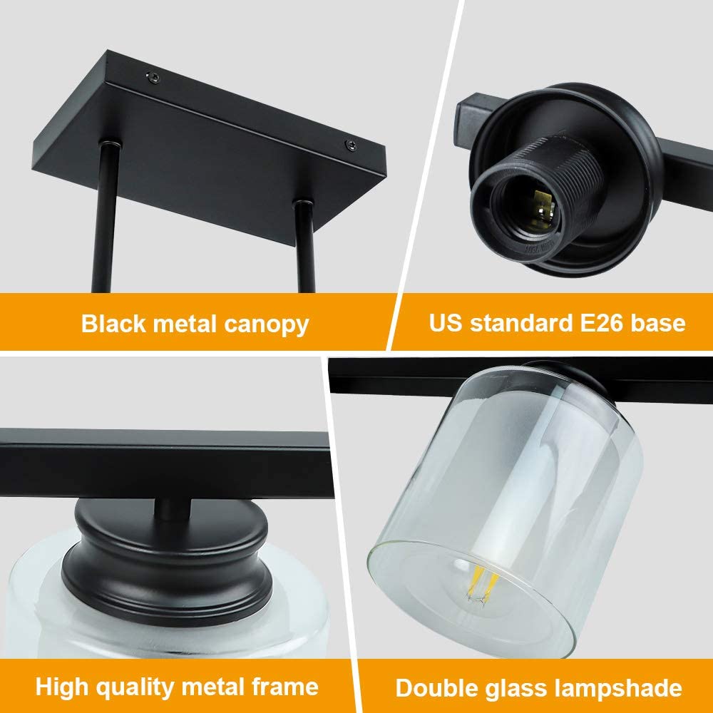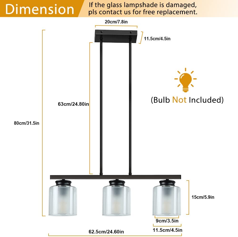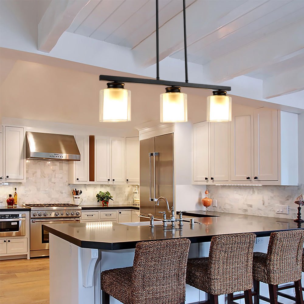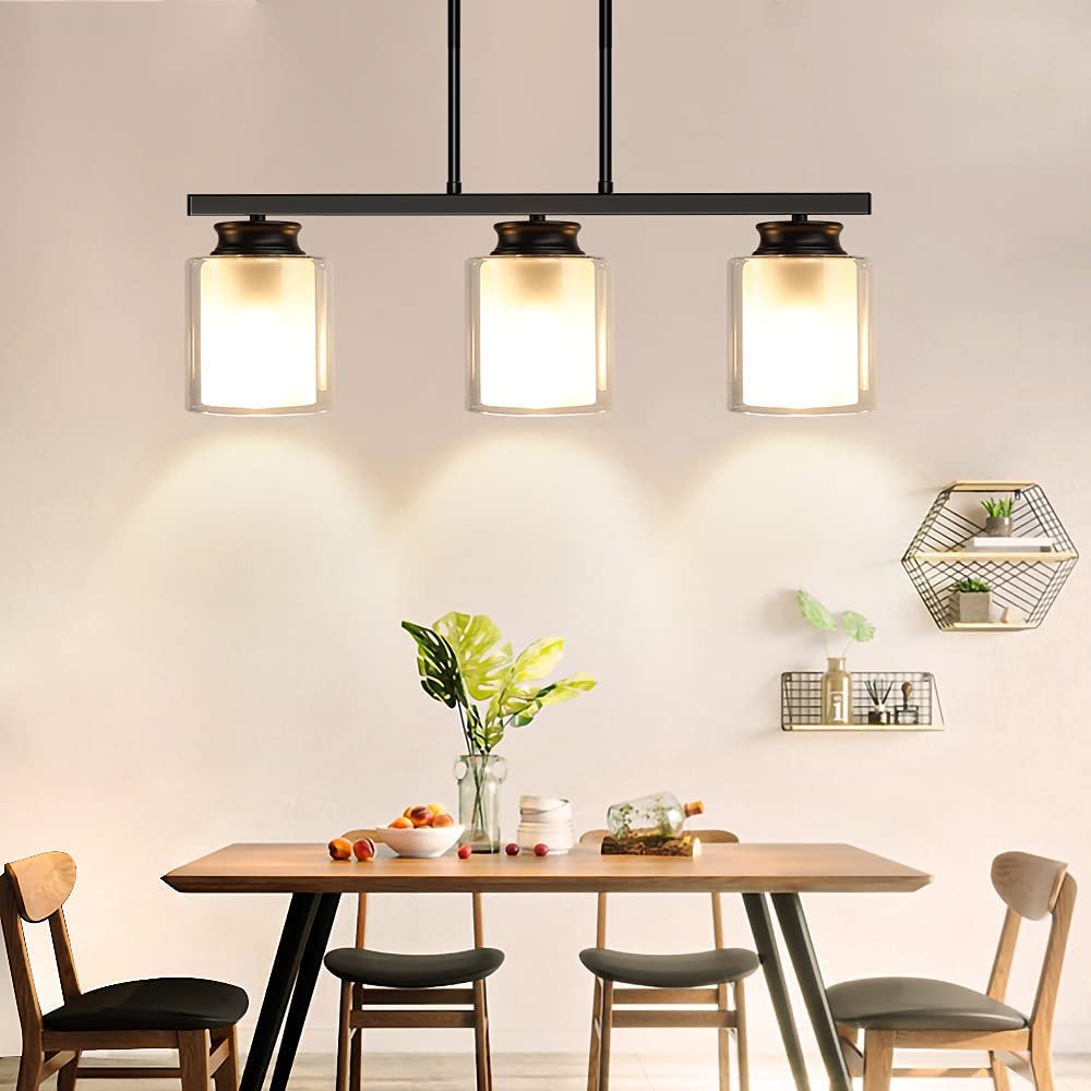DINGLILIGHTING Depuley 3-Light maalaistalo riippukeittiö Island Light, teollinen kattolamppu kaksinkertaisilla lasivarjostimilla, ruokasaliin, olohuoneeseen, kahvilaan, baariin
