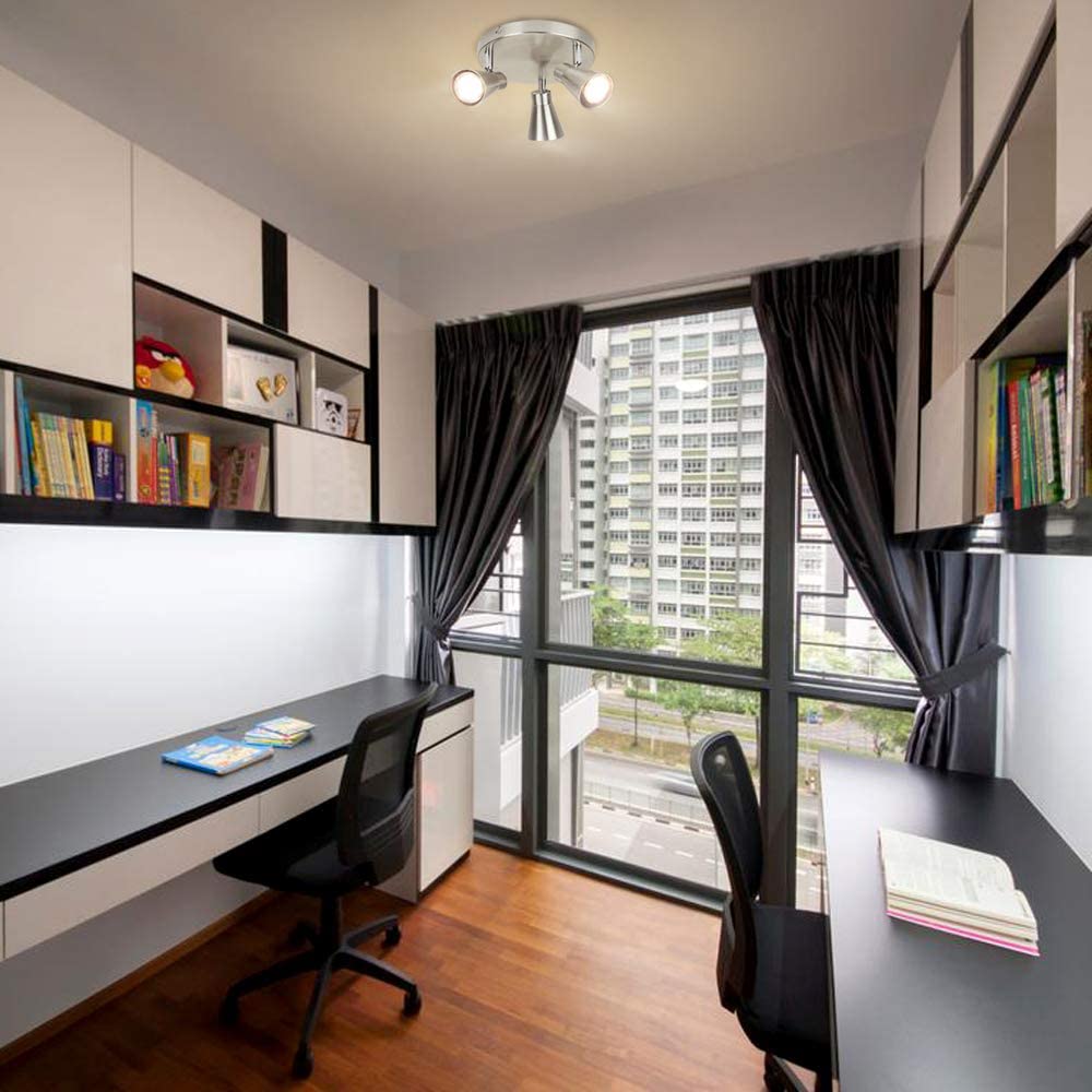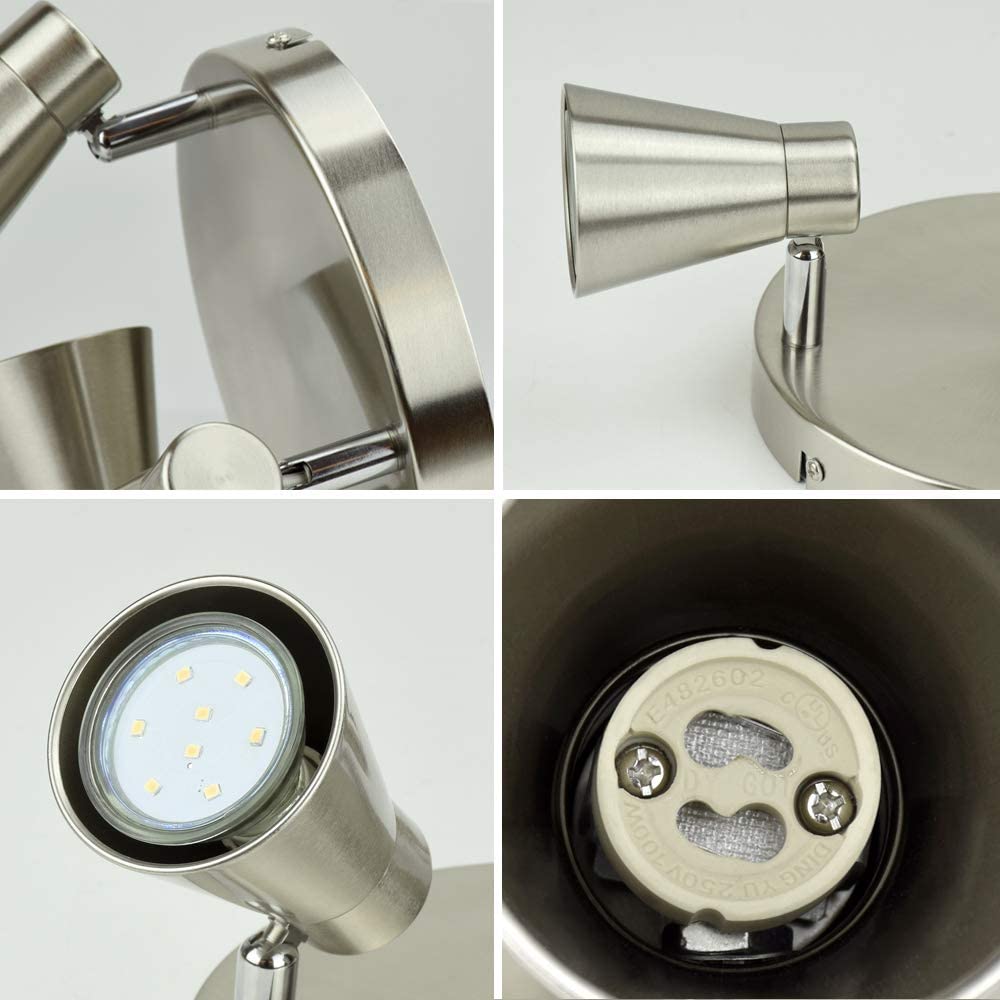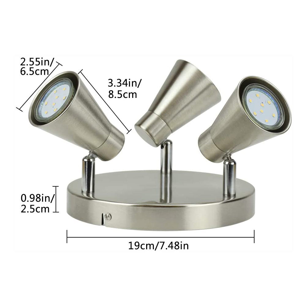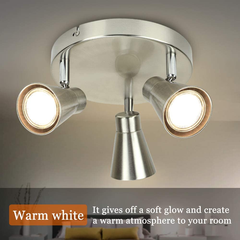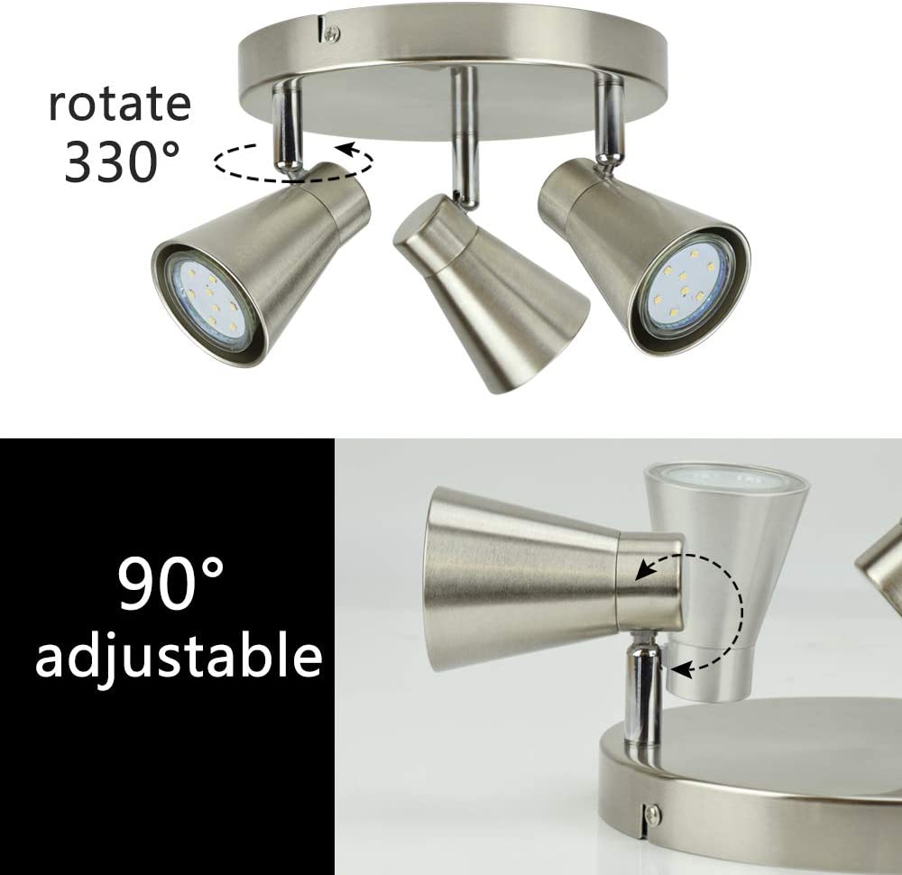 Depuleyn pyöreät keittiön kattovalot, keittiön kohdevalot säädettävät kattovalot, 3-suuntainen kattovalaisin keittiöön, makuuhuoneeseen, ruokasaliin, toimistoon, harjattua nikkeliä, lämpimän valkoiset
