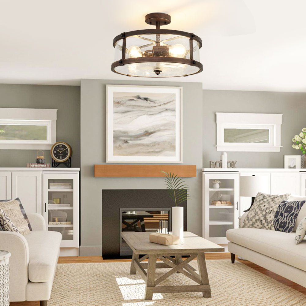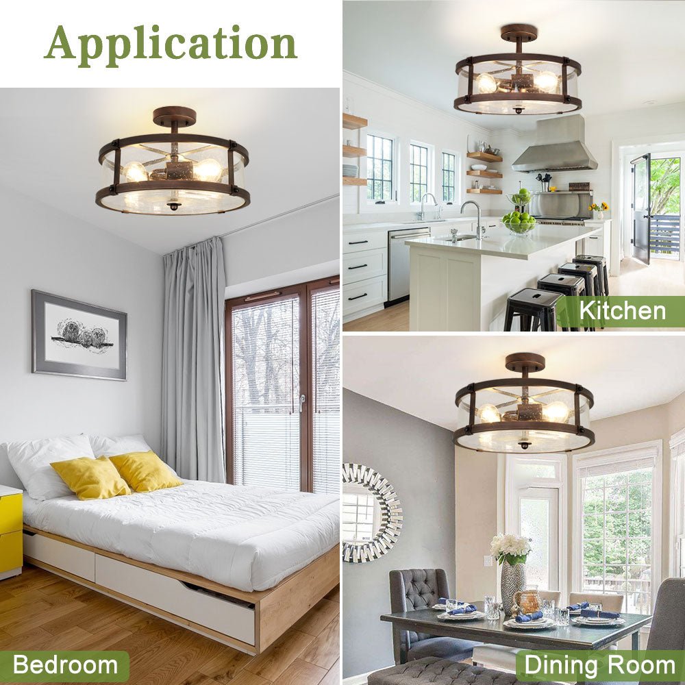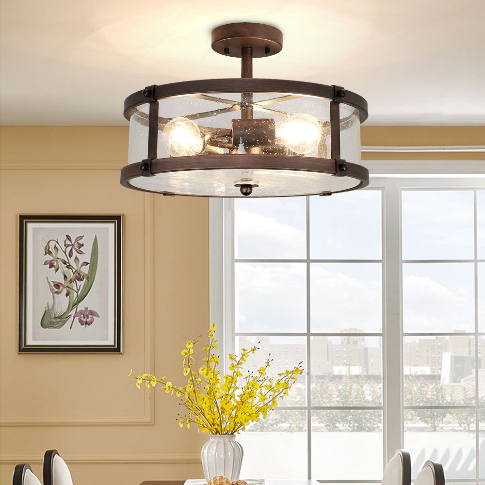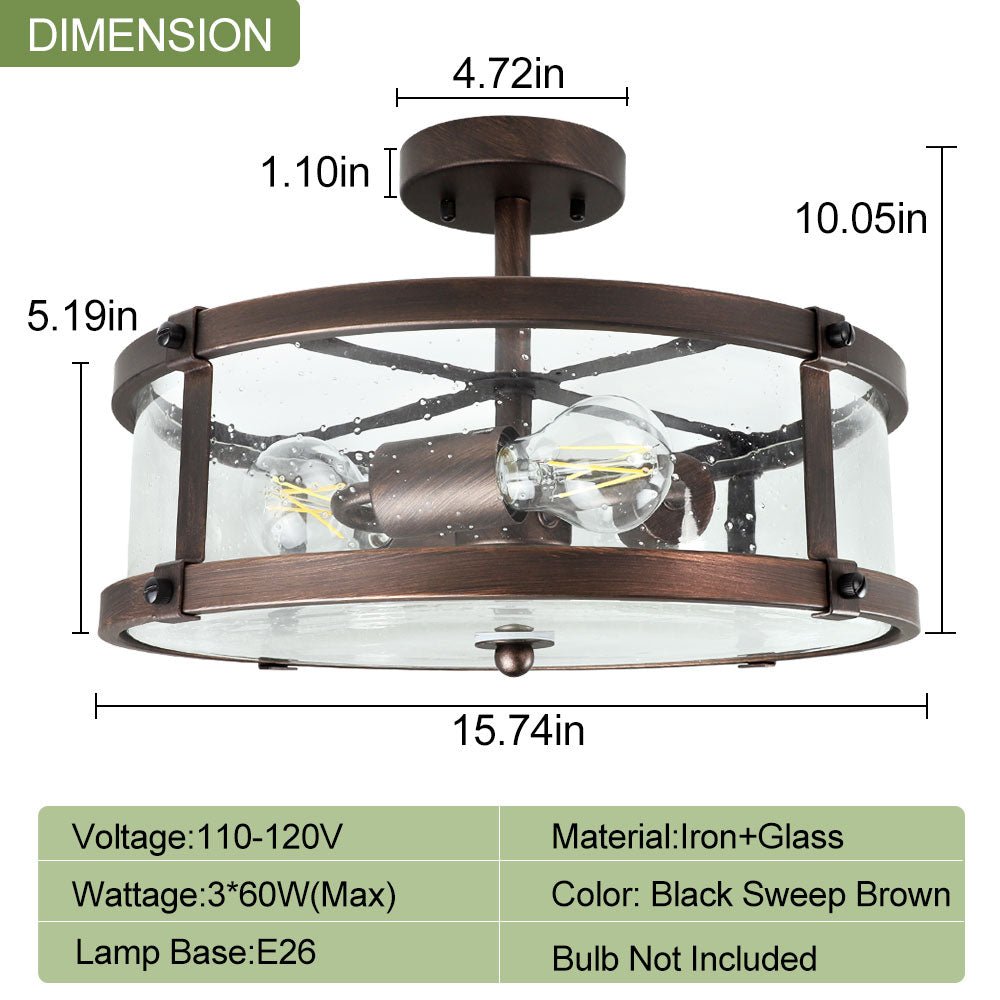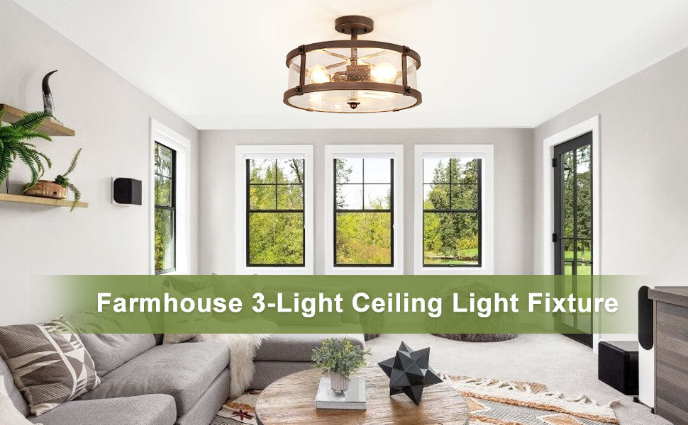 Depuley 3-Light Puolitasossa asennettava kattovalaisin, maalaistalon metalliset valaisimet kirkkaalla lasivarjostimella olohuoneeseen ruokasaliin keittiösaari käytävä Makuuhuoneen sisäänkäynti