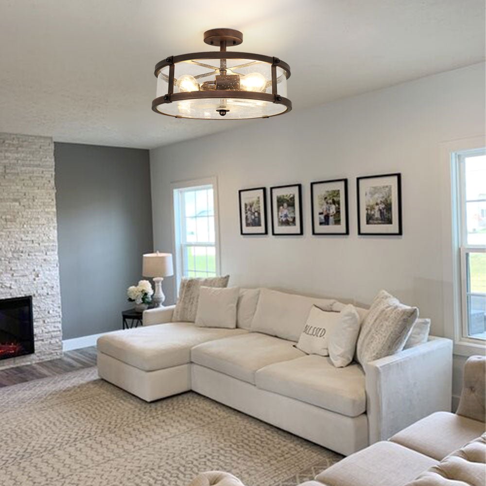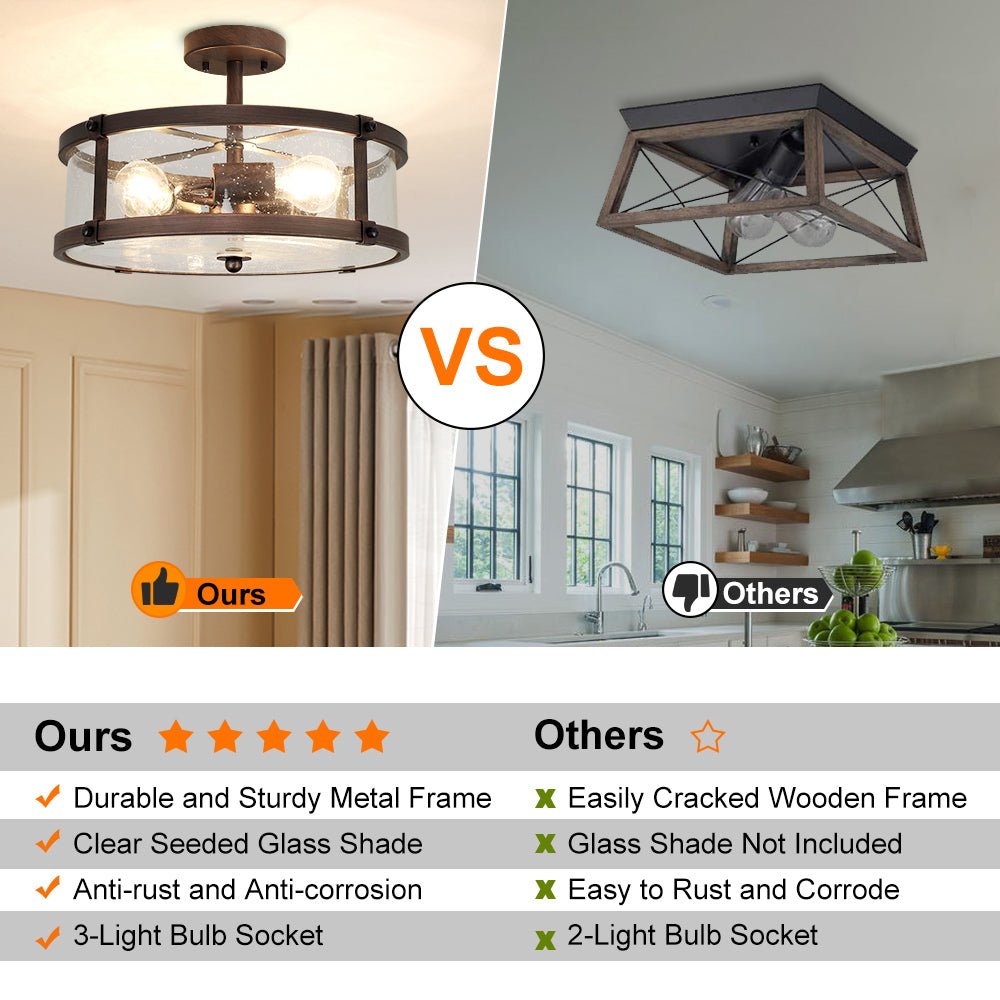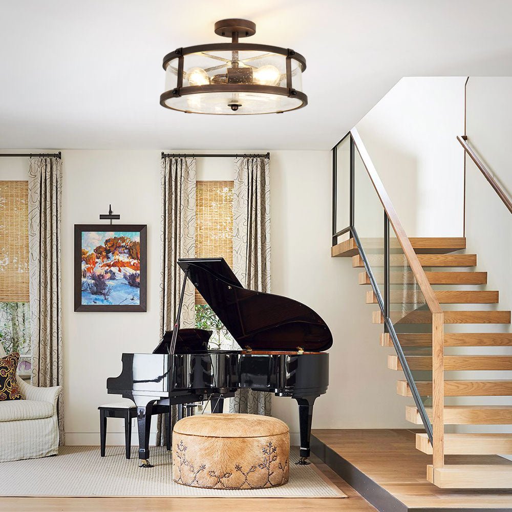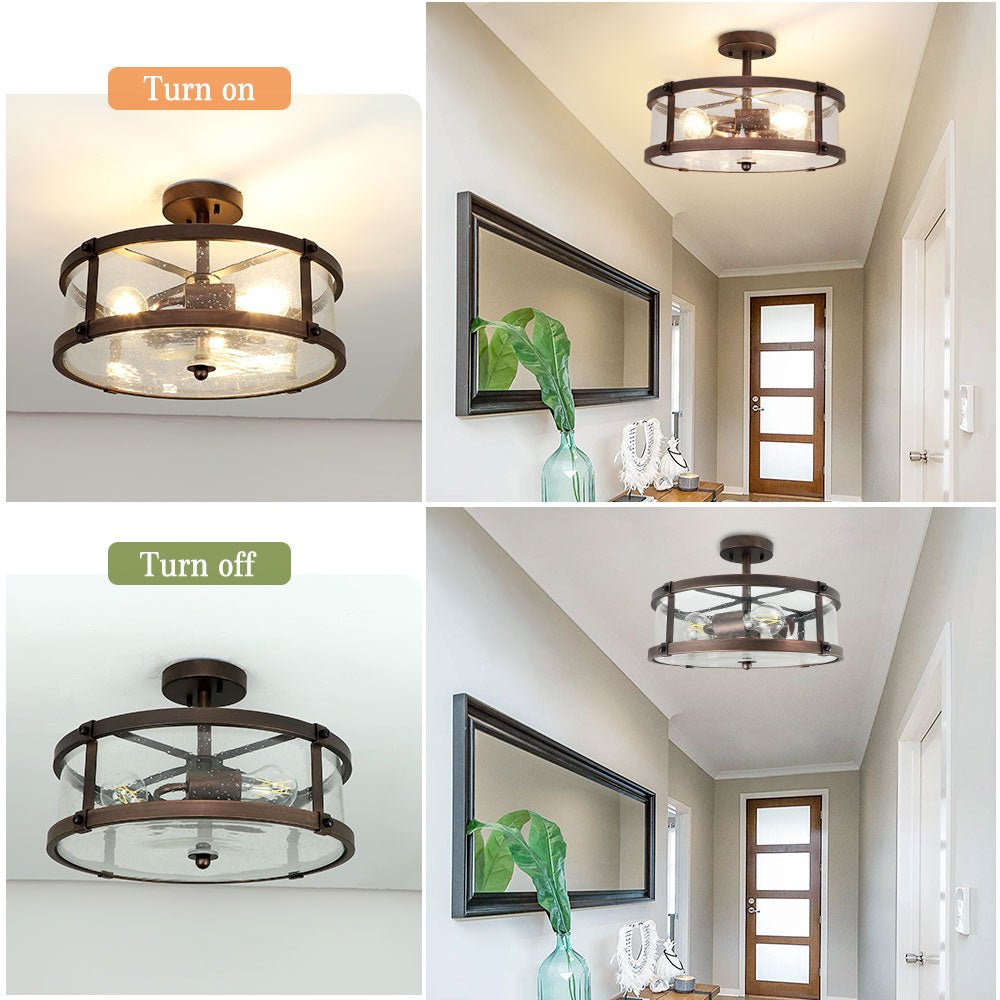 Depuley 3-Light Puolitasossa asennettava kattovalaisin, maalaistalon metalliset valaisimet kirkkaalla lasivarjostimella olohuoneeseen ruokasaliin keittiösaari käytävä Makuuhuoneen sisäänkäynti