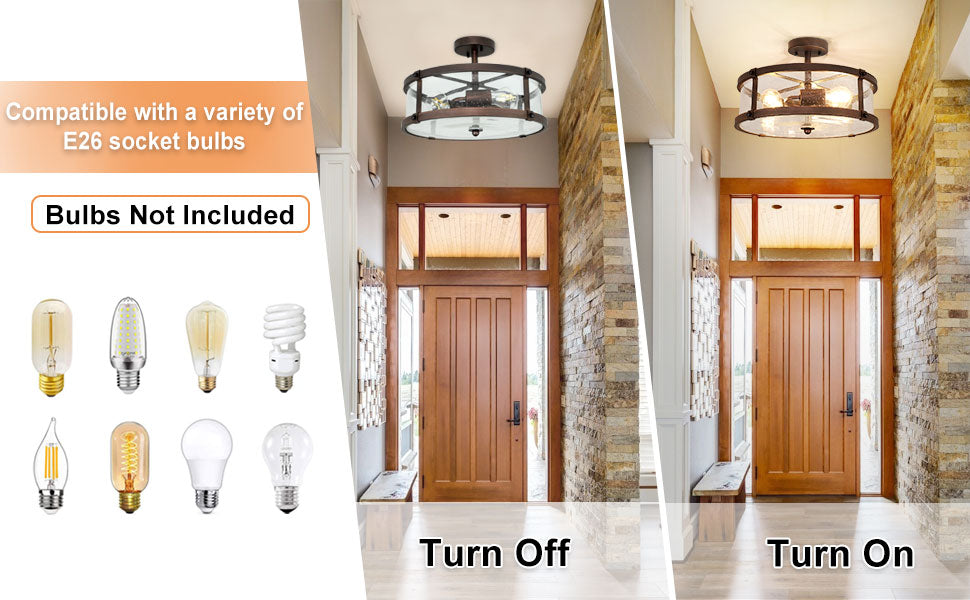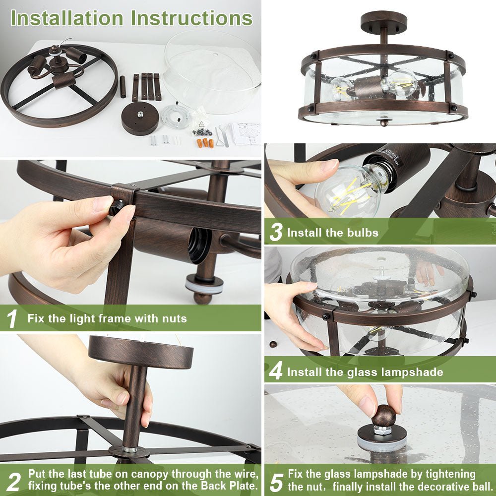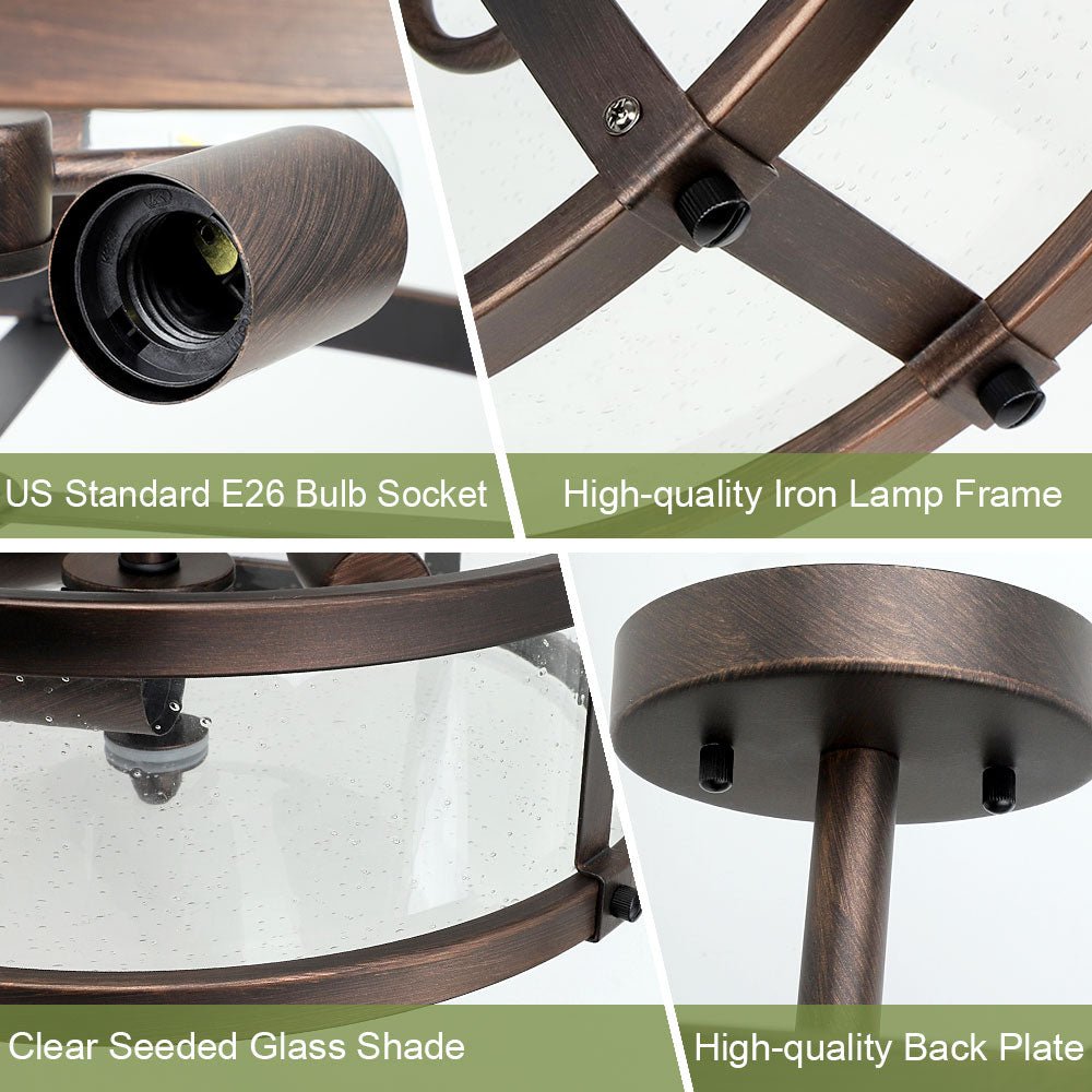 Lasivarjostimen ja rautarungon yhdistävä maalaismainen uppoasennettava kattovalaisin yhdistää täydellisesti retrotyylin moderniin teolliseen viehätysvoimaan. Kirkkaat lasivarjostimet antavat valon loistaa koko huoneeseen esteettömästi. Sen ulkonäkö on yksinkertainen mutta tyylikäs (mukaan lukien valaistus ja sisustus), mikä on hyvä valinta sinulle. Kattovalaisin on valmistettu korkealaatuisesta kylvetystä lasista ja raudasta, joka on paitsi kaunis ulkonäöltään myös vahva ja kestävä rakenteeltaan. Laadukkaat materiaalit ja erinomainen tuotantoprosessi takaavat sen pitkäaikaisen tehokkaan käytön. Vahva ja kestävä rungon sisäinen rakenne takaa pitkän aikavälin tehokkaan käytön. Siemenlasinen lampunvarjostin voi näyttää hehkulamput täydellisesti ja parantaa valonläpäisyä lisäämällä runsaasti valoa kotiisi. Tukeva takalevy kestää tehokkaasti kattovalaisimen painon. Kaikki asennustarvikkeet ja selkeät asennusohjeet sisältyvät pakkaukseen, joten voit suorittaa asennuksen helposti ja nopeasti.