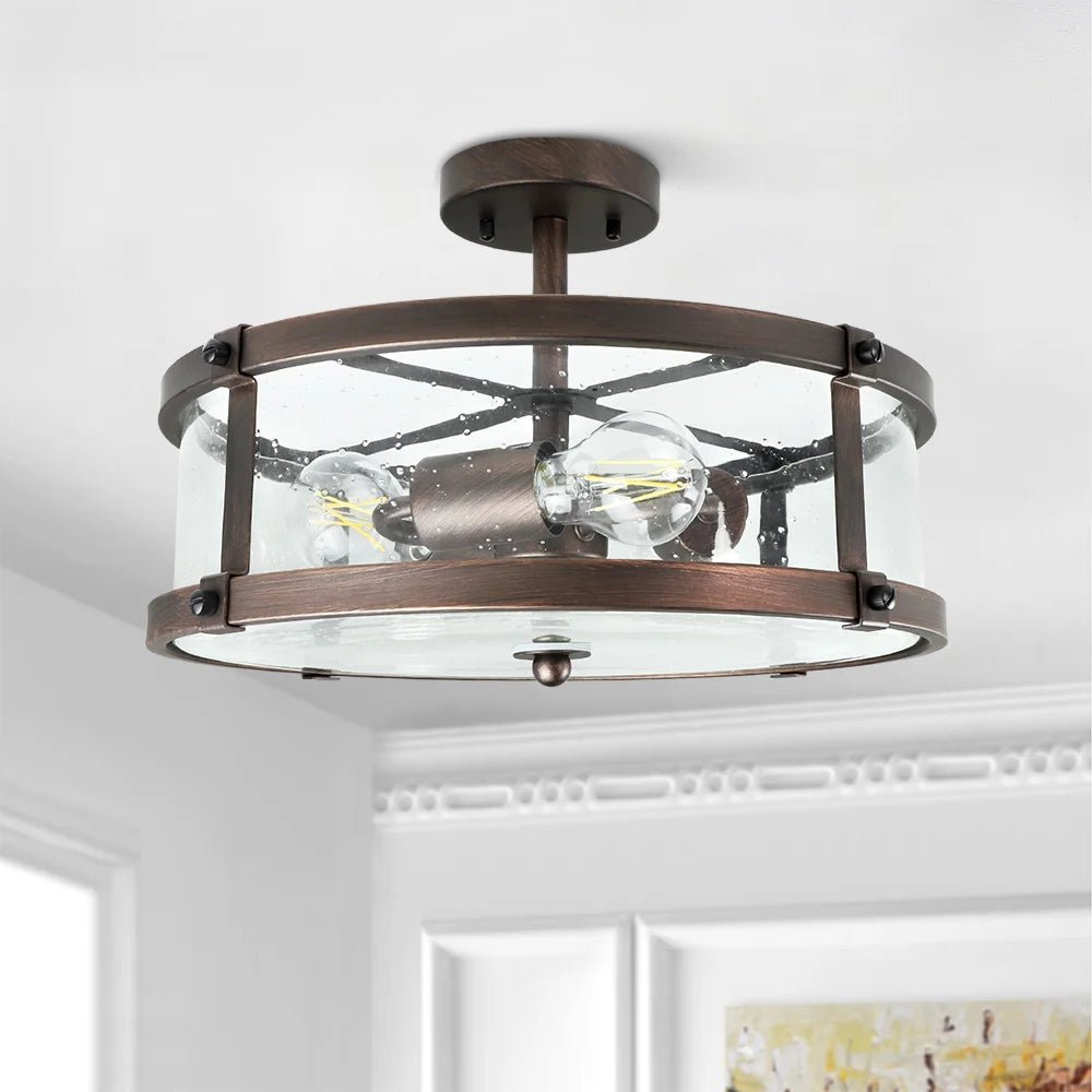 - Ainutlaatuinen muotoilu ja elegantti muoto: Tämä maalaismainen uppoasennettava kattovalaisin yhdistää lasivarjostimen ja rautarungon täydellisesti retrotyylin moderniin teolliseen viehätysvoimaan.