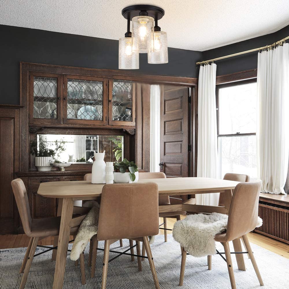 DINGLILIGHTING Depuleyn puolitasossa asennettava kattovalaisin maalaistalon kylvetty lasikattokruunu 3-valolla ruokasaliin, eteiseen, keittiöön, makuuhuoneeseen, sisäänkäyntiin