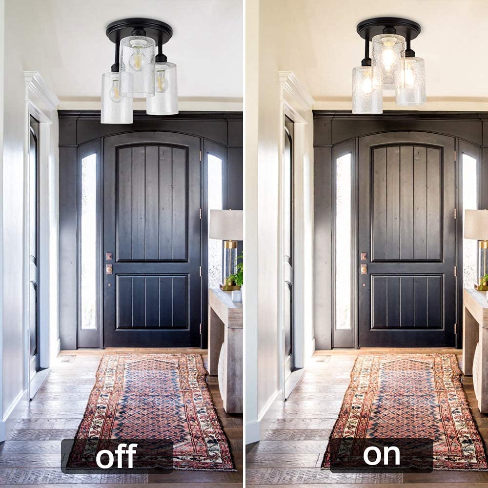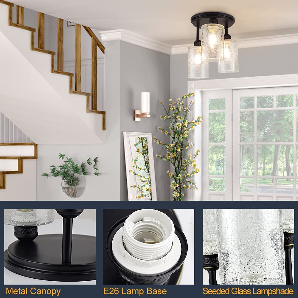 DLLT 3-kevyt teollisuusvalaisin, puolitasolla asennettu valaisin, 9,64 tuuman vintage, lähellä kattoa oleva valaisin kuplitulla lasivarjostimella, riippuvalaisin eteiseen/keittiöön/etuaiseen/makuuhuon