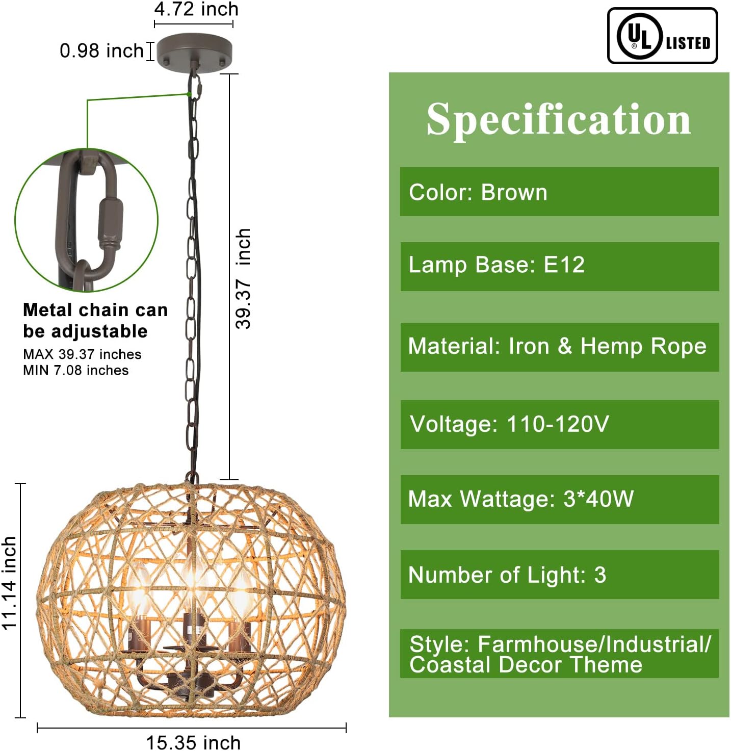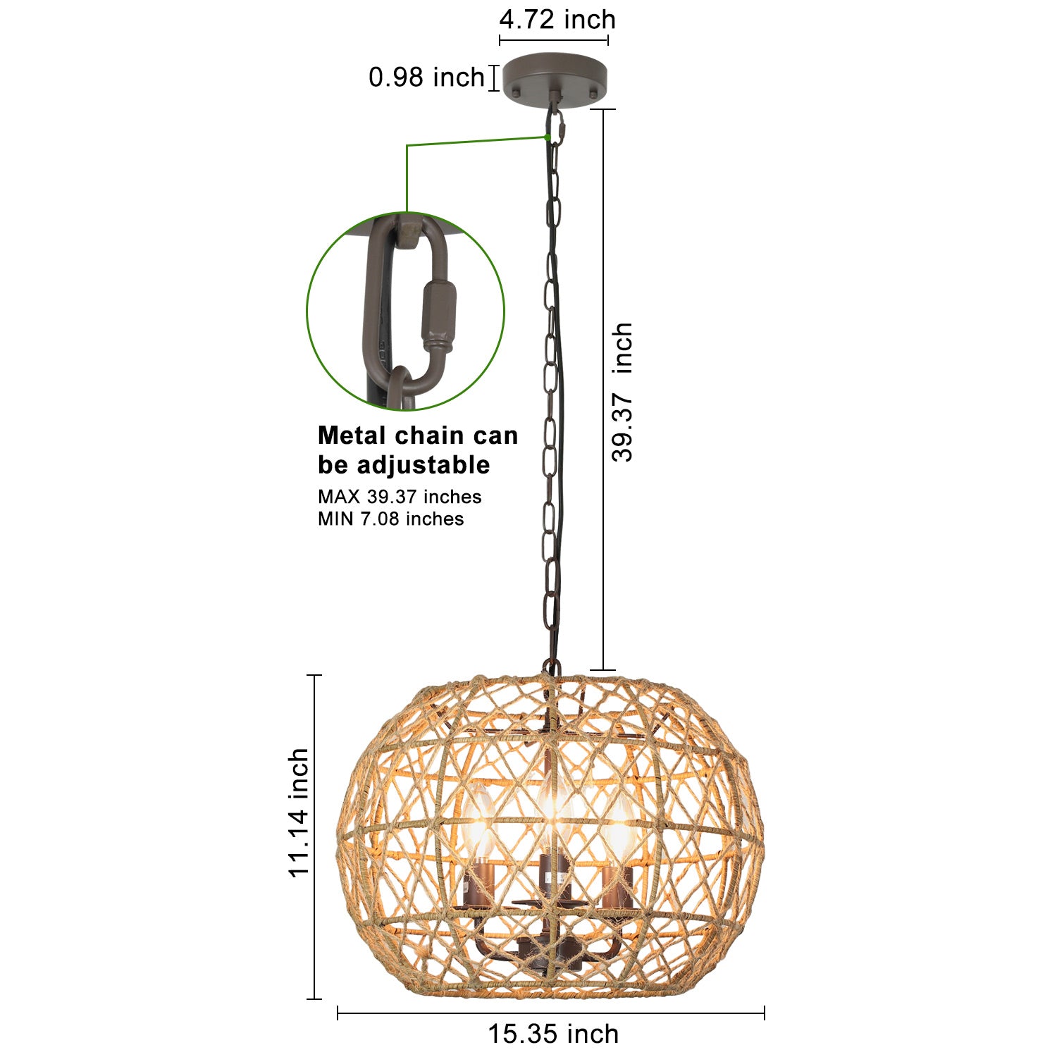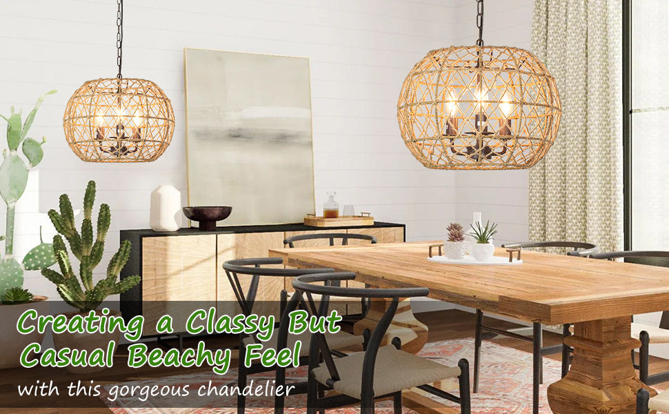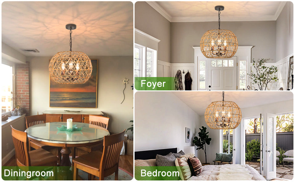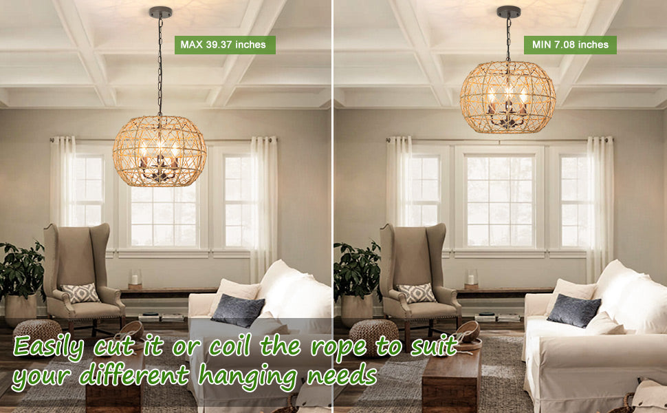 - �【DIY-ominaisuudet ja helppo asentaa】Säädettävä: Kudotussa valaisimessa on 39,37 tuuman ketju, joten voit nostaa ja laskea sitä haluamallasi tavalla (MAX 39,37 tuumaa/MIN 7,08 tuumaa). Sinun ei koskaan tarvitse huolehtia siitä, sopiiko se tilaan, koska se sopii korkeaan ja matalaan kattoon.