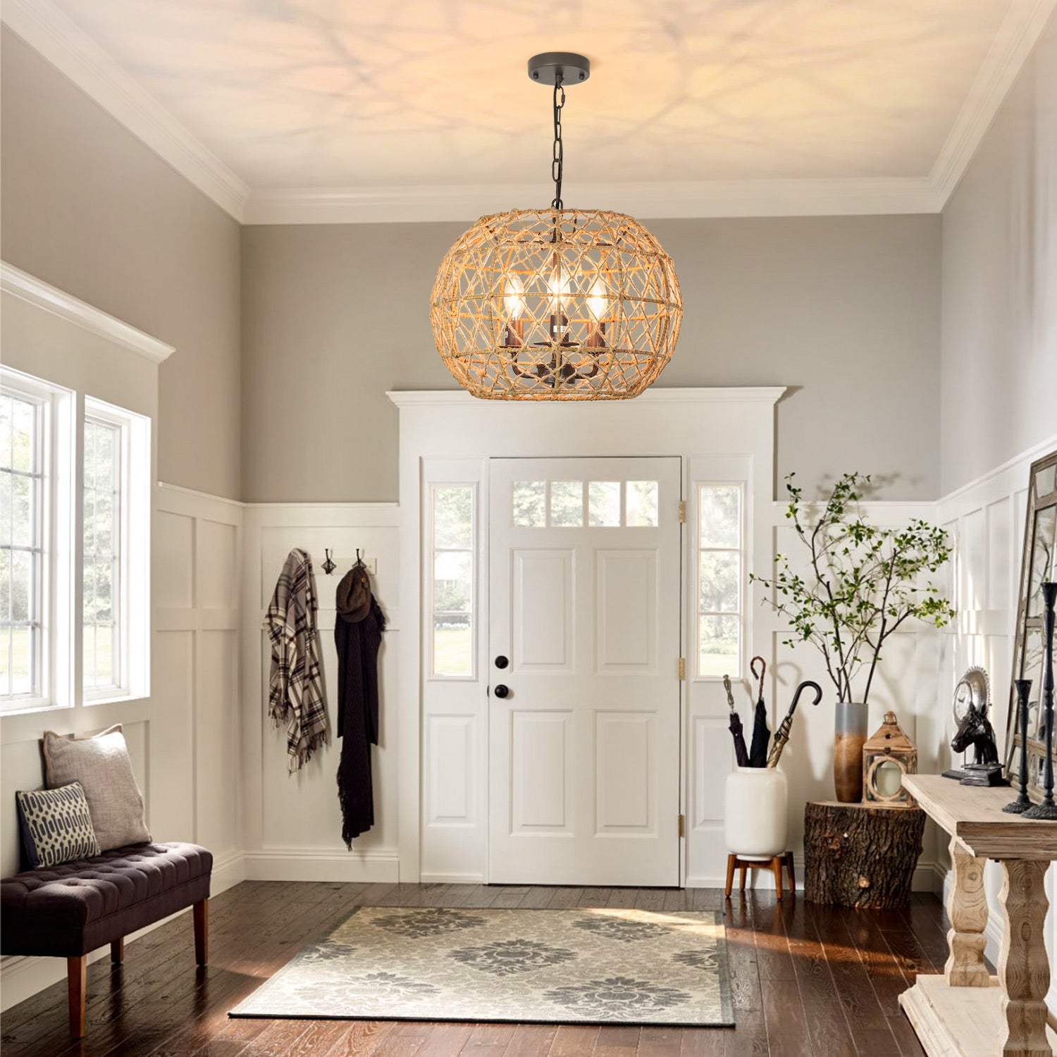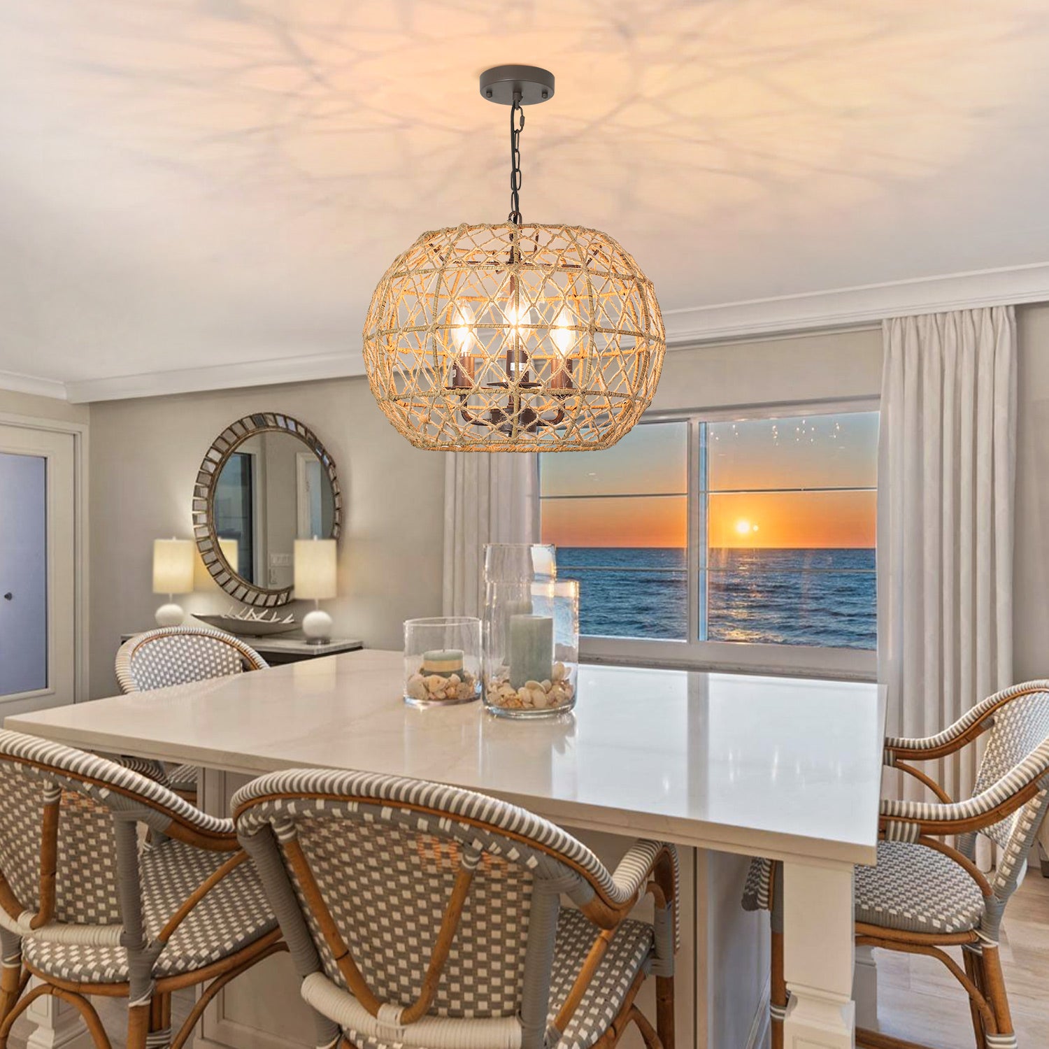 - �【Upea design】3 valaisinta riippuvalaisin erinomaisella takorautarungolla ja luonnollisella hamppuköydellä "X" yksityiskohtia ulkovarjostimella. Valaisimen metalli on maalattu sopimaan köyteen, mikä luo tyylikkään mutta rennon rantatunnelman. Suunniteltu rentoon, rannikolle, merenkulkuun, maalaismaiseen, maalaismaiseen, moderniin ja boheemiin mökkiin.