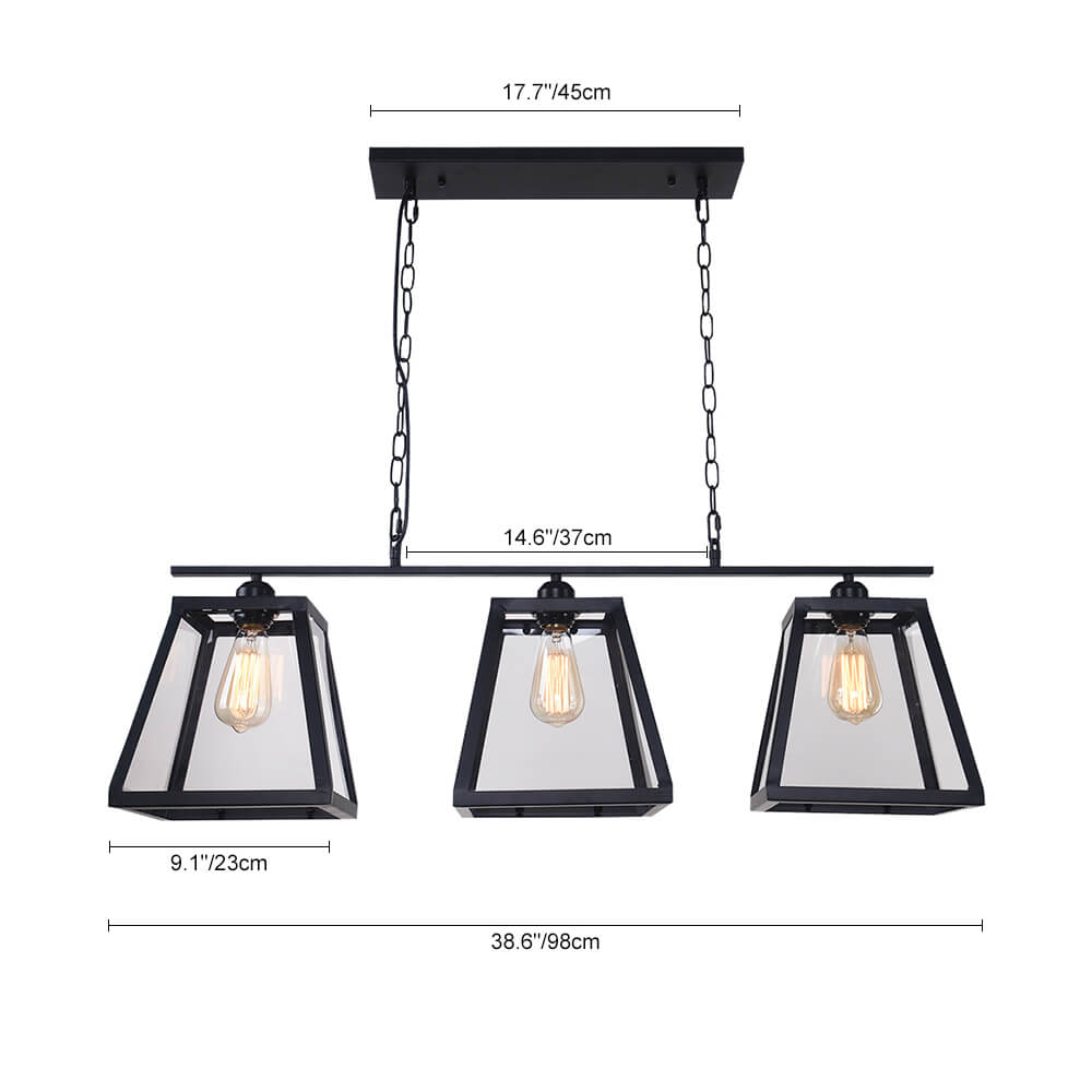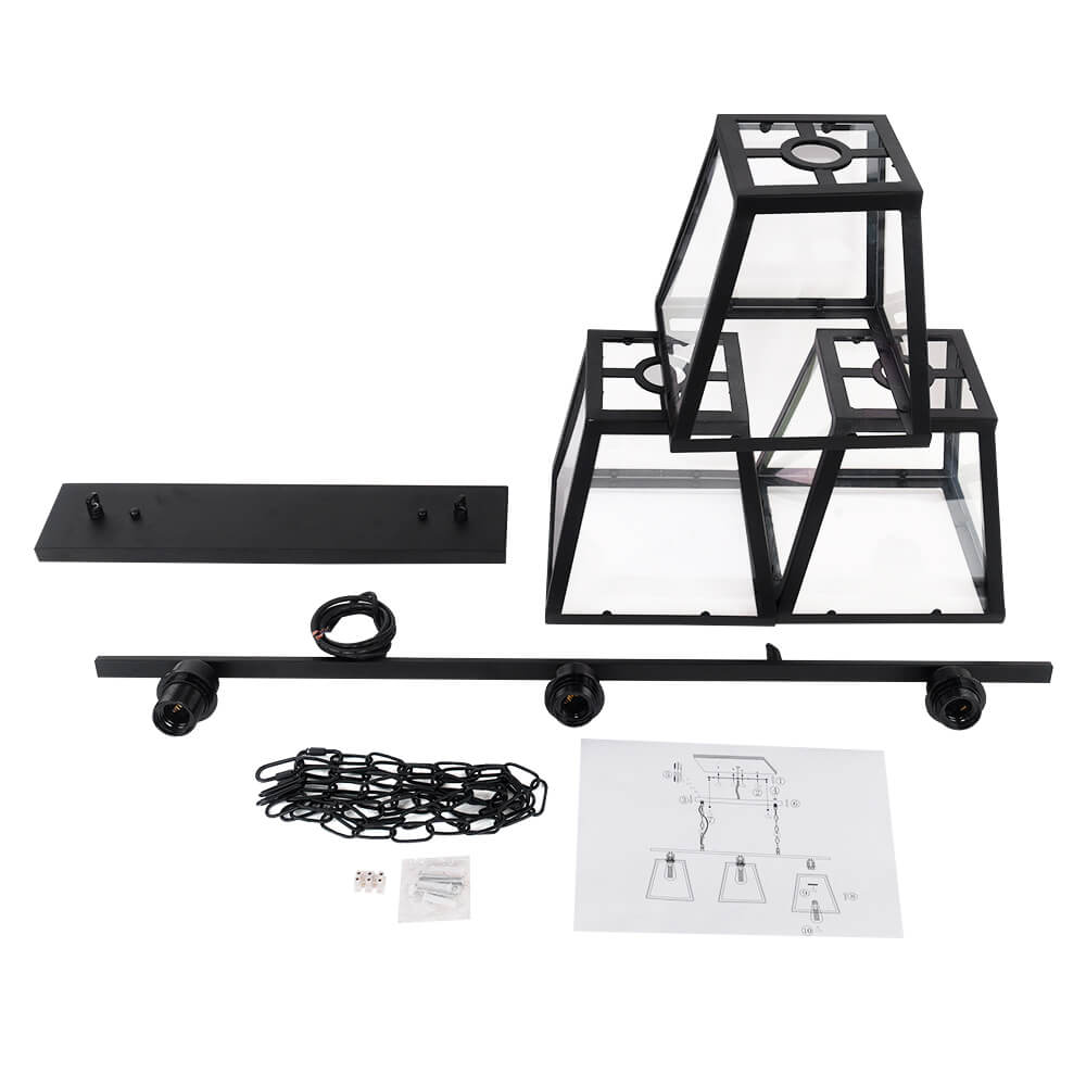 3-valaisin Island-riippuvalaisin Trapezium-Lantern-varjostimessa