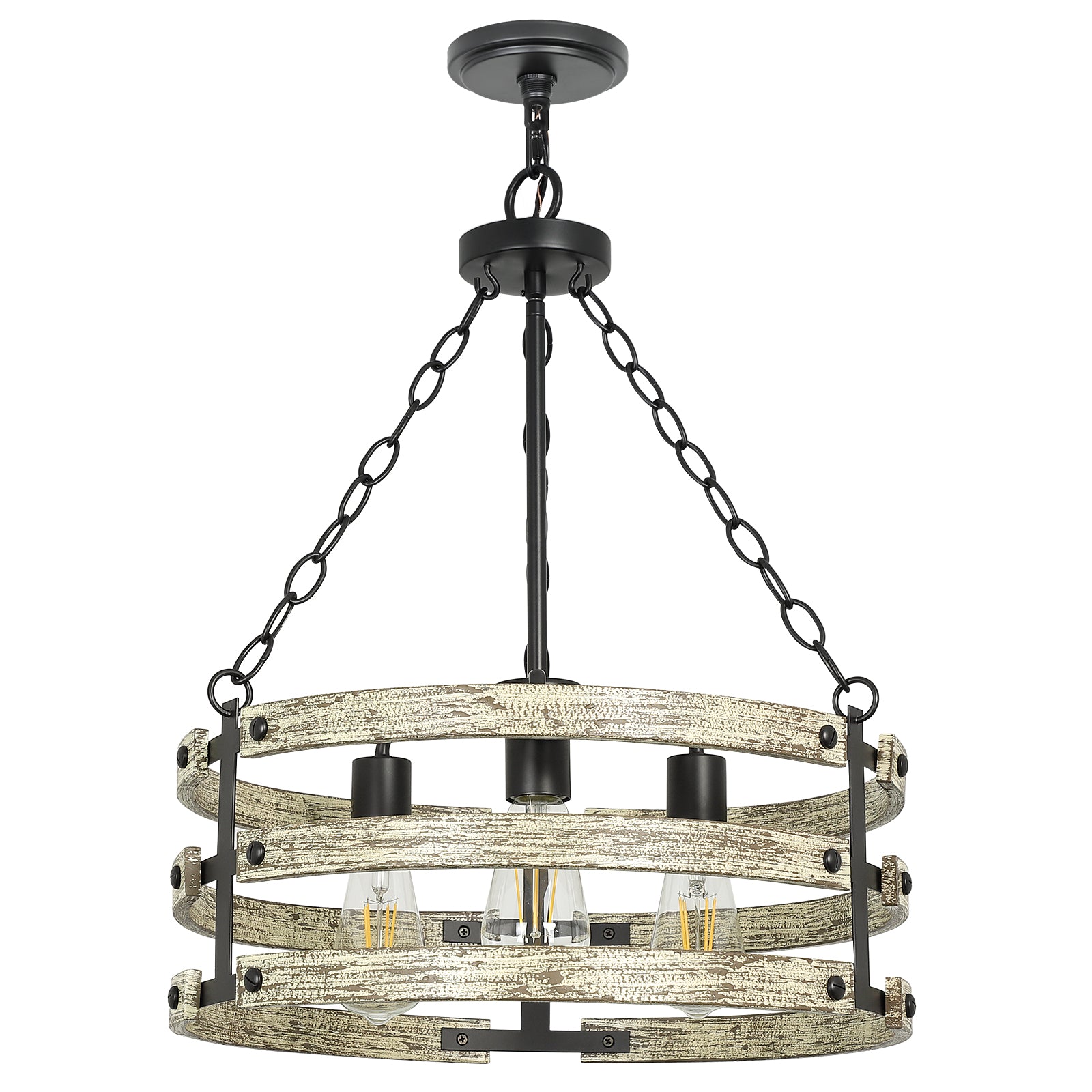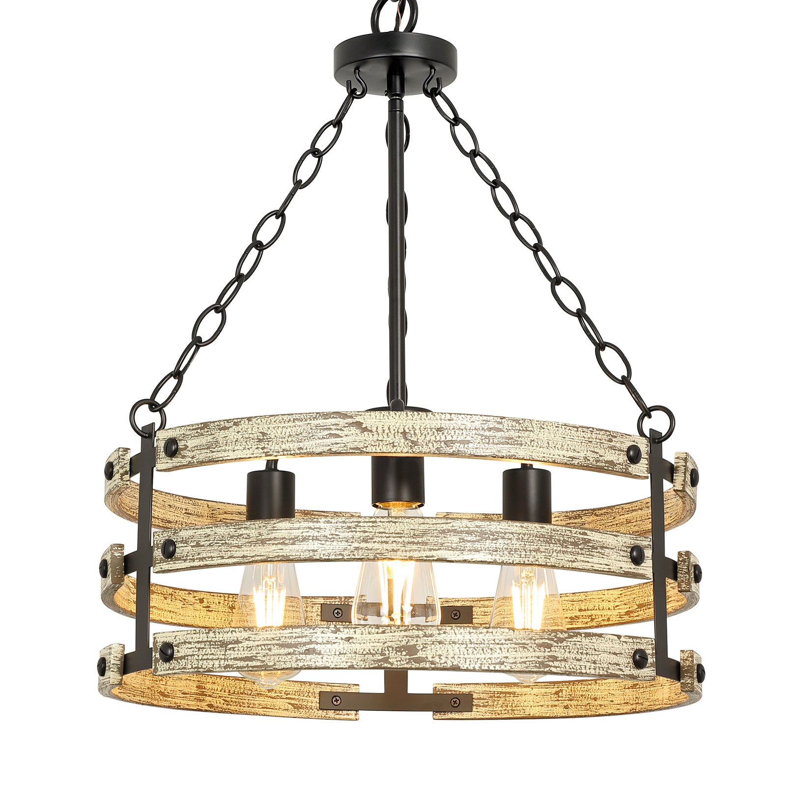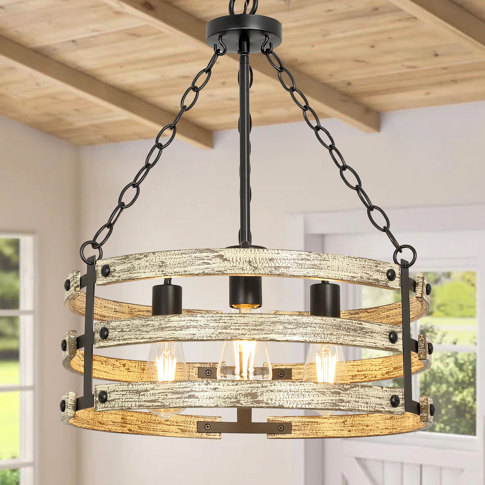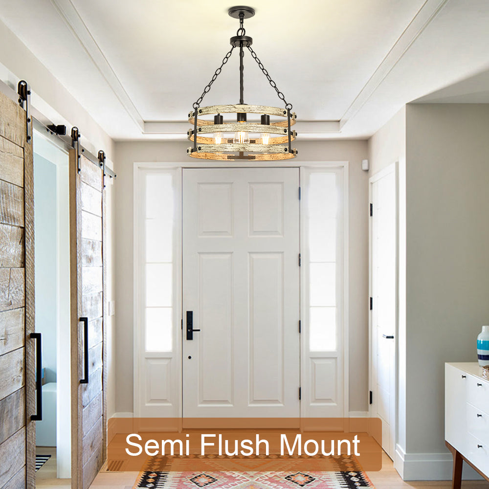 DINGLILIGHTING Depuley 3-Light Farmhouse Rustic Drum Chandelier Light Fixtures, Semi Flush Mount Hanging Pendant for Dining Room Kitchen Entryway Foyer Hallway, Black Metal Finish