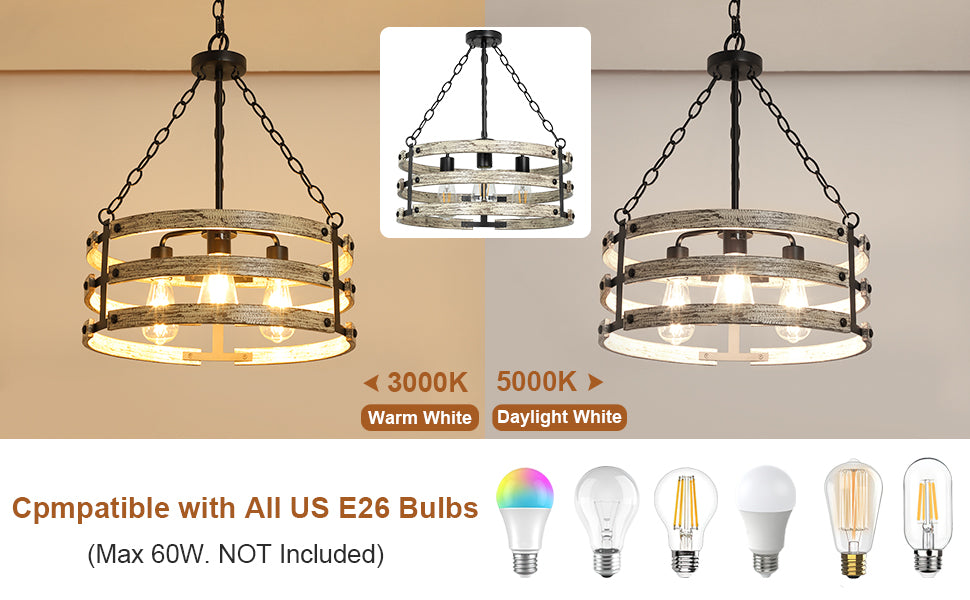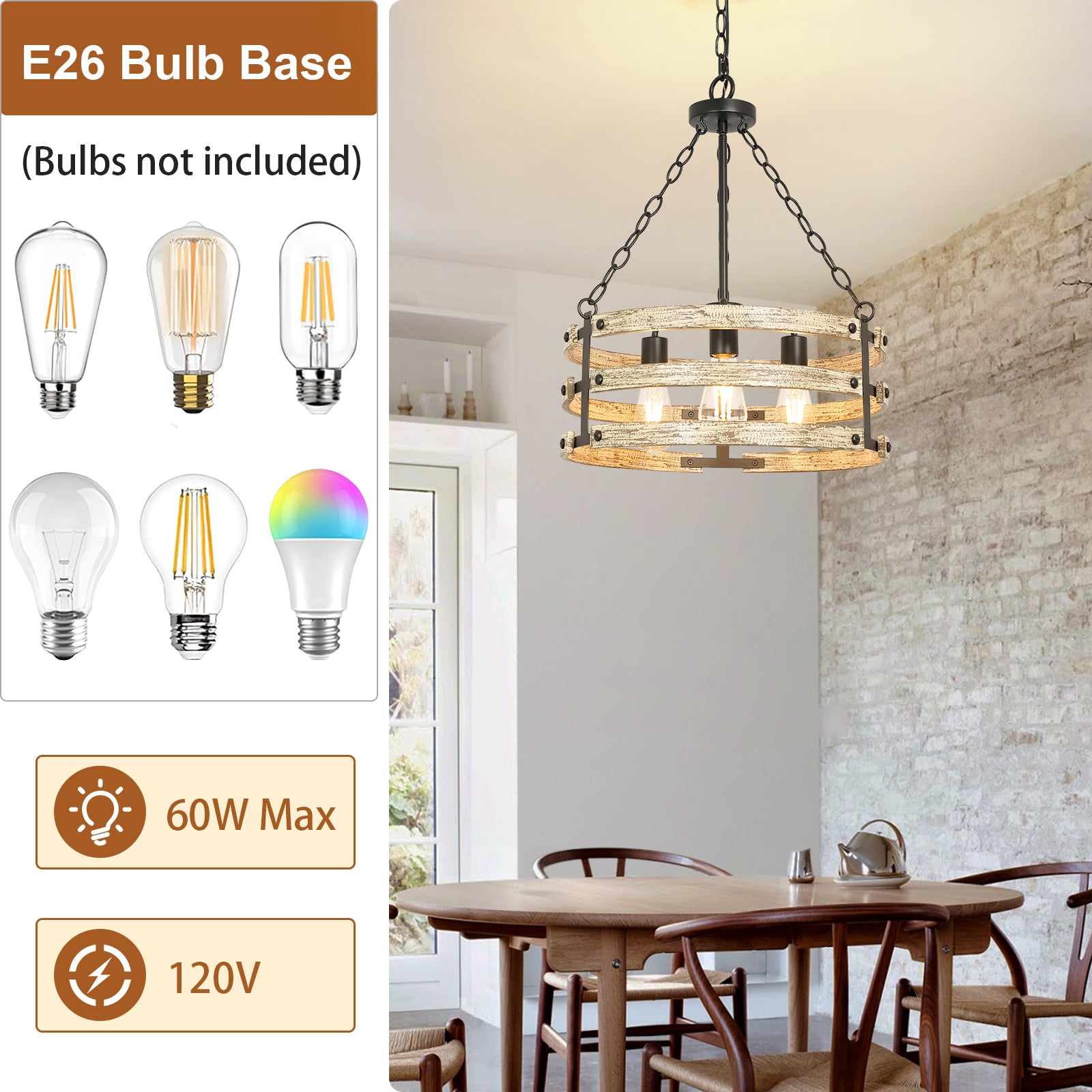 - Three Bulbs: this chandelier is compatible with all kinds of Bulbs ( LED / CFL / Incandescent / Dimmable, screw style).