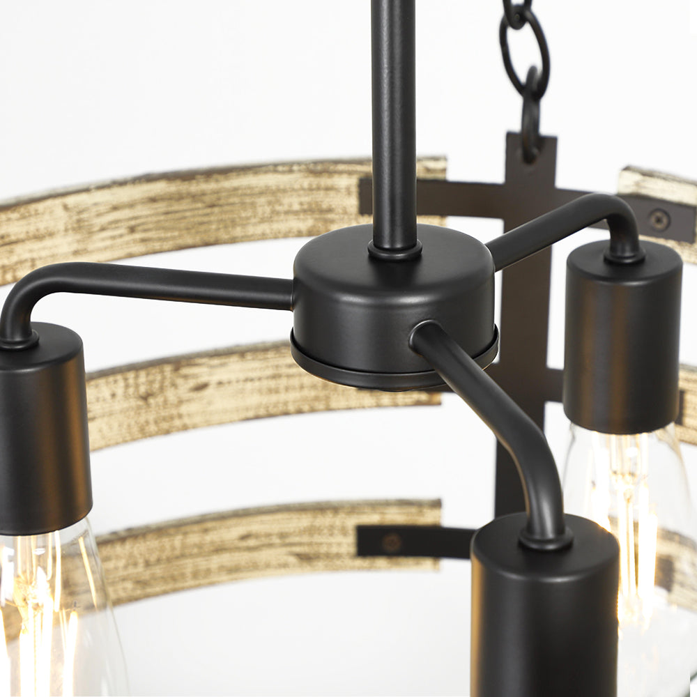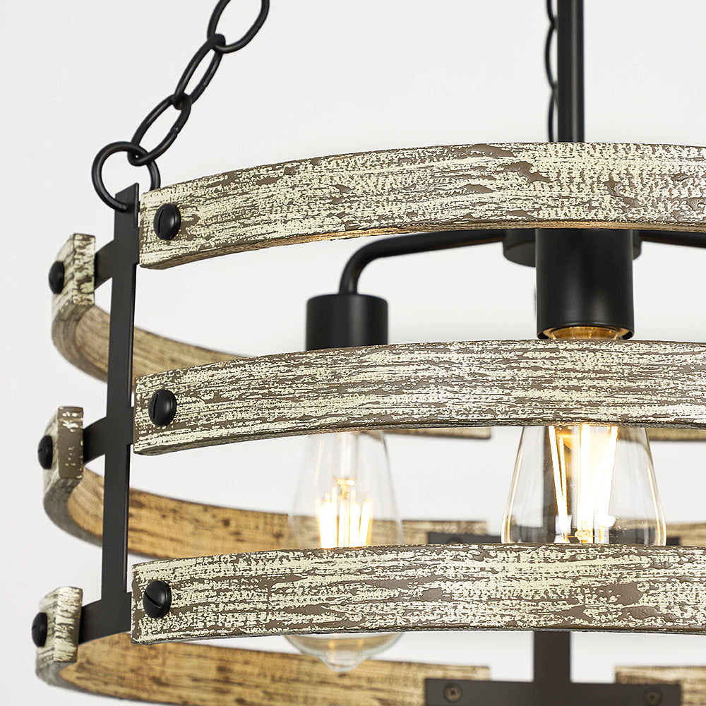 - The industrial chandelier is inspired by modern farmhouse accents and barn designs, offering visual interest to your home, and adding a farmhouse aesthetic ambiance to your space.