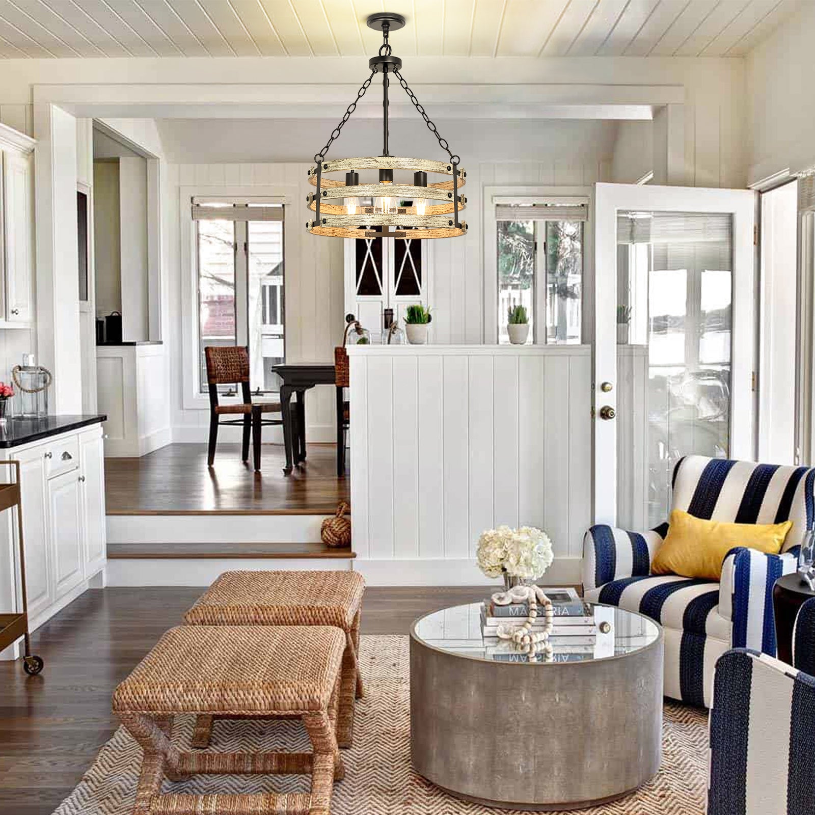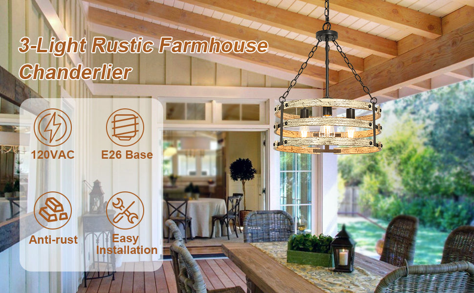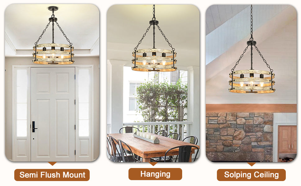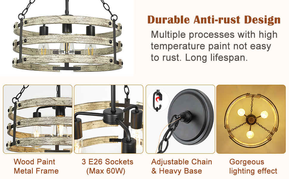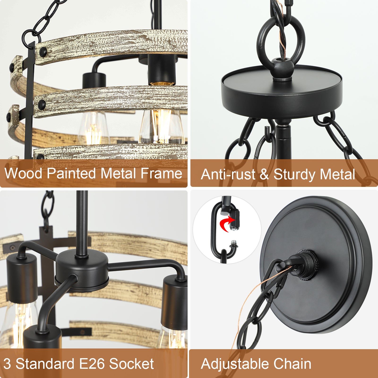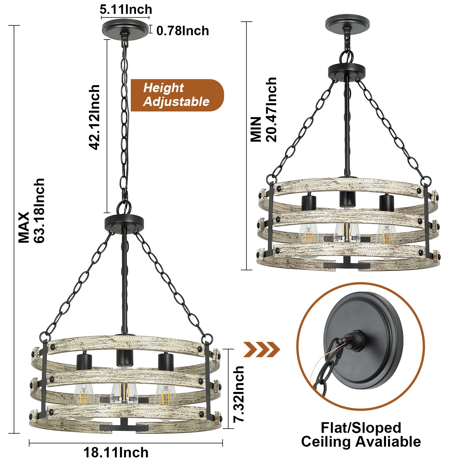 - Adjustable Height: The 3-light pendant lighting comes with a 42-inch chain, you can customize the height of the chandelier by adjusting the length of the chain.