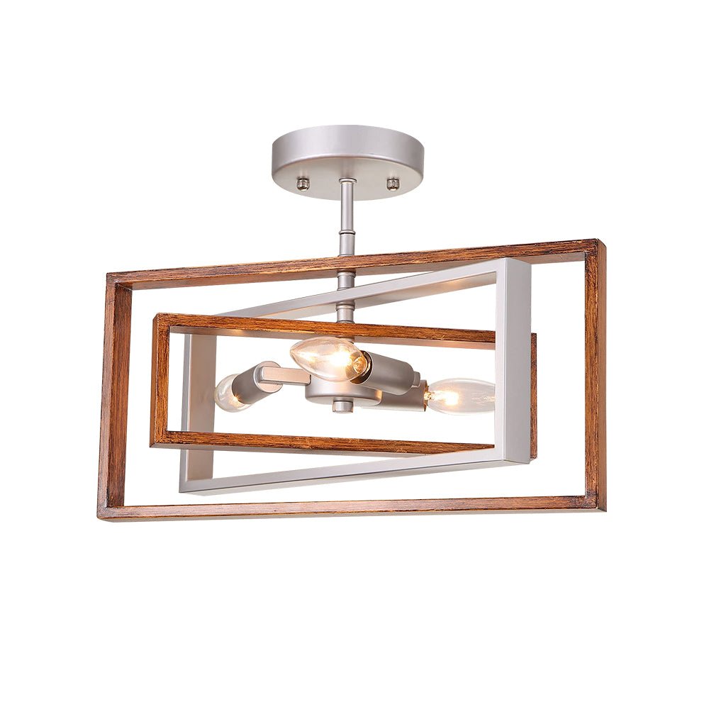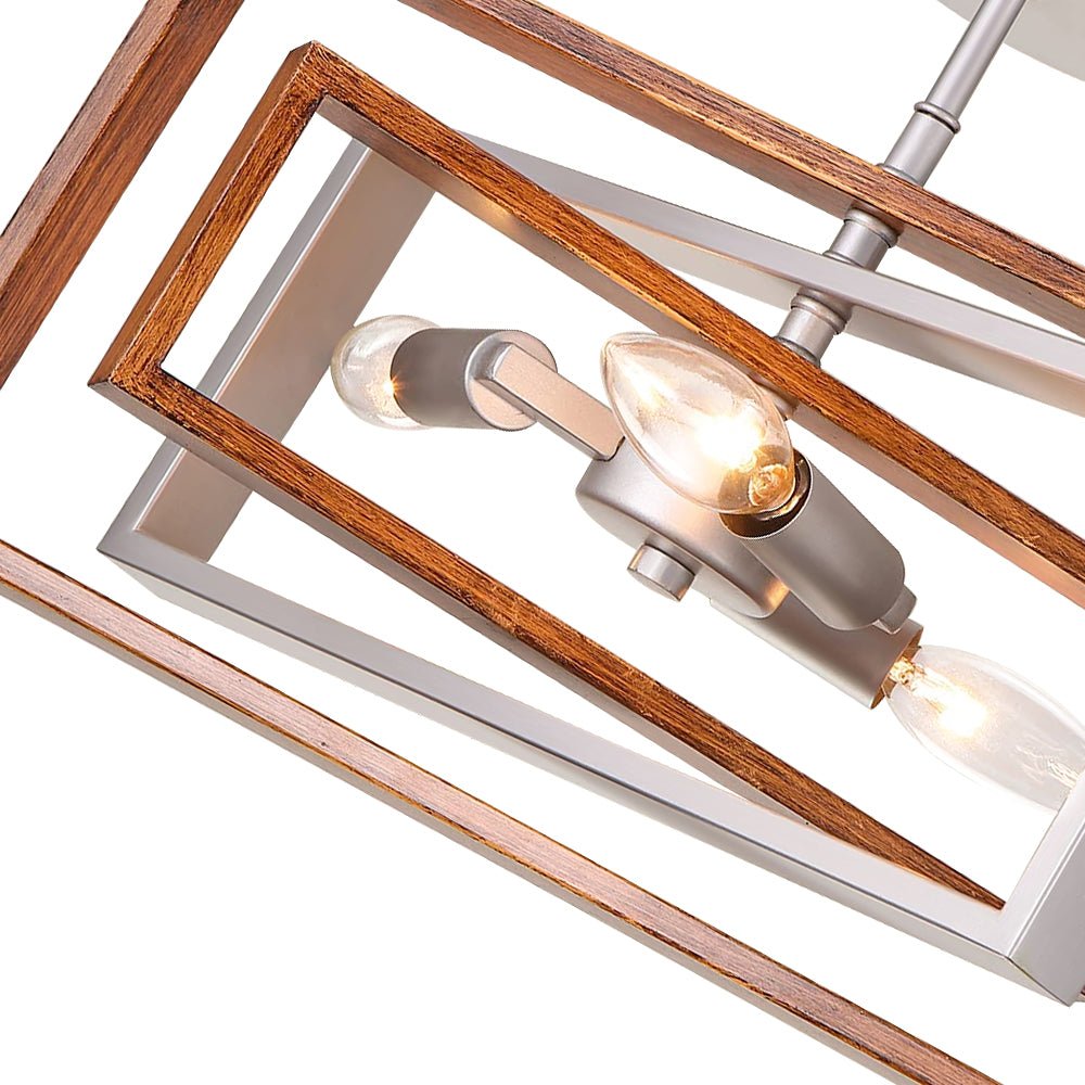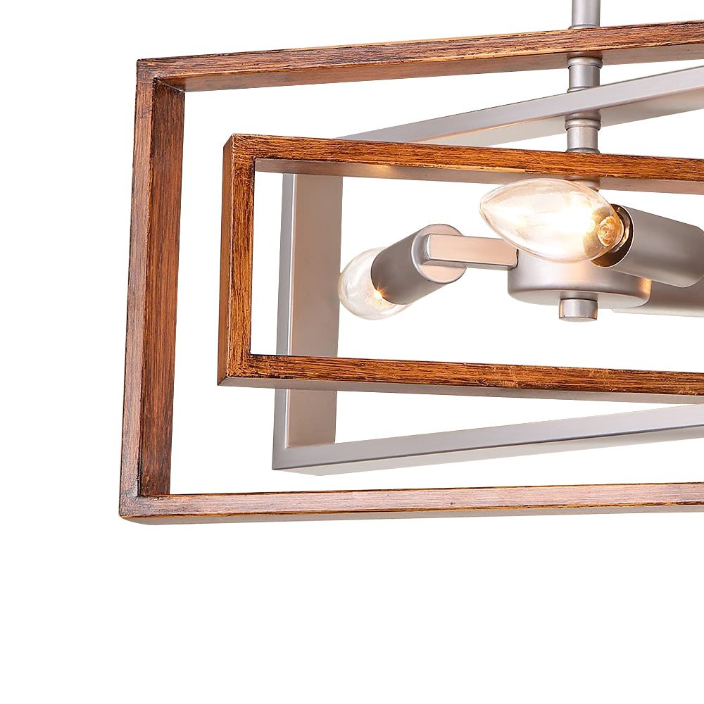 Silmiinpistävä 3-kerroksisessa kehyksessään, joka on viimeistelty hopealla ja kullanruskealla viimeistelyllä, puolitasolla asennettava valaistus on erinomainen sekoitus maalaistalon kattovaloa ja modernia tunnelmaa. Kolme erikokoista suorakaiteen muotoista metallirunkoa muodostavat pyörivän avoimen häkin, joka on täynnä dynaamista geometrista kauneutta, joka vangitsee katseet. Kolmella E12-kynttelikön polttimolla (ei sisälly toimitukseen) varustetussa suorakaiteen muotoisessa, puolitasossa asennettavassa kattovalaisimessa on siirtymätyylejä eteiseen, keittiöön, eteiseen, kylpyhuoneeseen, makuuhuoneeseen tai ruokailutilaan.Tiedot