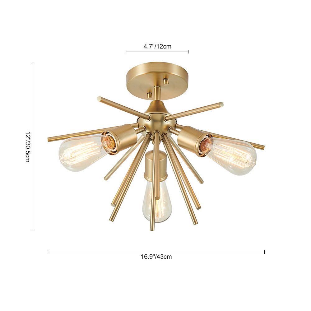 Kolme valoa • Messinkiviimeistely • Starburst-malli • E26/E27 Keskikantaiset polttimot (ei sisälly) • Kiinteä • UL-listattu/CE-listattu