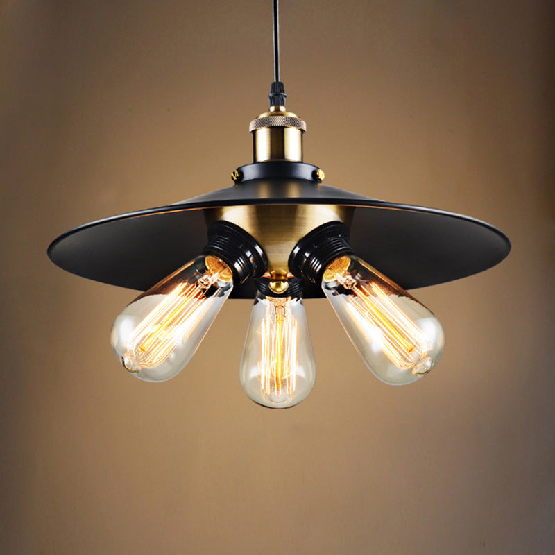 3-Lights Industrials Black Iron Hat riippuvalaisin olohuoneeseen