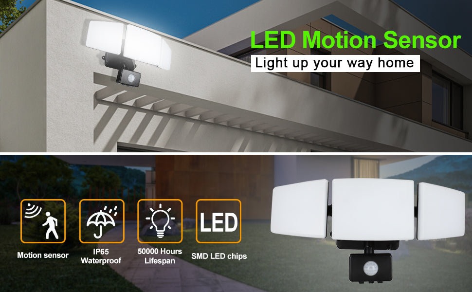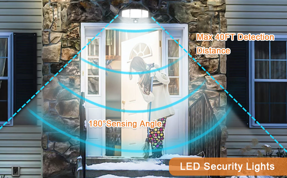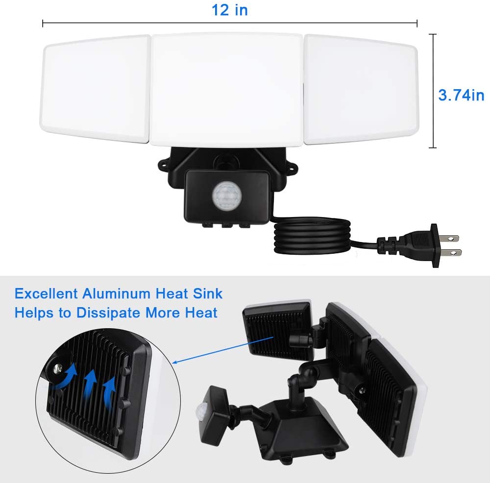 - 【Energian säästö ja pitkä käyttöikä】 Tämä liiketunnistimen turvavalo käyttää korkealaatuisia LED-siruja, korkeaa kirkkautta, alhaista energiankulutusta, tarjoaa paremman valaistuksen kuin tavallinen siru ja voi säästää yli 80 % sähkölaskuista. LED-sirut kestävät 50 000 tuntia, lyhentävät vaihtoaikaa ja lisäävät talosi turvallisuutta.