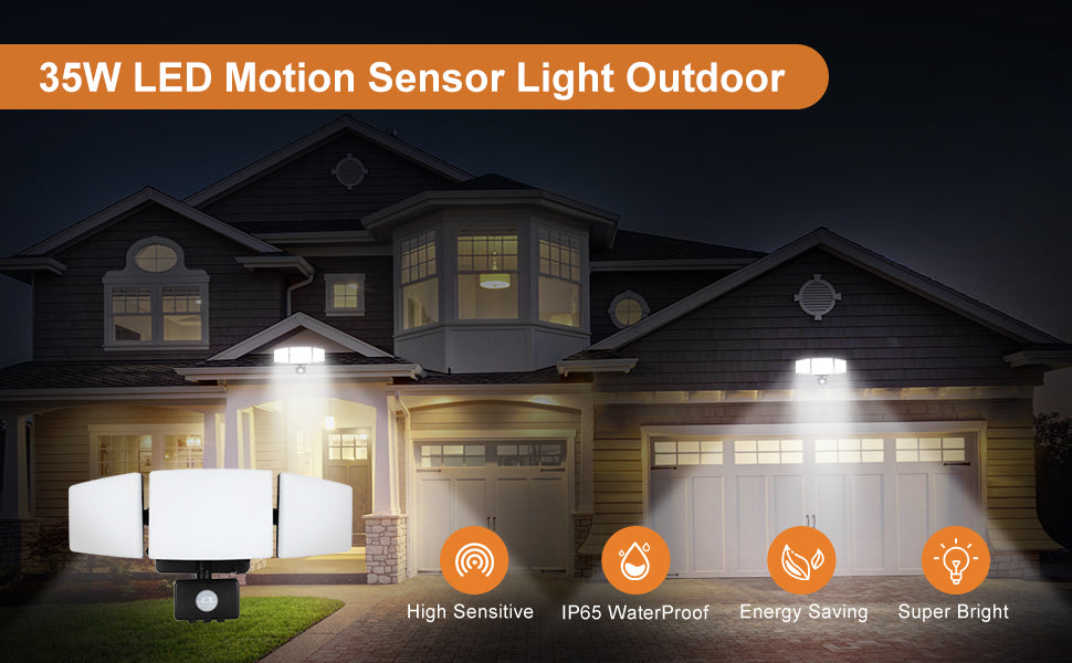 Depuley 35 W Plug in Motion Sensor Light Outdoor, LED Motion Security Lights 3 säädettävällä päällä, IP65 vedenpitävä ulkoinen havaittu tulvavalo autotalliin, pihalle, kuistille, patiolle, 6500k