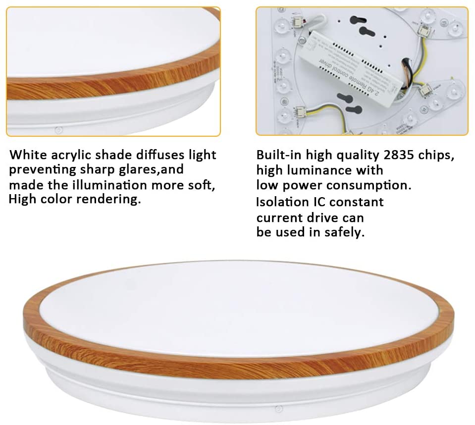 [Erittäin ohut muotoilu] Vain 1,7 tuuman erittäin ohut muotoilu tekee tilasta tilavamman. Tässä valossa on akryylivarjostin, jossa on puinen kuvioitu koristeellinen reuna, ei saasteita ruosteenesto- ja korroosionesto.