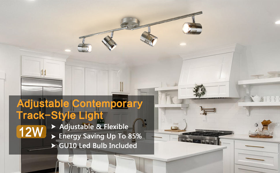 - 【4 valoa (sisältää polttimot)】Sisältää neljä 3W GU10-pohjaista led-lamppua, 960 lumenin kokonaisvaloteho, joka on verrattavissa 60 watin hehkulamppuun. 3000K lämmin valkoinen. 85 CRI, joka tuottaa tarkemman värintoiston ympärillä olevista kohteista.