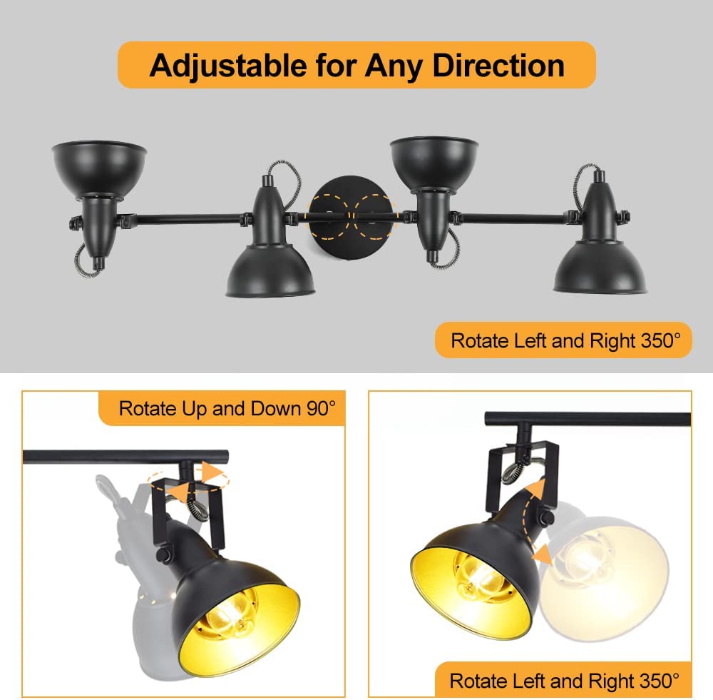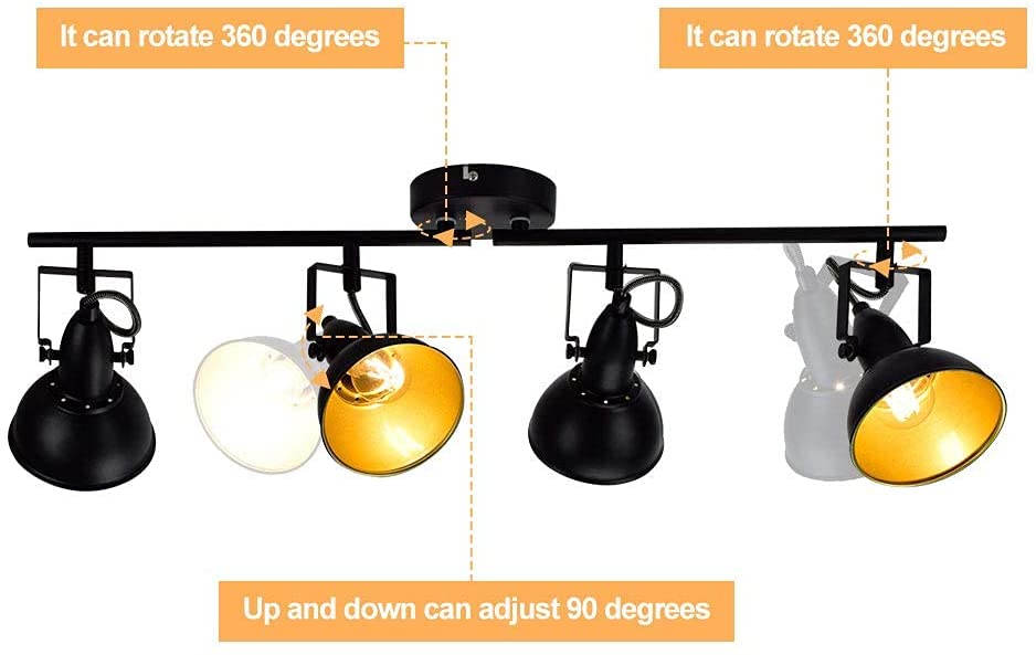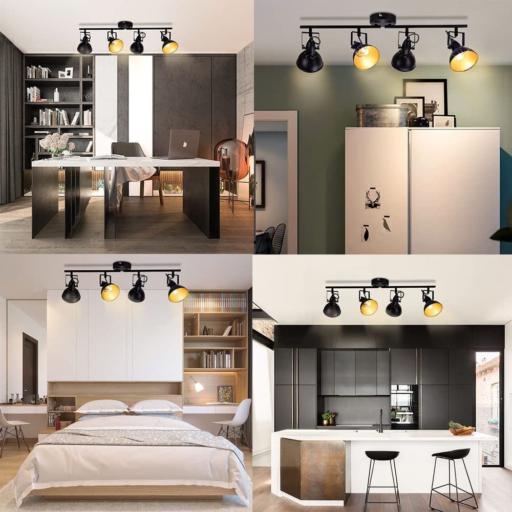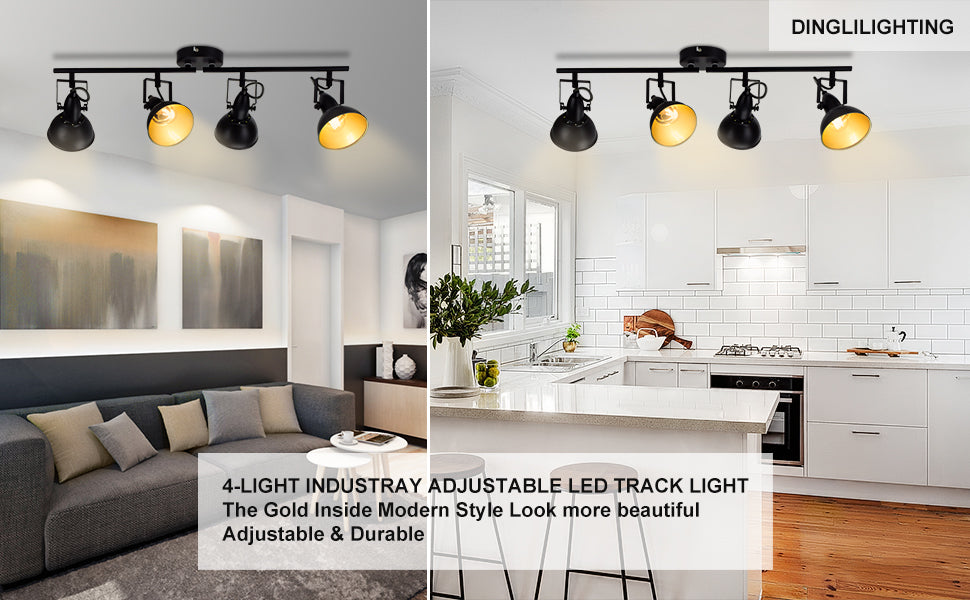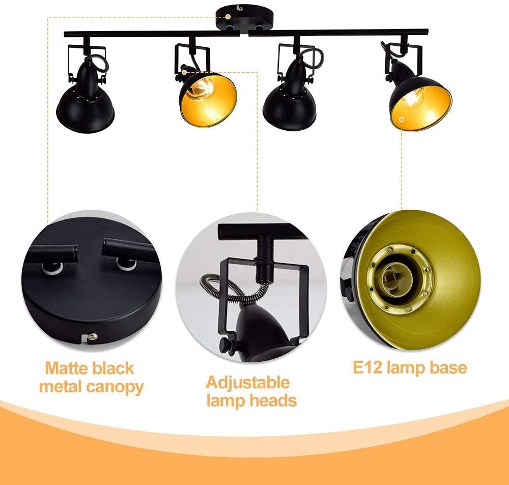 DINGLILIGHTING Retro kääntyvä 4-suuntainen LED-kattovalaisin, ratavalaistus metalliraudalla kääntöpisteillä, musta-kultainen, olohuoneen makuuhuoneen keittiöön