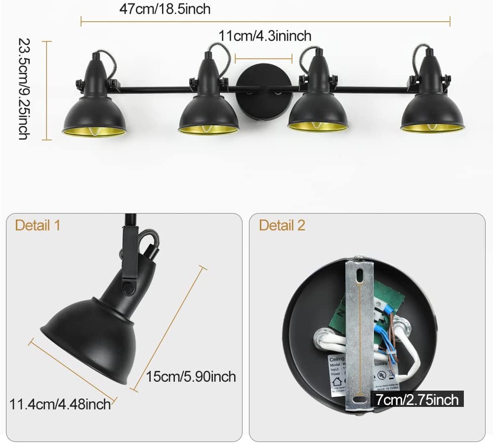 - Korkea laatu: Tämä kattokeittiön valaisin on valmistettu korkealaatuisesta rautametallista, joka käyttää korkean lämpötilan maalitekniikkaa, hyvää korroosionkestävyyttä, ruosteenestoa ja haalistumista. Lisäksi mattamusta ja kullankeltainen sisäviimeistely antaa vaalean retro-ilmeen ja tekee valoista kirkkaampia, valaisee kotisi lämmöllä ja personoi asuintilasi.