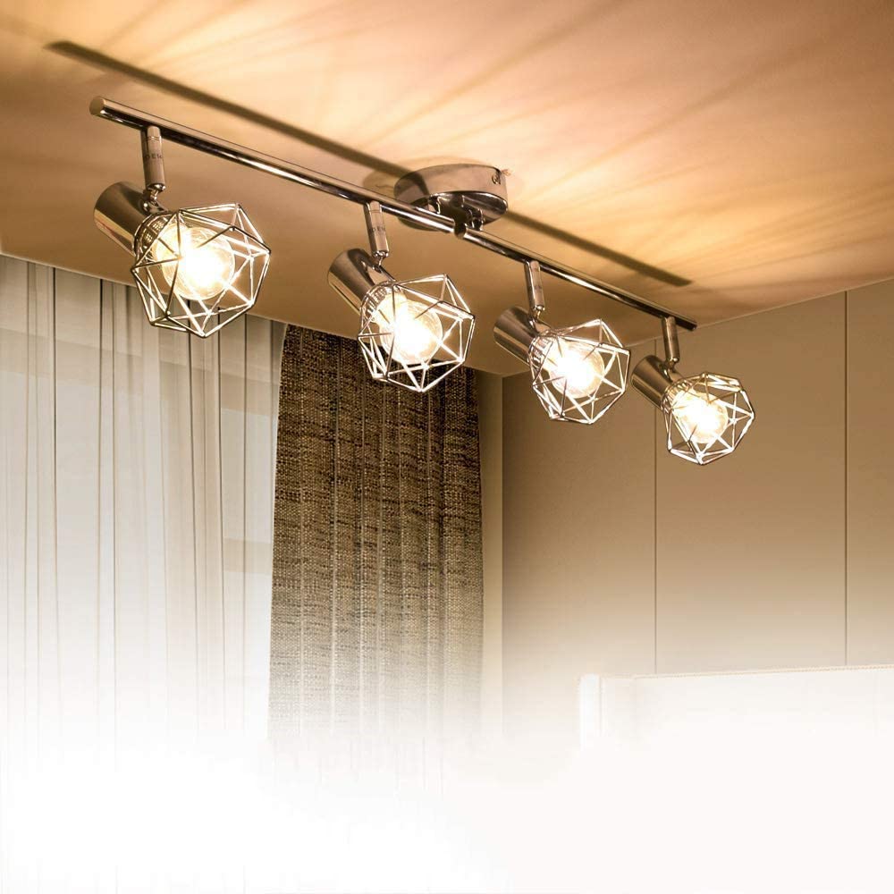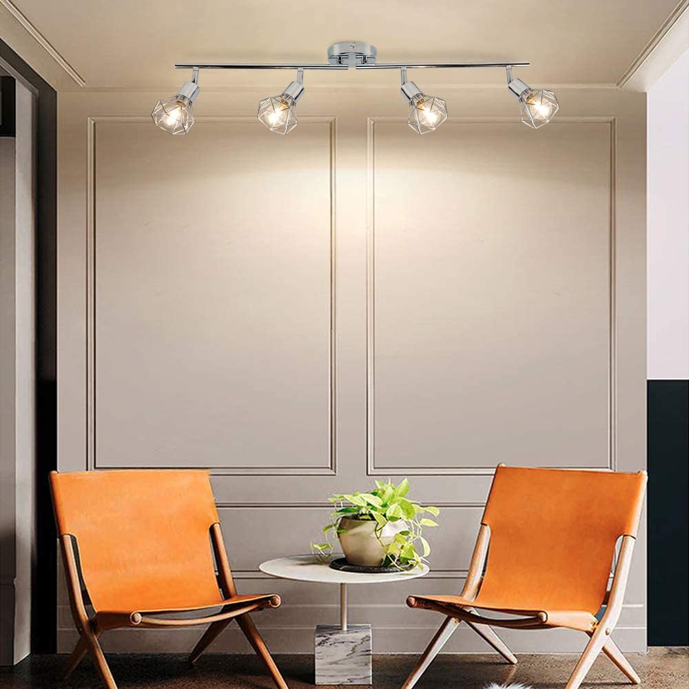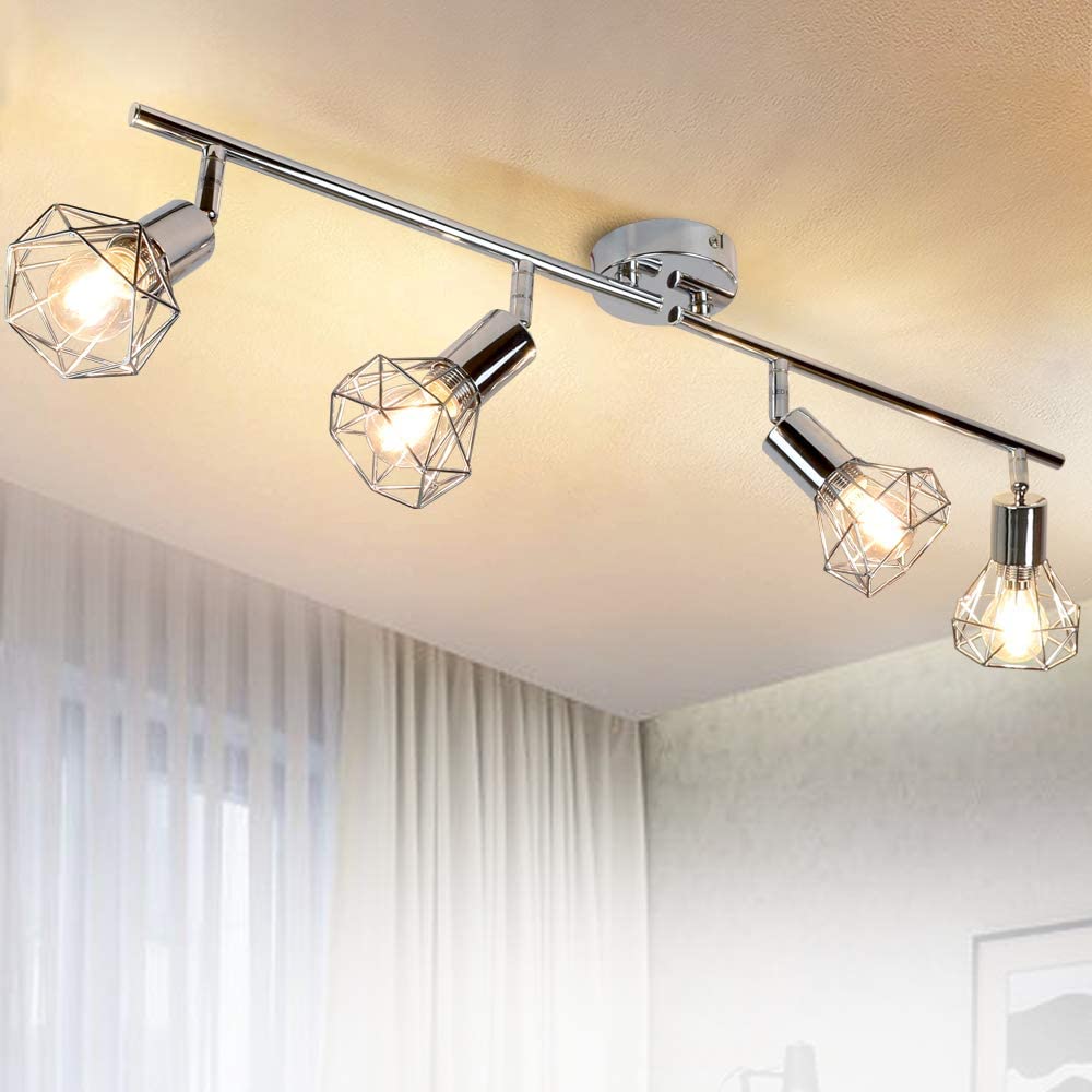 DINGLILIGHTING 4-suuntainen häkkikattokohdevalaisin, sopivat kromiviimeistelysävyt. Olohuoneen keittiön vaatehuone, 4 LED-lamppua mukana