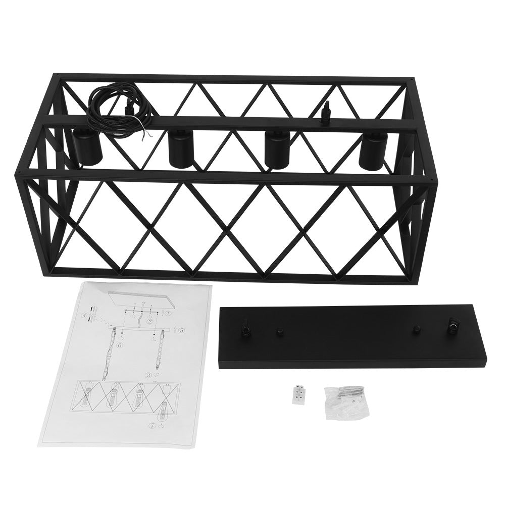 Neljä valoa • Suorakaiteen muotoinen häkki • Avoin kehys • Musta viimeistely • E26 Keskikantaiset polttimot (ei sisälly) • Kiinteä • UL-listattu