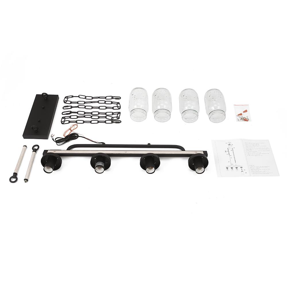 Neljä valoa • Mason Jar -varjostimet • E26/E27 Keskikantaiset polttimot (ei mukana) • Kiinteä • UL-listattu/CE-listattu