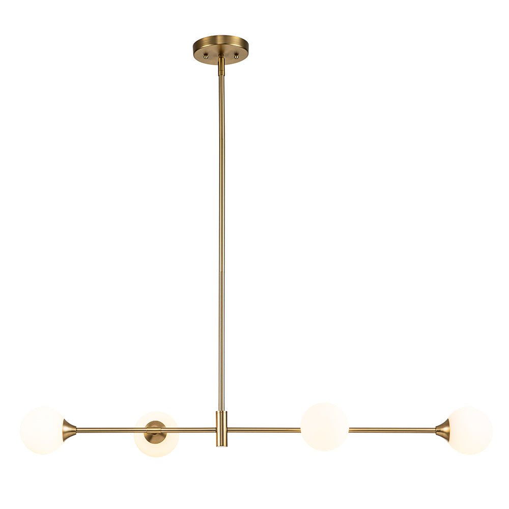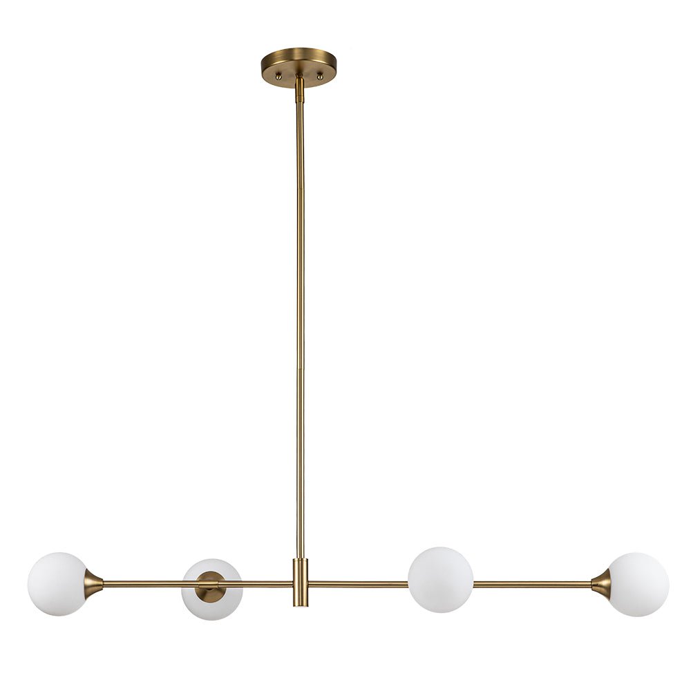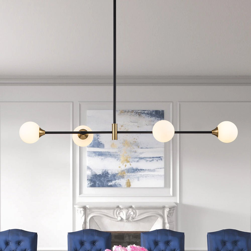 Huippuluokan ja tyylikäs keittiösaarekeriippuvainen kattokruunu antaa tilaan täydellisyyden ja hienostuneisuuden tunteen. Tämä lineaarinen saarekekruunu yhdistää yksinkertaisen puhtaan linjarakenteen, joka on viimeistelty kutsuvaan messingillä tai mattamustalla neljällä ihanalla himmeällä maapallolla. Valkoiset lasipallon varjostimet takaavat pehmeän, hajavalon, joka on ihanteellinen juuri oikean tunnelman luomiseen. Lisää energiaa keittiösaarekkeellesi, ruokapöytääsi tai olohuoneeseesi tällä upealla 4 valon opaalilasipallon keittiösaarekeriipuksella.Tiedot
