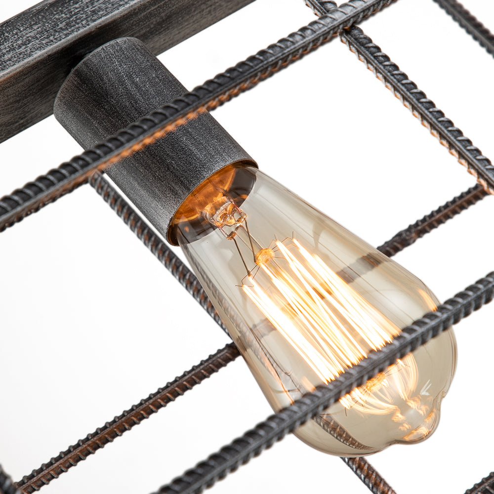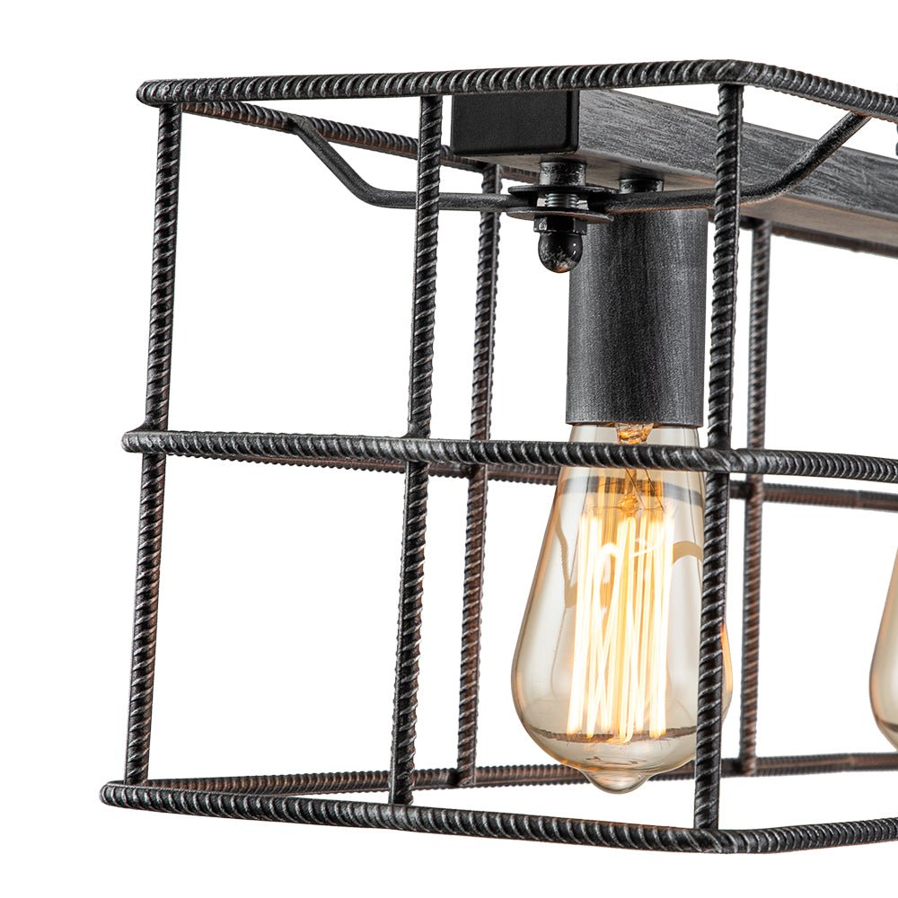 Neljä valoa • Teräshäkki • Suorakaiteen muotoinen muotoilu • Avoin runko • Vintage harmaa viimeistely • E26 keskikokoiset polttimot (ei sisälly) • Kiinteä • UL-listattu