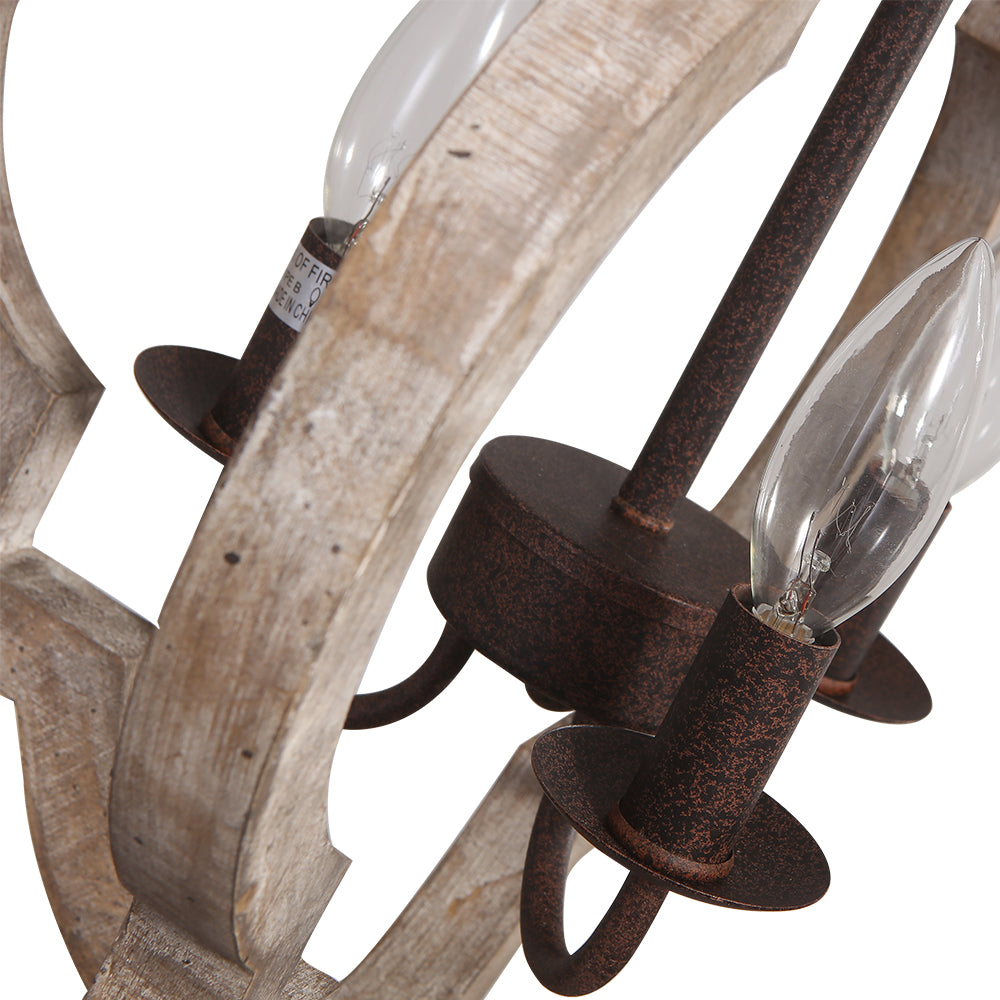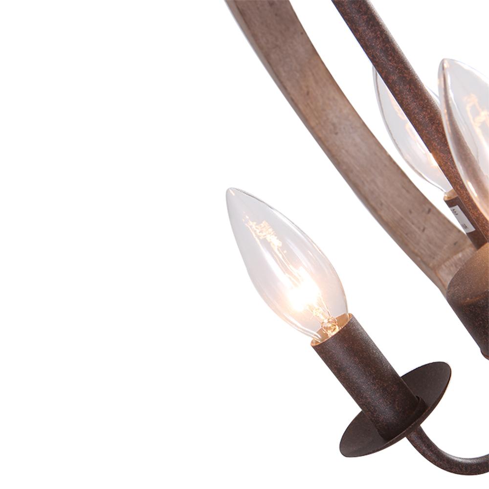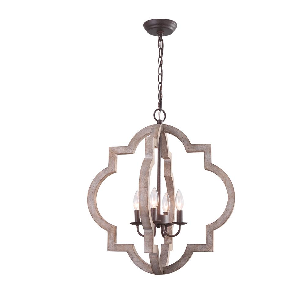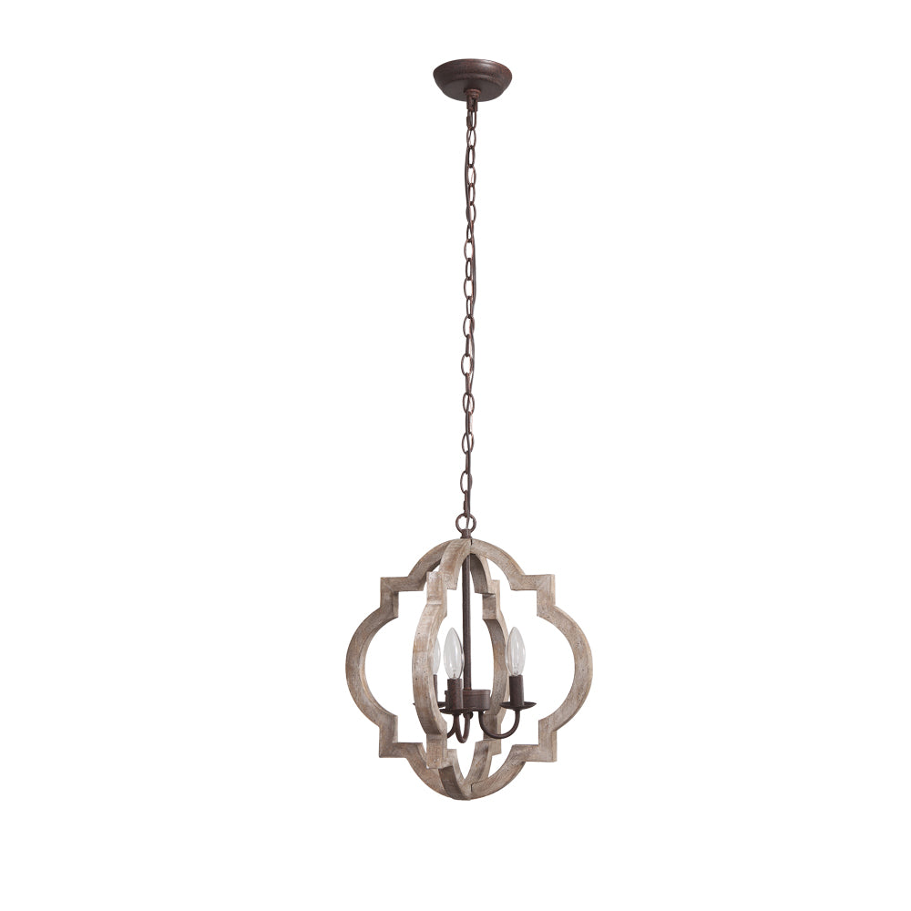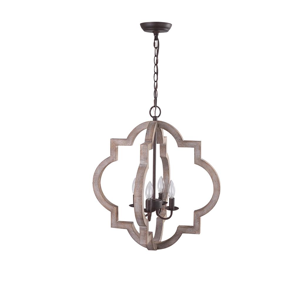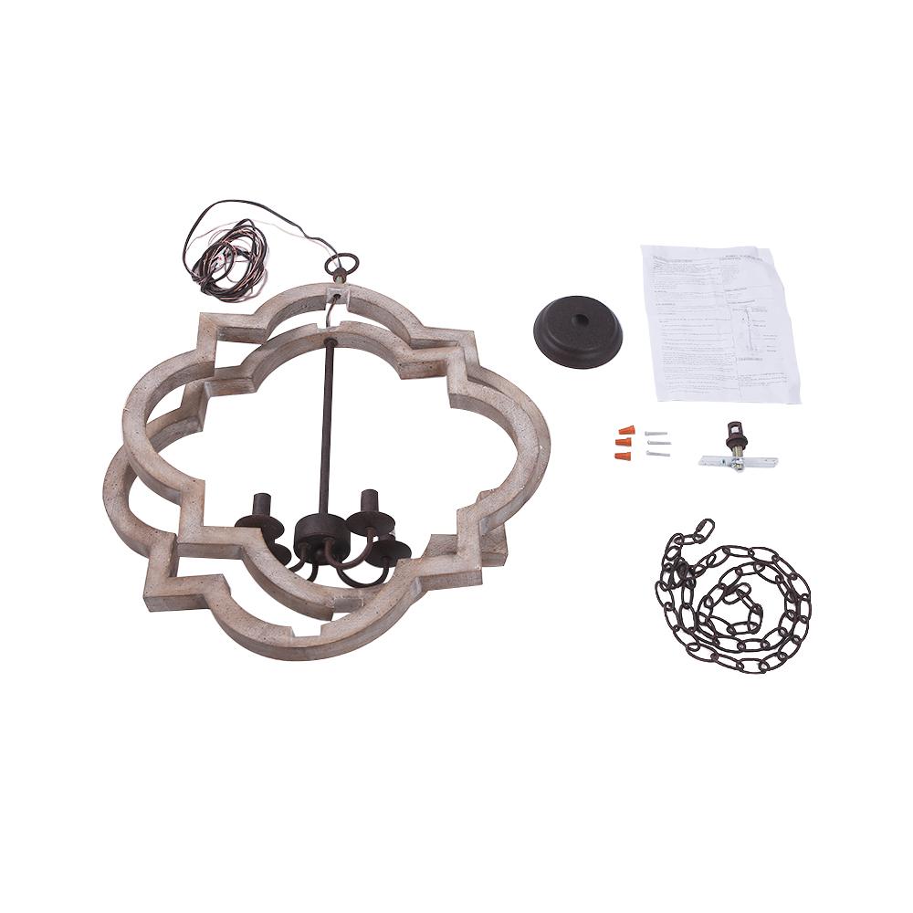 Perinteisen quatrefoil-tyylin innoittamana tässä geometrisessa kattokruunussa on pyöreä lyhtyriipus, joka tuo sinut takaisin 19. maalaismaiseen aikaan. Avoimessa puurungossa on ruosteisella metallilla viimeistelty monivalopistorasia. Kolme tai neljä E12/E14 kynttelikköpolttimoa (ei sisälly toimitukseen) täydentävät tämän nelikantaisen riippuvalaisimen retrotaiteellista ilmettä. Tämä maalaistalon puinen nelikantiippuriipus on siirtymävaiheen maalaistalo-osa, joka on ihanteellinen piristämään sisäänkäyntiäsi, ruokailuhuonettasi, keittiösaarekettasi, eteisiäsi, makuuhuoneitasi, portaikkoasi ja pyykkiäsi.Detail