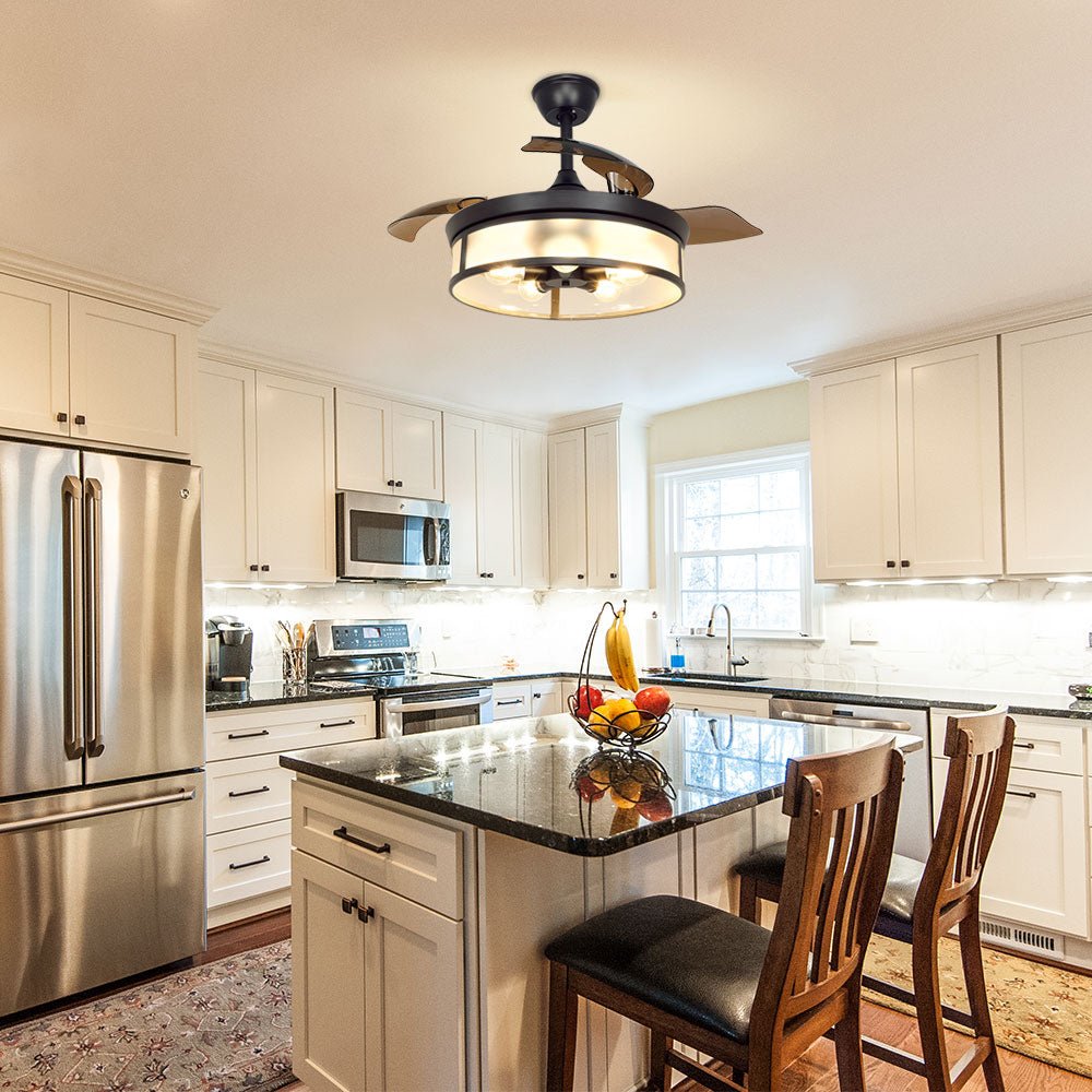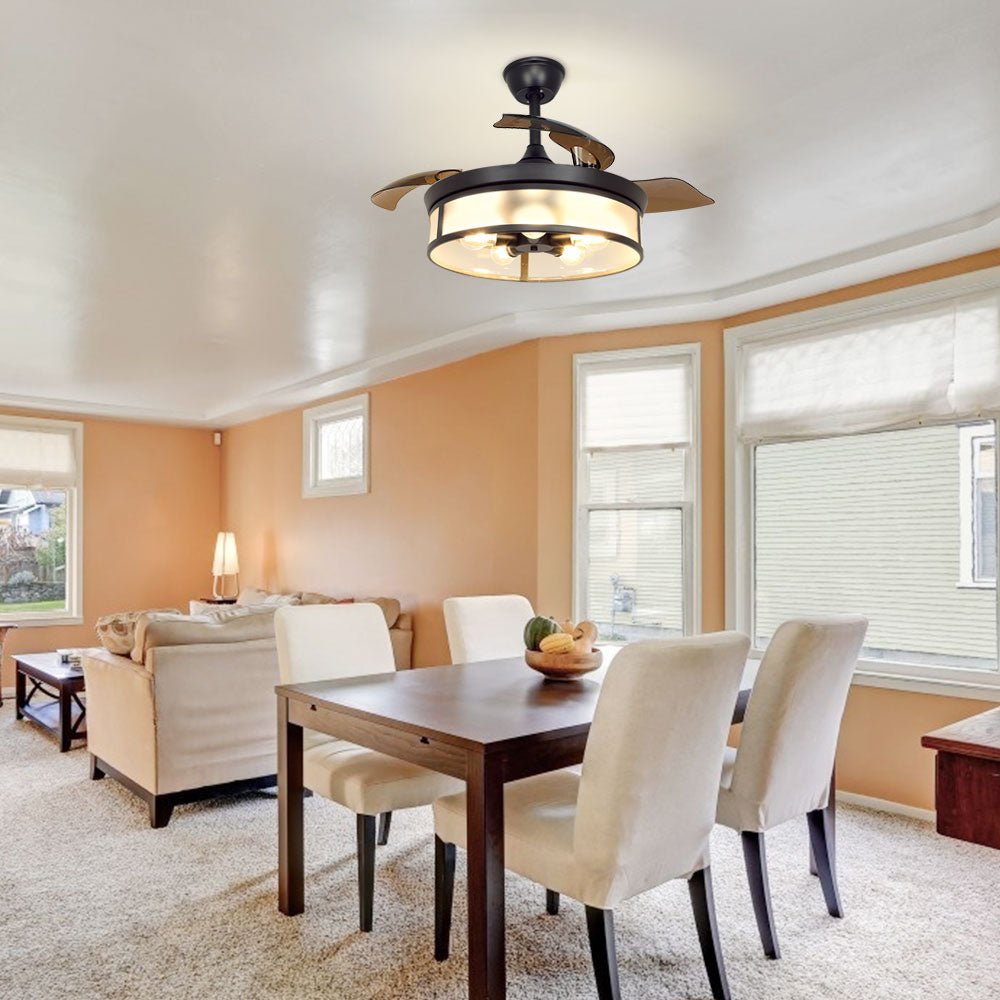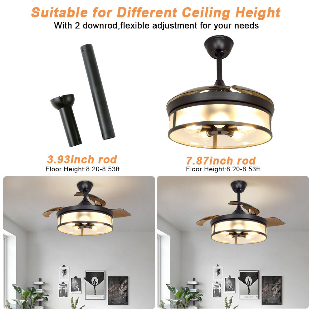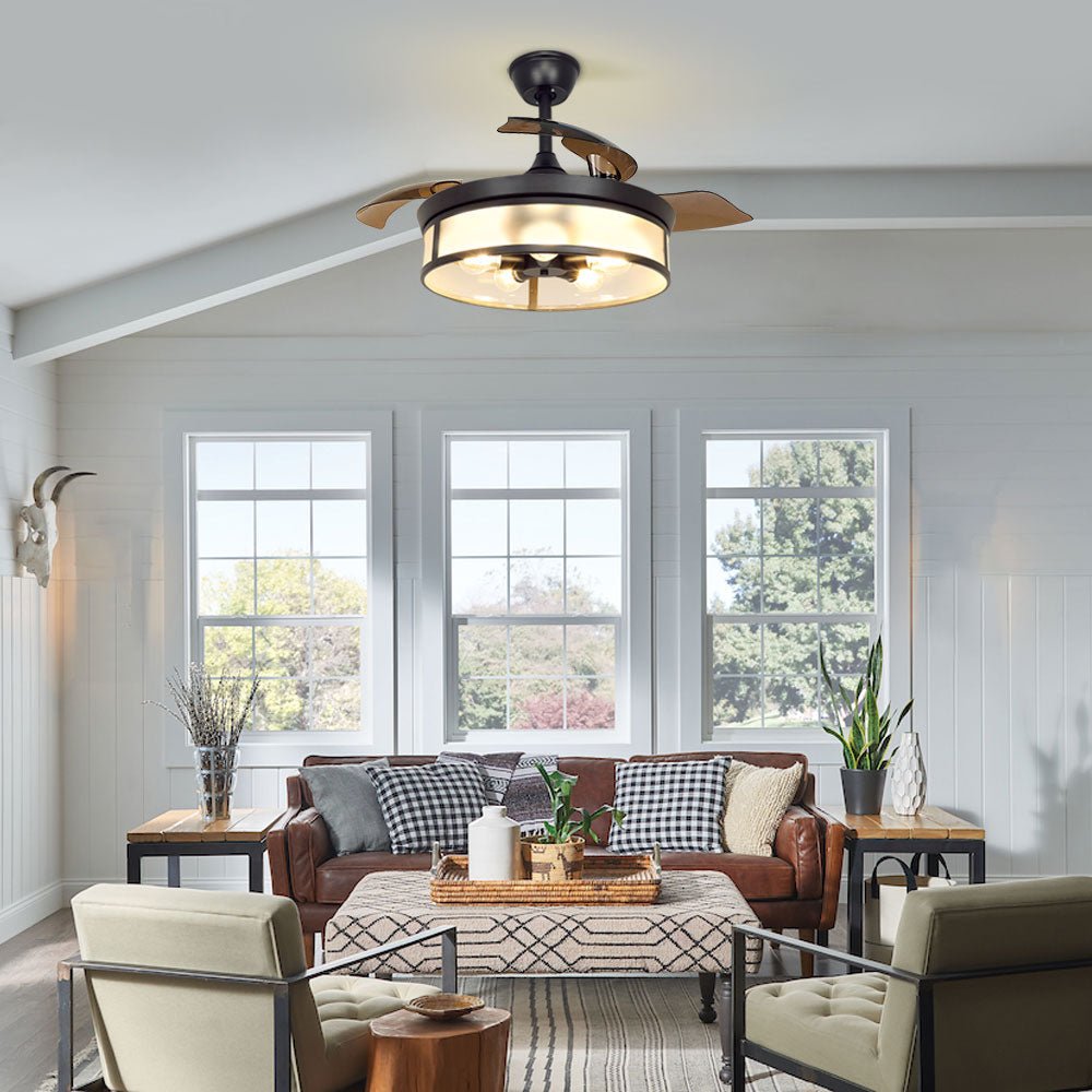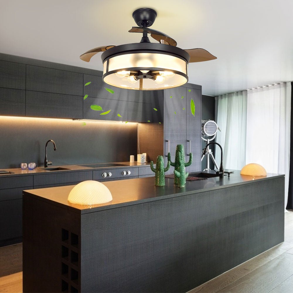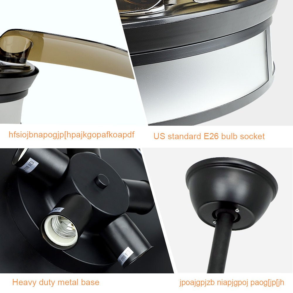 Depuley teollisuuskattotuuletin valolla, kattotuuletin sisäänvedettävällä siivellä, vintage-akryyliset kattokruunutuuletinvalaisimet kaukosäätimellä olohuoneeseen, keittiö, makuuhuone, 5 E26 pohja