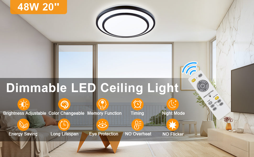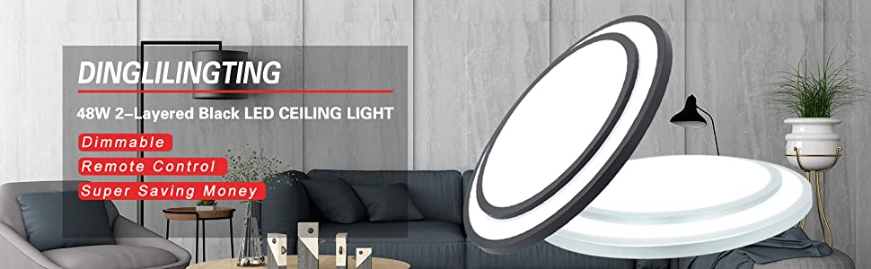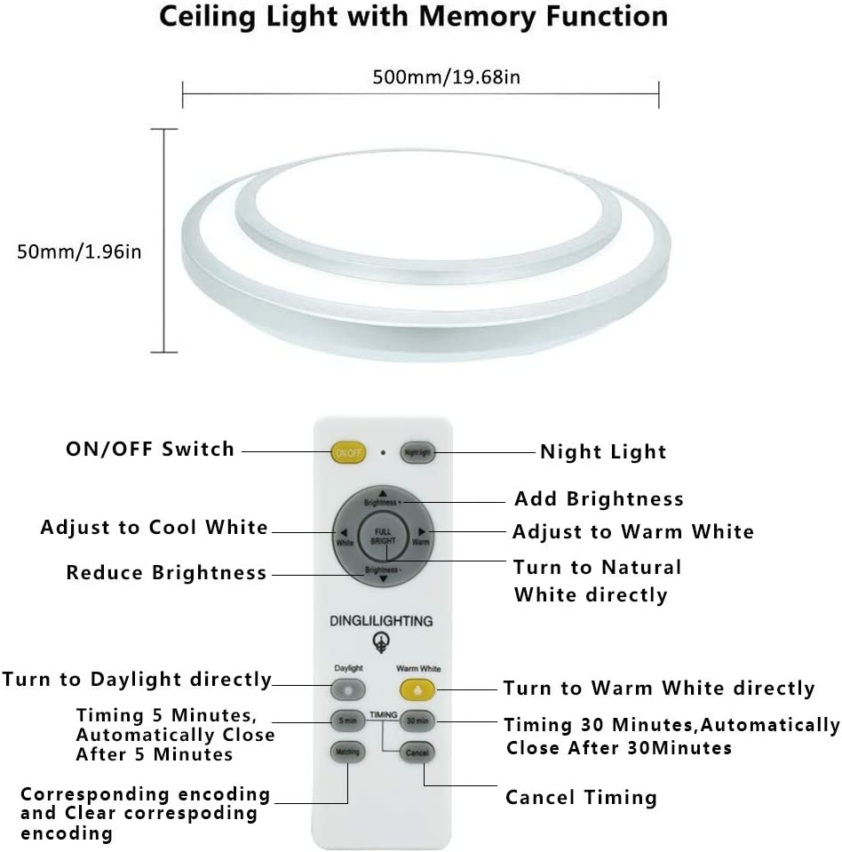 DINGLILIGHTING 48 W uppoasennettava LED-kattovalaisin, 3 väriä himmennettävä kattolamppu kaukosäätimellä olohuoneeseen/ruokailuhuoneeseen/makuuhuoneeseen/etuiseen/toimistoon, 3000-6000K