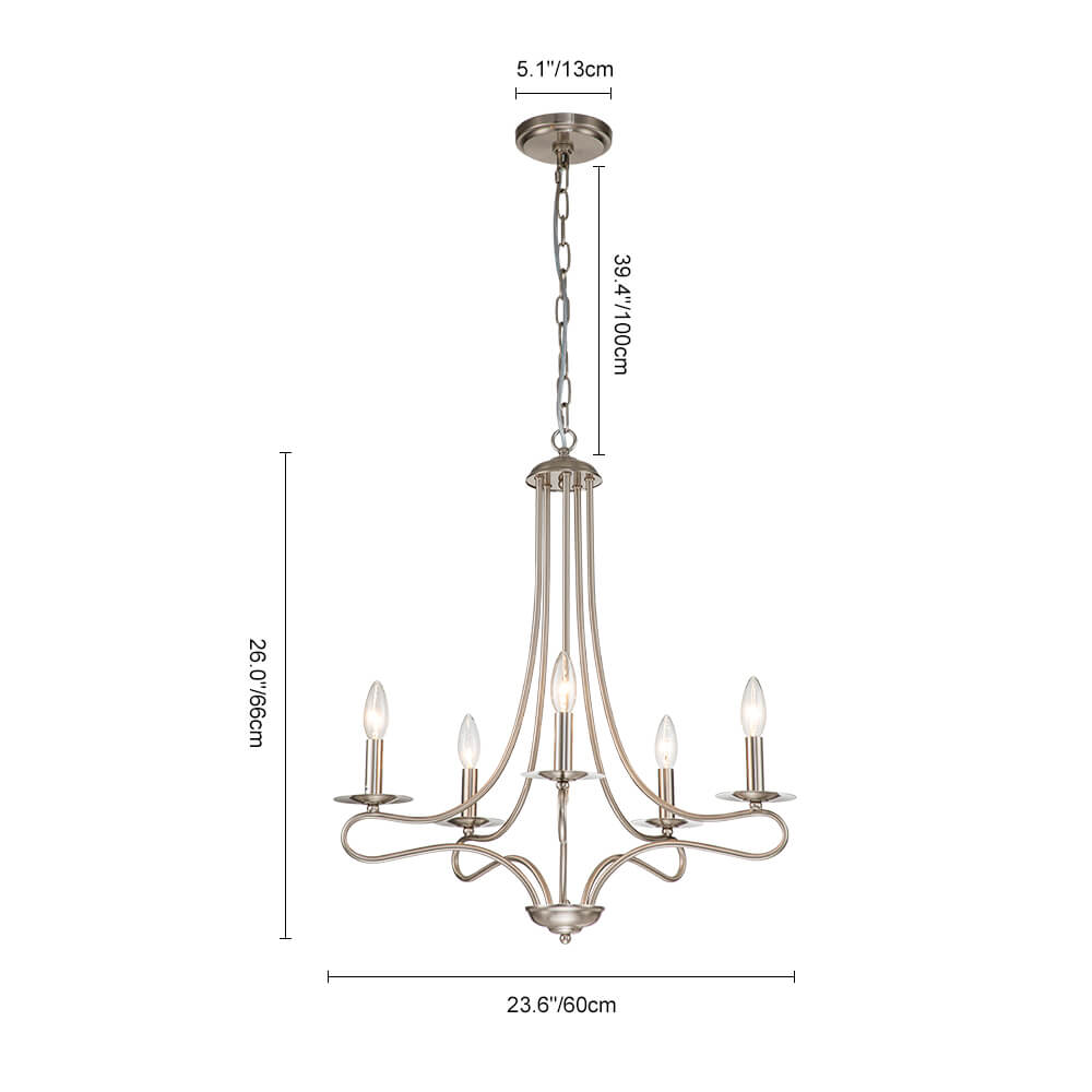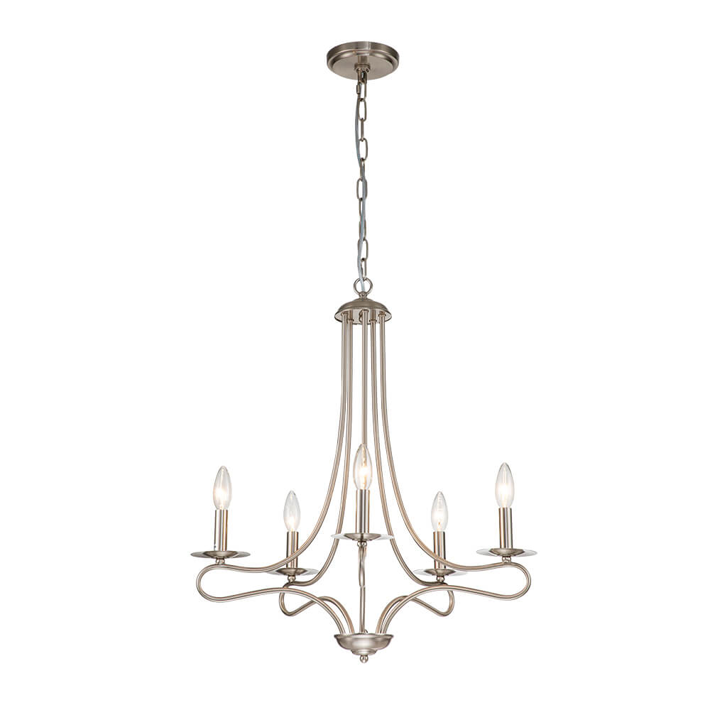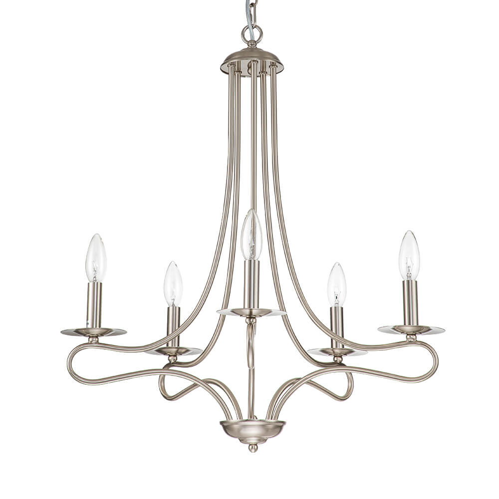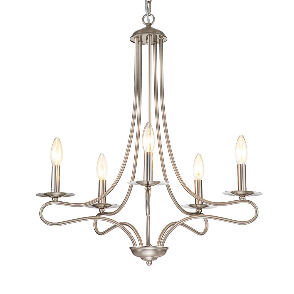 5-kevyt satiininen nikkeli kynttilän kattokruunu