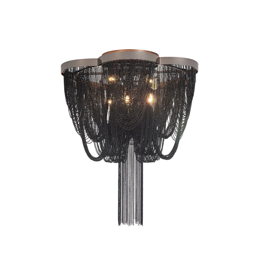 Viisi valoa • Empire-tyyli • Ketjun koristelu • Tupsutyyli • Musta/kromiviimeistely • E12 kynttelikköpolttimot (ei sisälly) • Kiinteä • UL-listattu