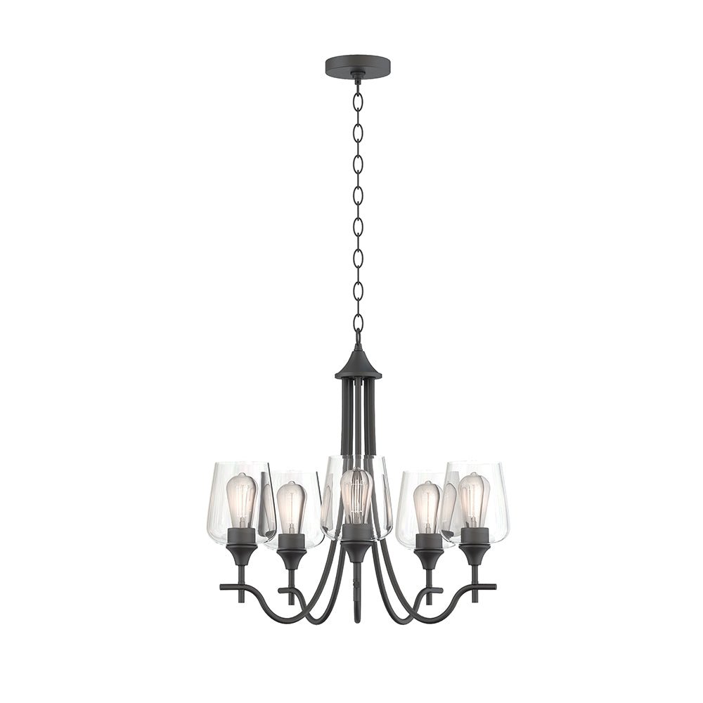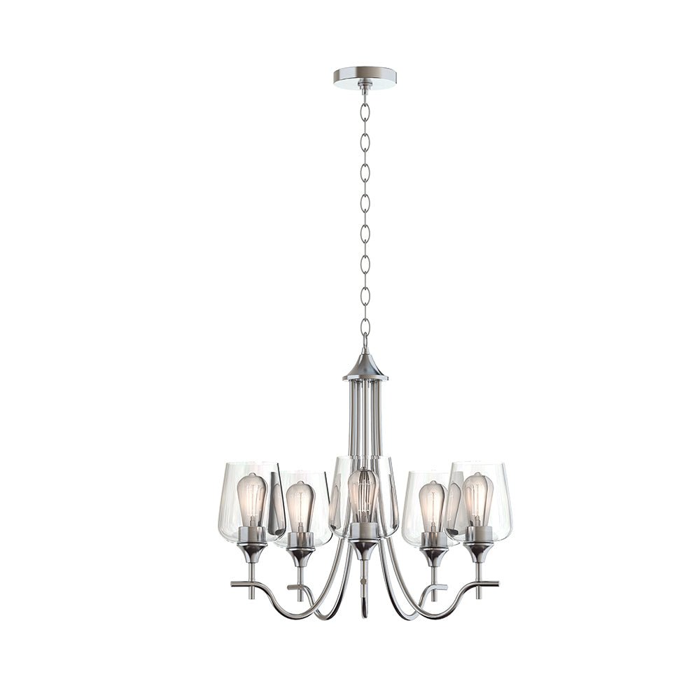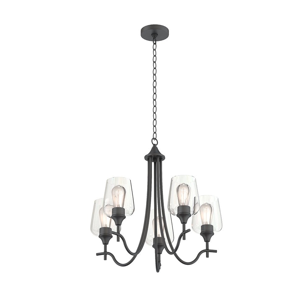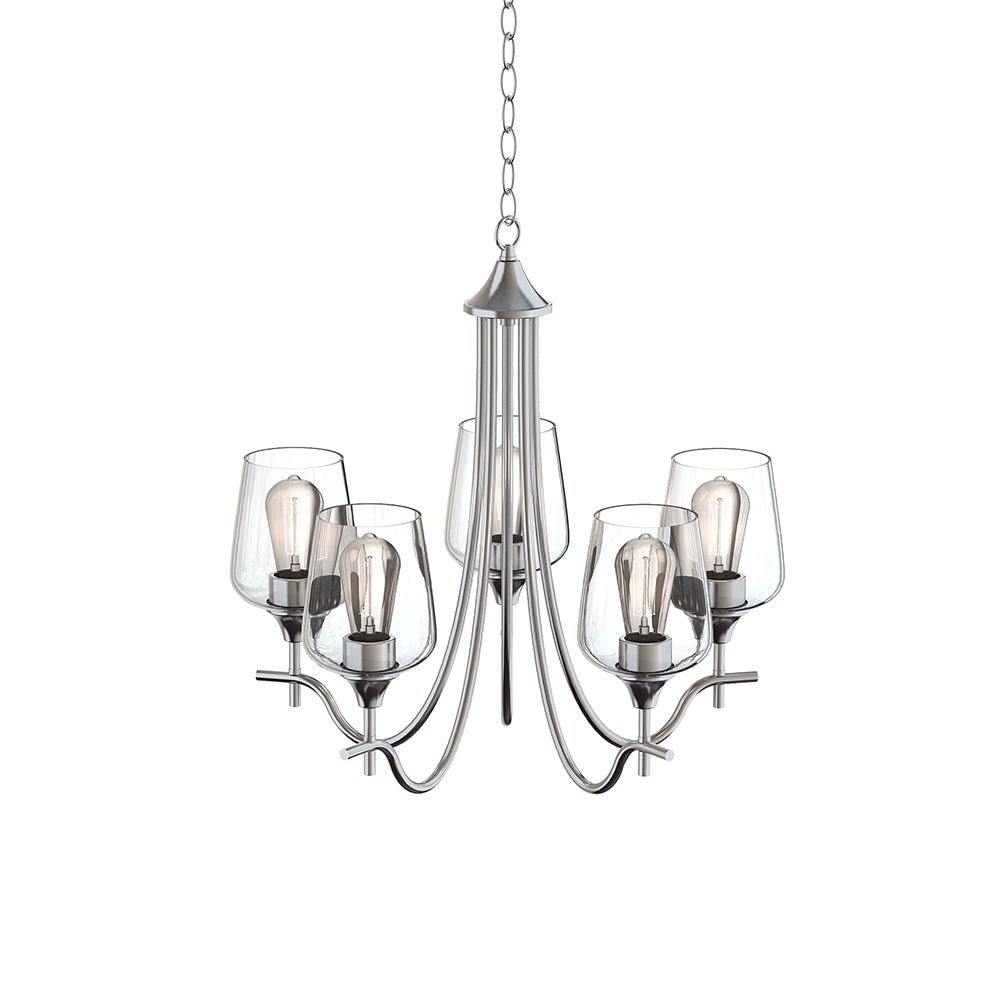 Viisi valoa • Kirkkaat lasivarjostimet • Empire-muotoilu • Kaarevat varret • Musta/nikkelipinta • E26 keskikokoiset polttimot (ei sisälly) • Kiinteä • UL-listattu