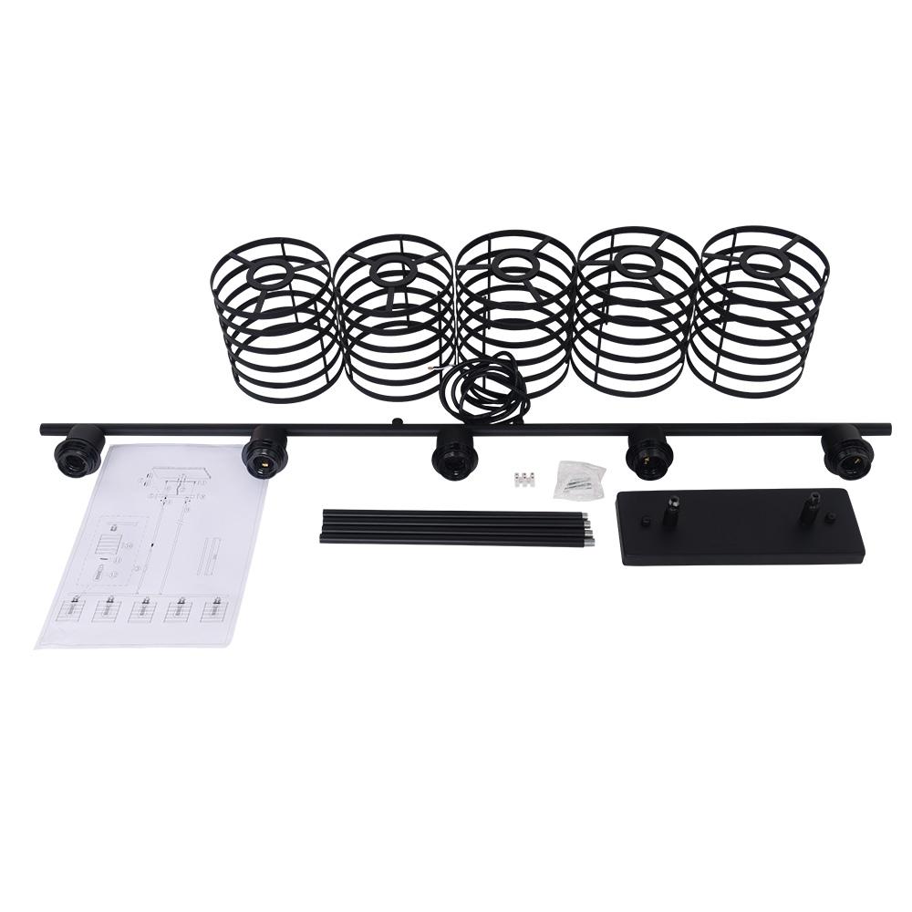 Viisi valoa • Musta viimeistely • Avokoteloitu varjostin • E26/E27 Keskikantaiset polttimot (ei sisälly) • Kiinteä • UL-listattu/CE-listattu