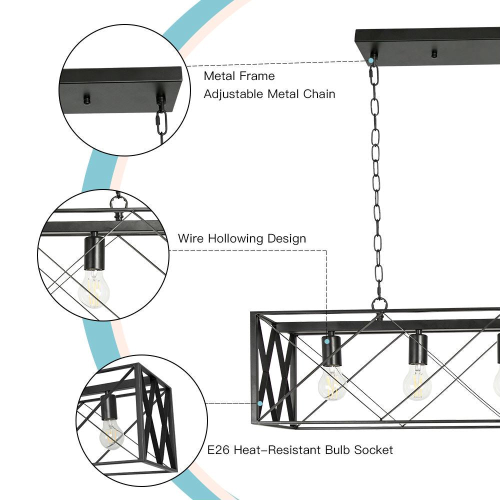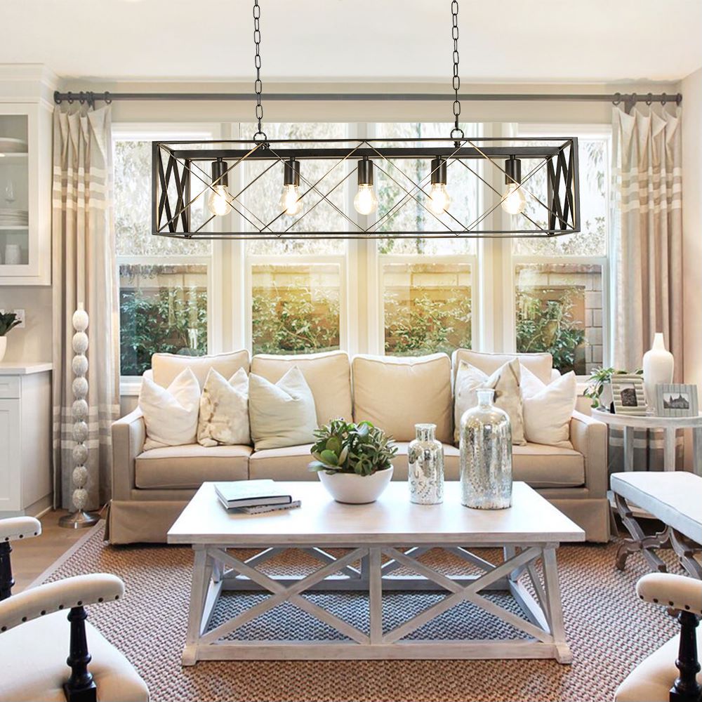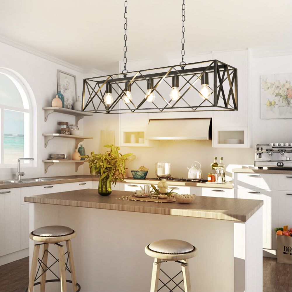 Depuley-riippuvalaisin, teollisuuskäyttöön tarkoitettu 5-valaisin keittiön saaren valaisin suorakaiteen muotoisella avoimella kehyksellä, maalaistalon kattoon ripustettava valaisin ruokasalin olohuone