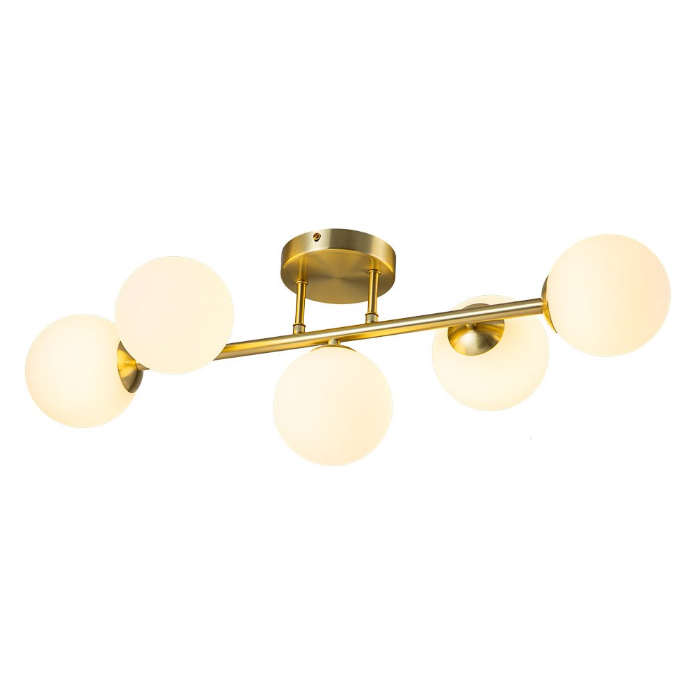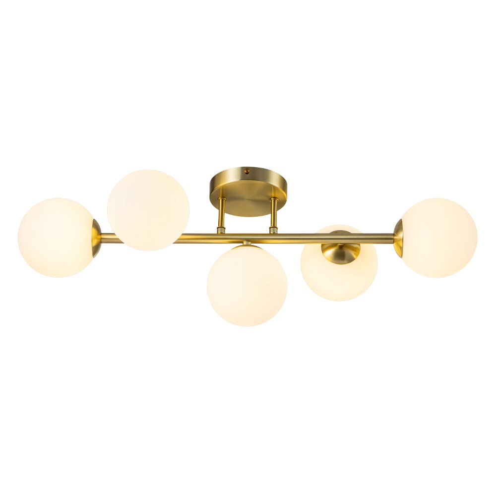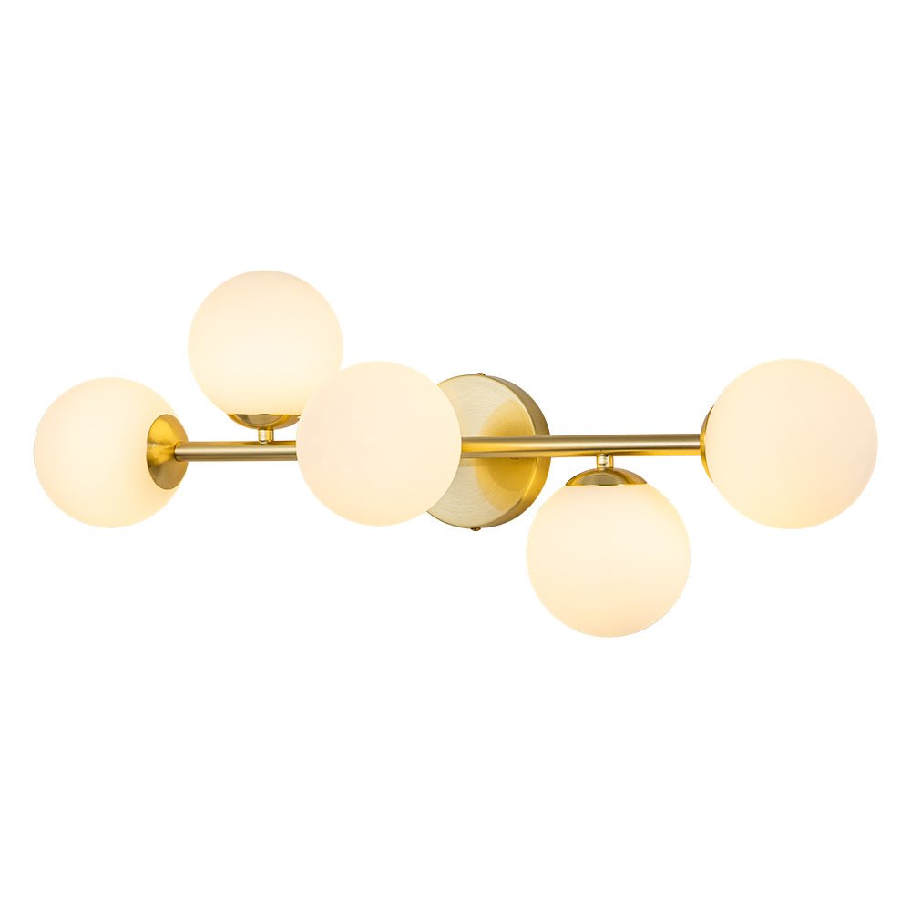 Valaise turhamaisuusasi tyylikkäästi ja hienostuneesti tällä 5-valaisimen puolitasolla seinävalaisimella. Lineaarisen putken huolella valmistettu messinkiviimeistely antaa elegantin, ylellisen hehkun, jota korostavat entisestään suloiset maidonvalkoiset kuplakuvioidut lasipallot, jotka luovat lumoavan tunnelman. Tämä upea opaalilasikuplavalaisin voidaan asentaa joko vaakasuoraan, pystysuoraan tai osittain uppoavaksi kattovalaisimeksi, joten se sopii täydellisesti kylpyhuoneen, makuuhuoneen, olohuoneen, eteisen tai pukuhuoneen sisustamiseen.Tiedot