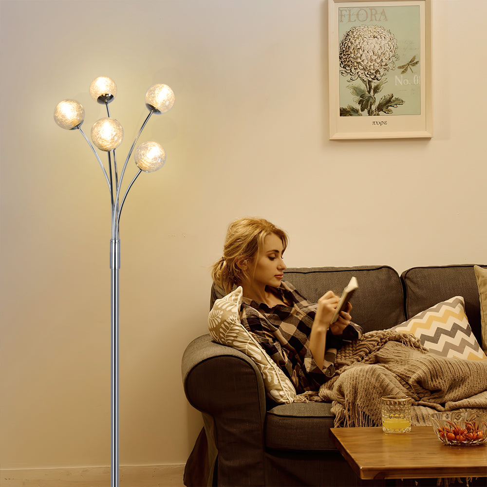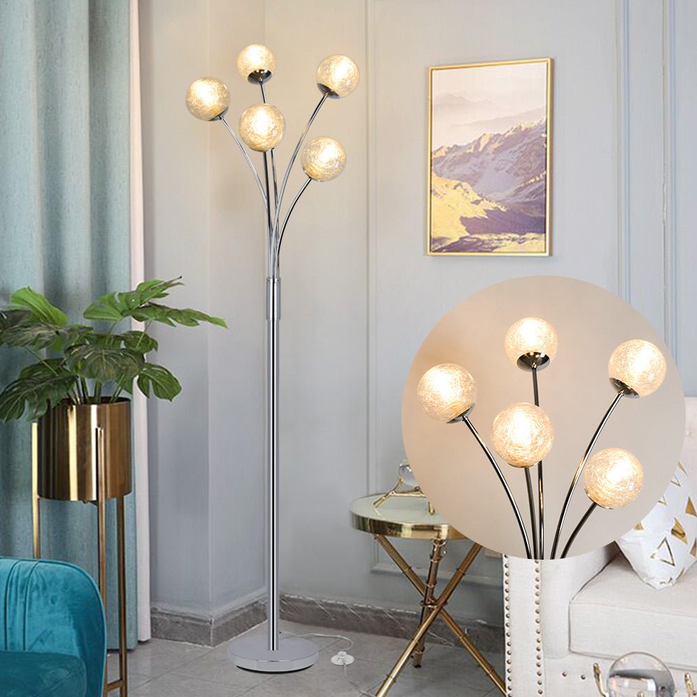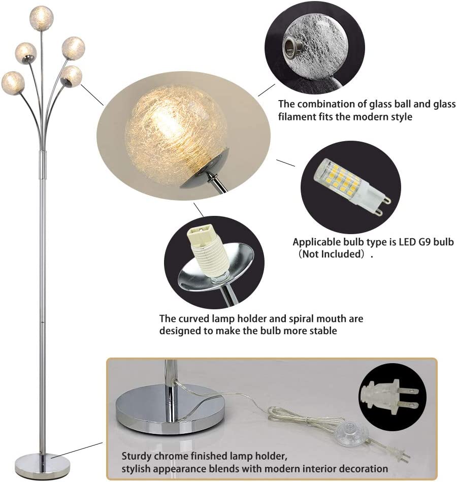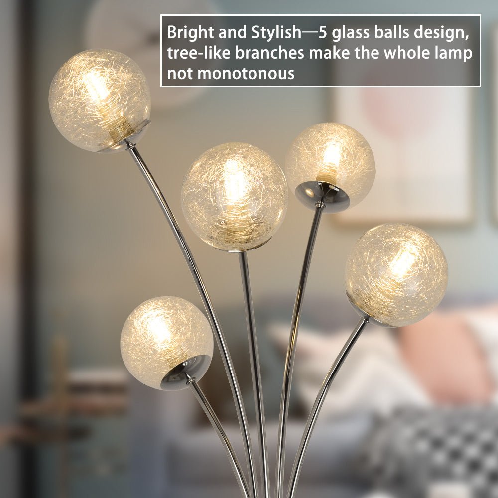 Depuley Modern Globe LED-lattiavalaisimet olohuoneeseen-DLLT-seisomalamput 5 valolla makuuhuoneeseen, korkean pylväspuun korostusvalaistus vuosisadan puoliväliin, nykyaikainen koti, lasivarjostin hope