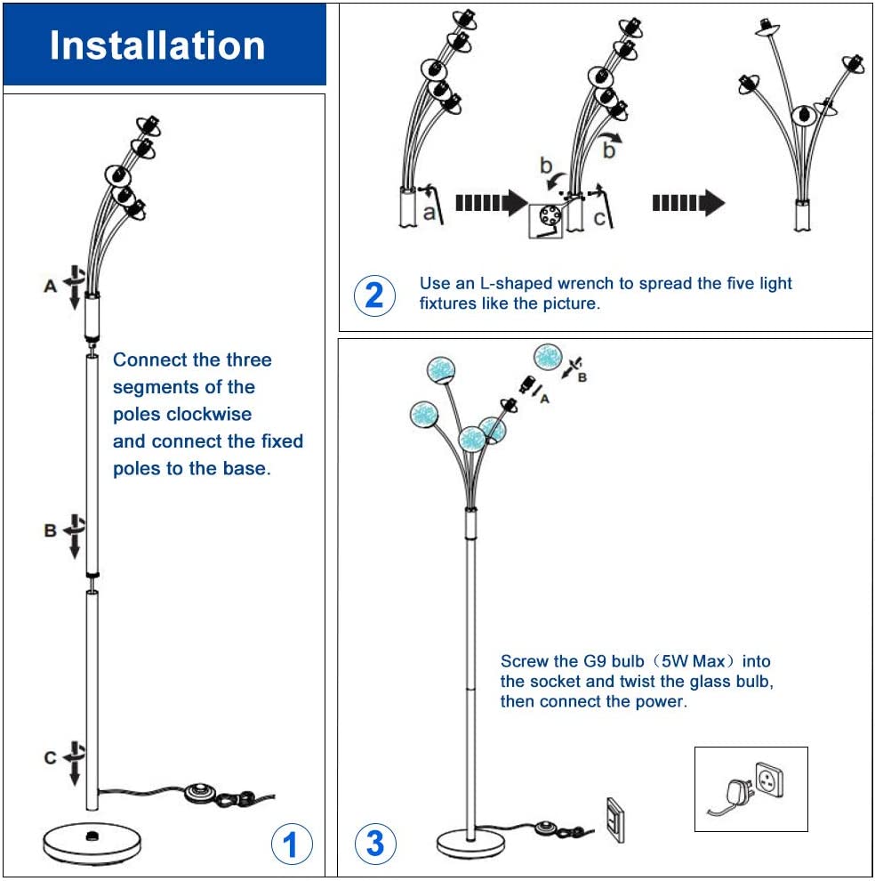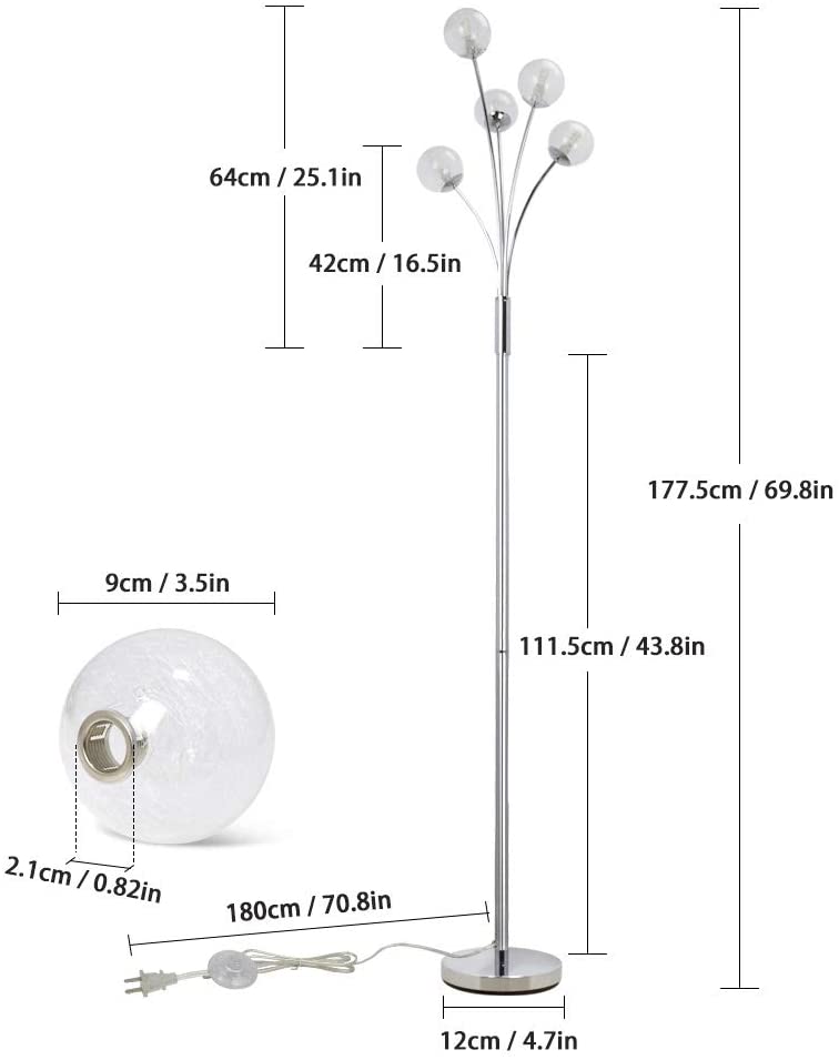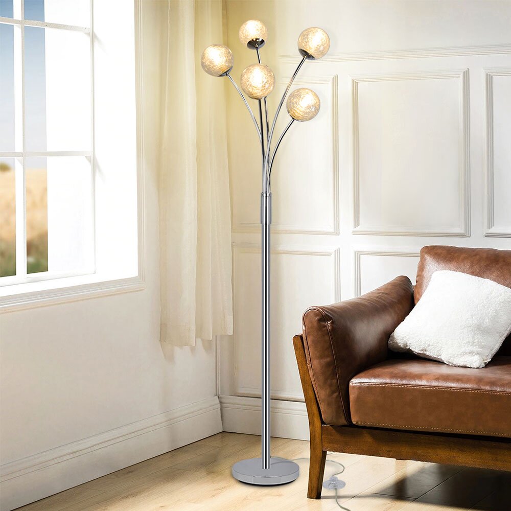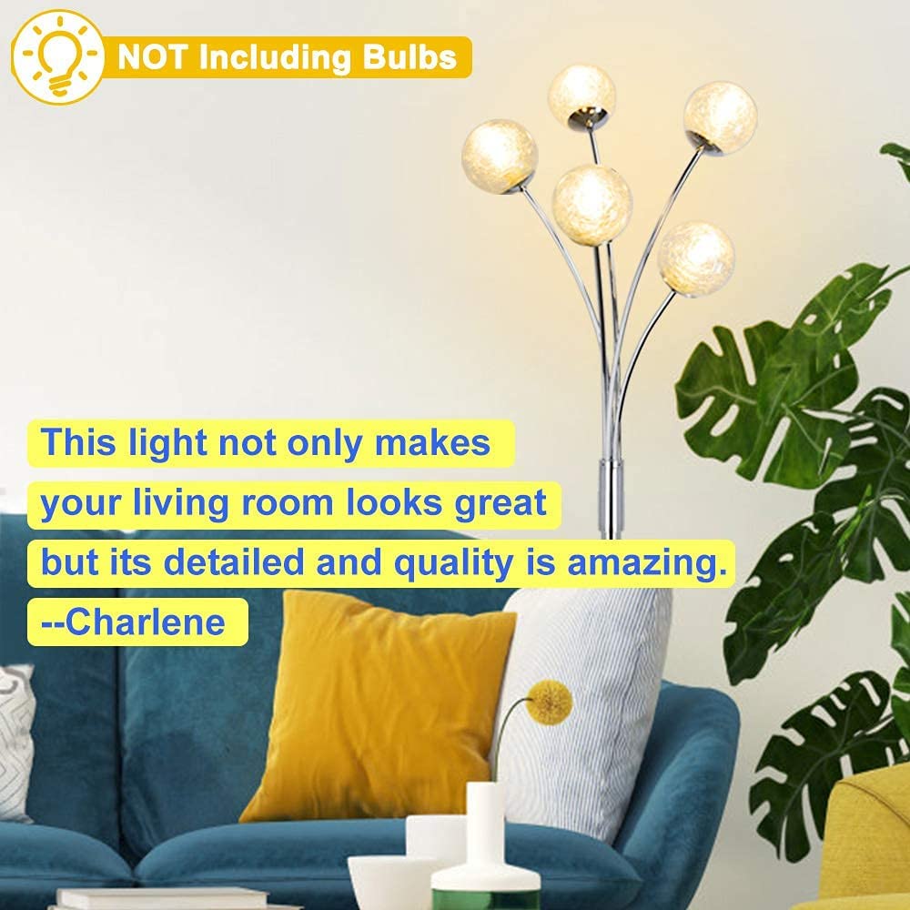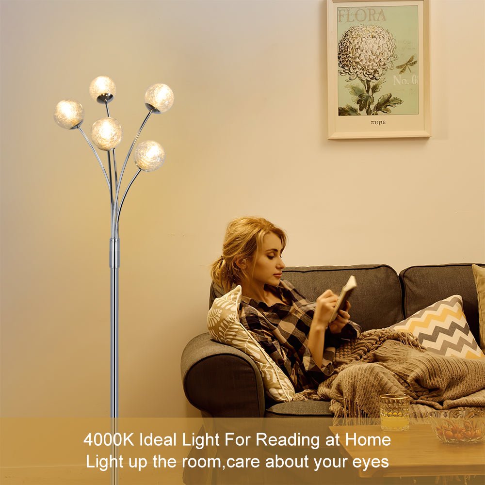 Depuley Modern Globe LED-lattiavalaisimet olohuoneeseen-DLLT-seisomalamput 5 valolla makuuhuoneeseen, korkean pylväspuun korostusvalaistus vuosisadan puoliväliin, nykyaikainen koti, lasivarjostin hope