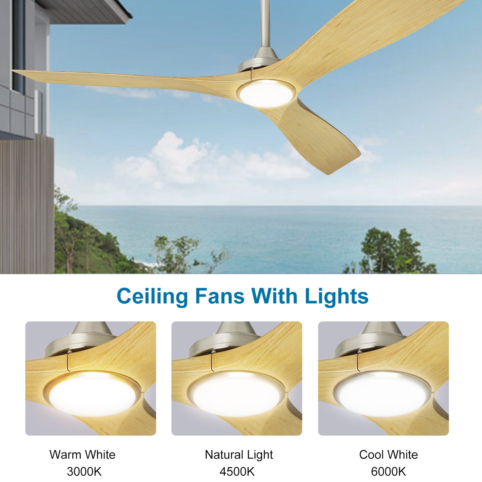 Depuley 52" kattotuulettimet LED-valoilla ja kaukosäätimellä, moderni kattotuuletin äänetön käännettävä tasavirtamoottori keittiöön/patiolle/maatalolle ja katettuun ulkovalaistukseen, ajoitus, 3 valon