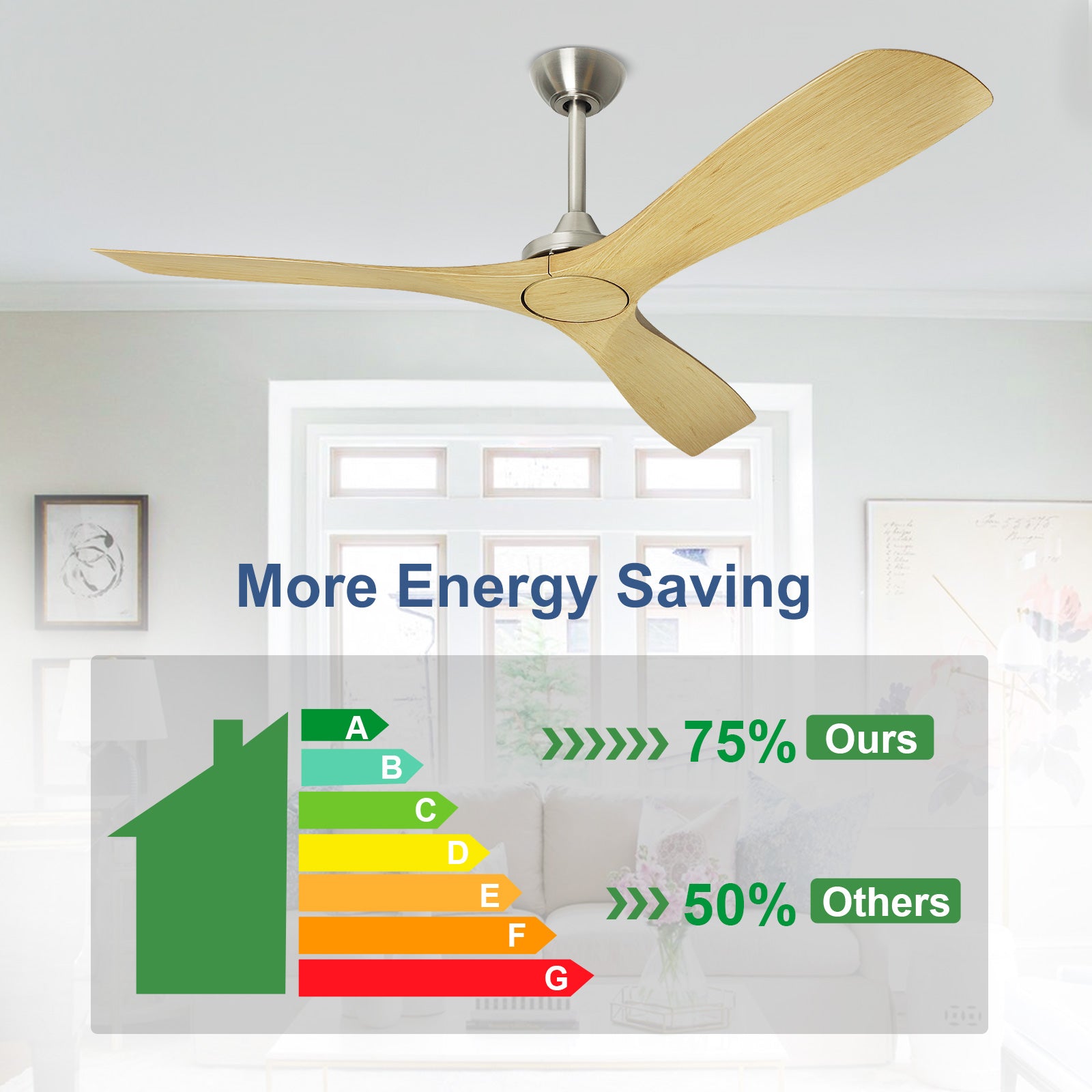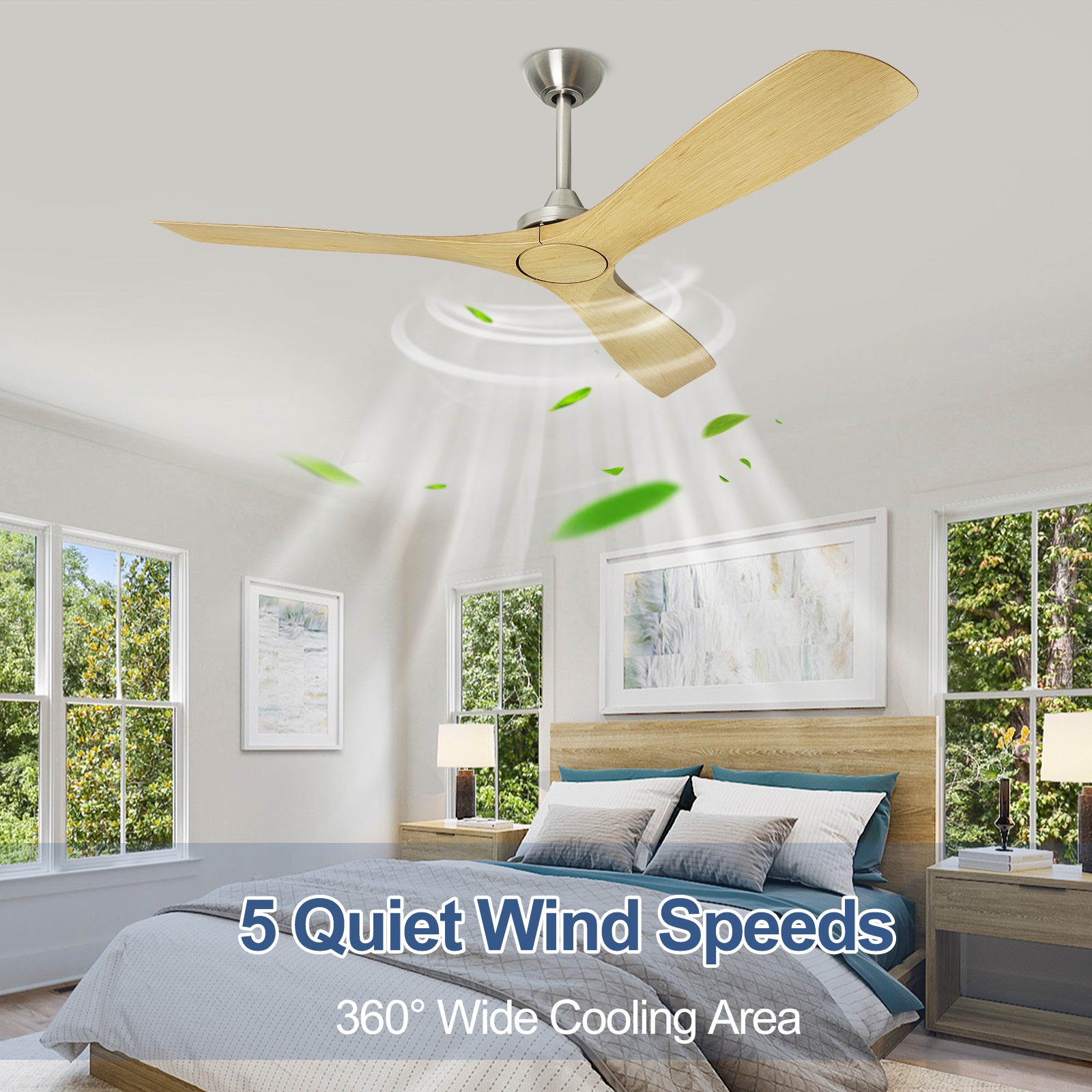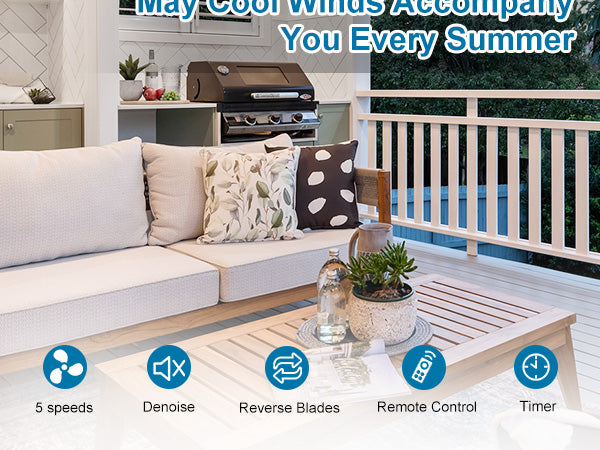 - 【5 Wind Speeds】 The 60-inch ceiling fan without a light has 5 wind speed options. Both the fan and light can be easily controlled with a remote.